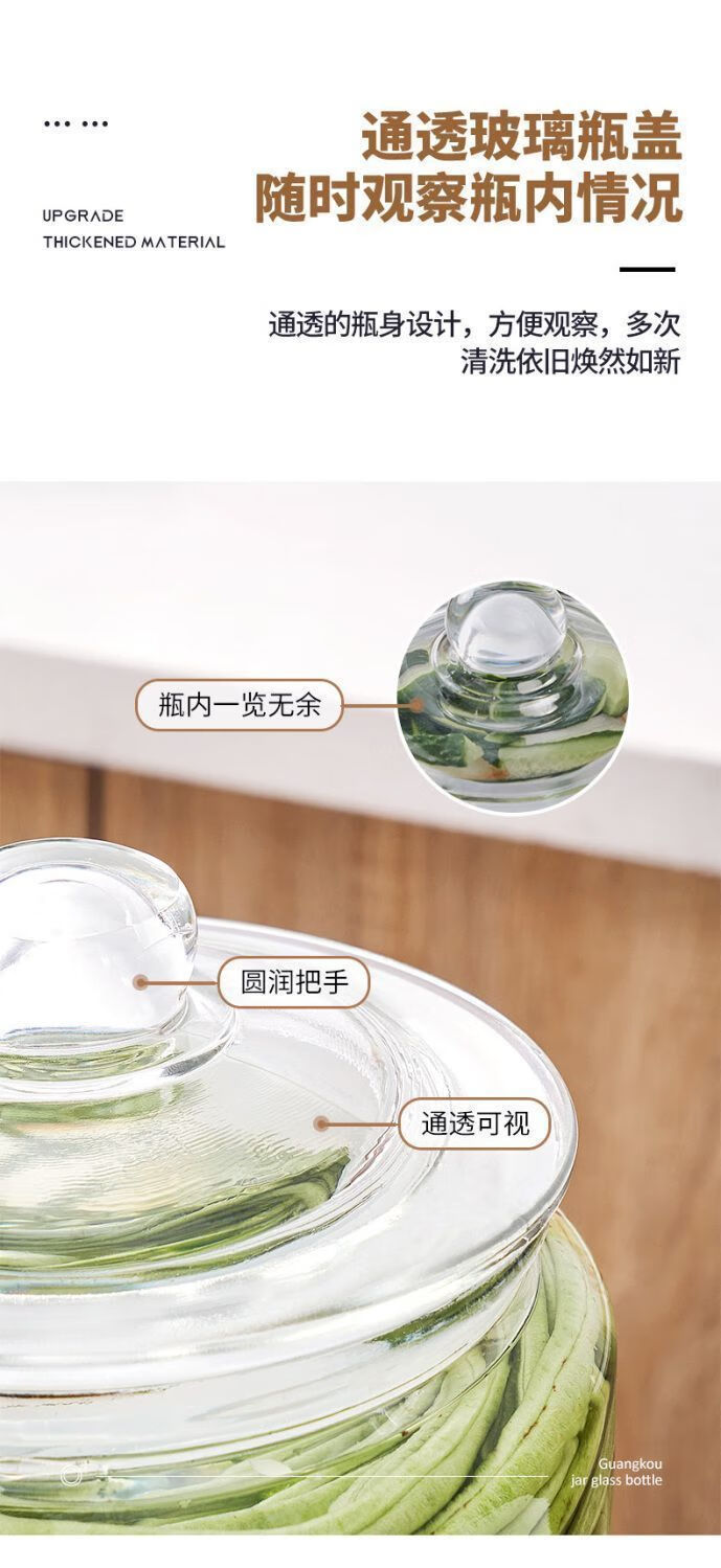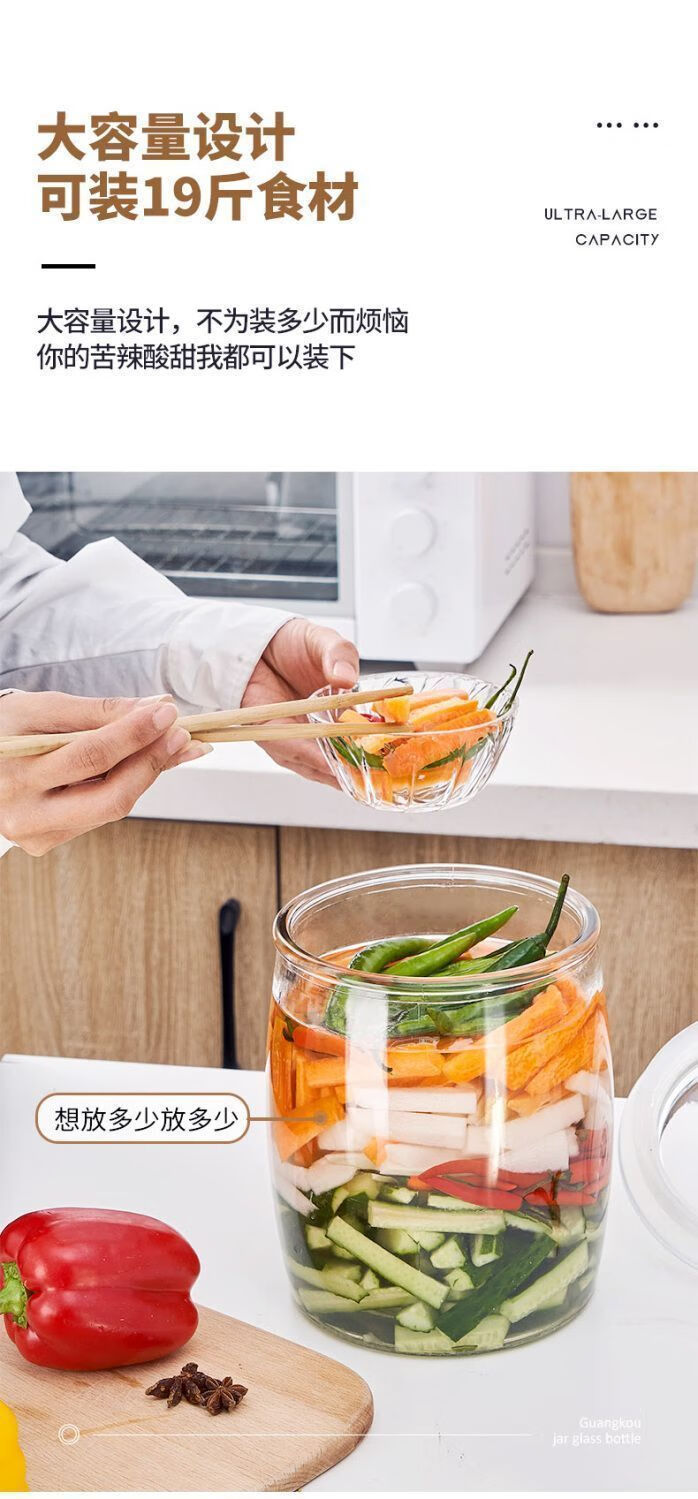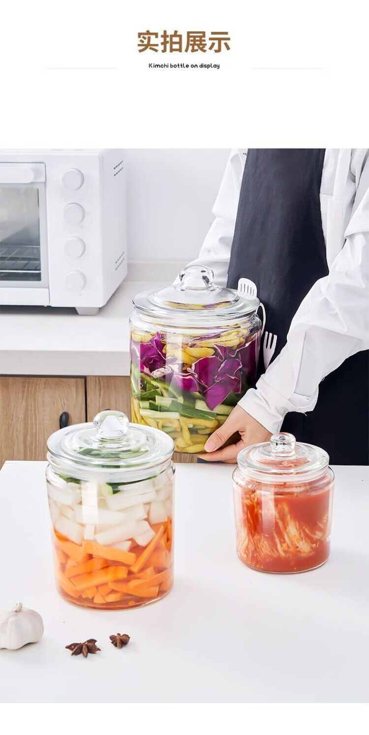DEATKN泡菜坛子密封罐瓶子加厚带盖食品级咸菜腌菜腌蒜家用腌制玻璃罐子 家用【加厚玻璃】泡菜坛密封大口径耐用首选 4.5斤【升级耐用】