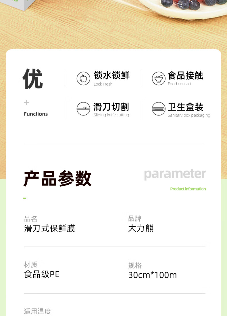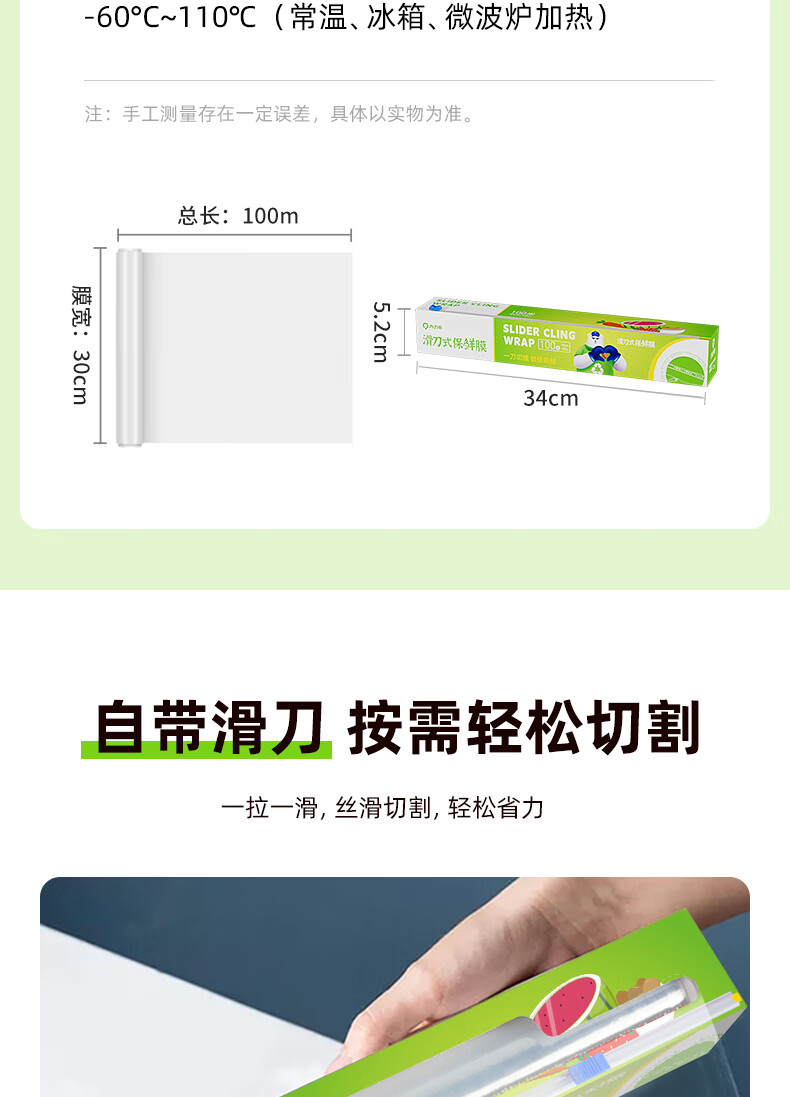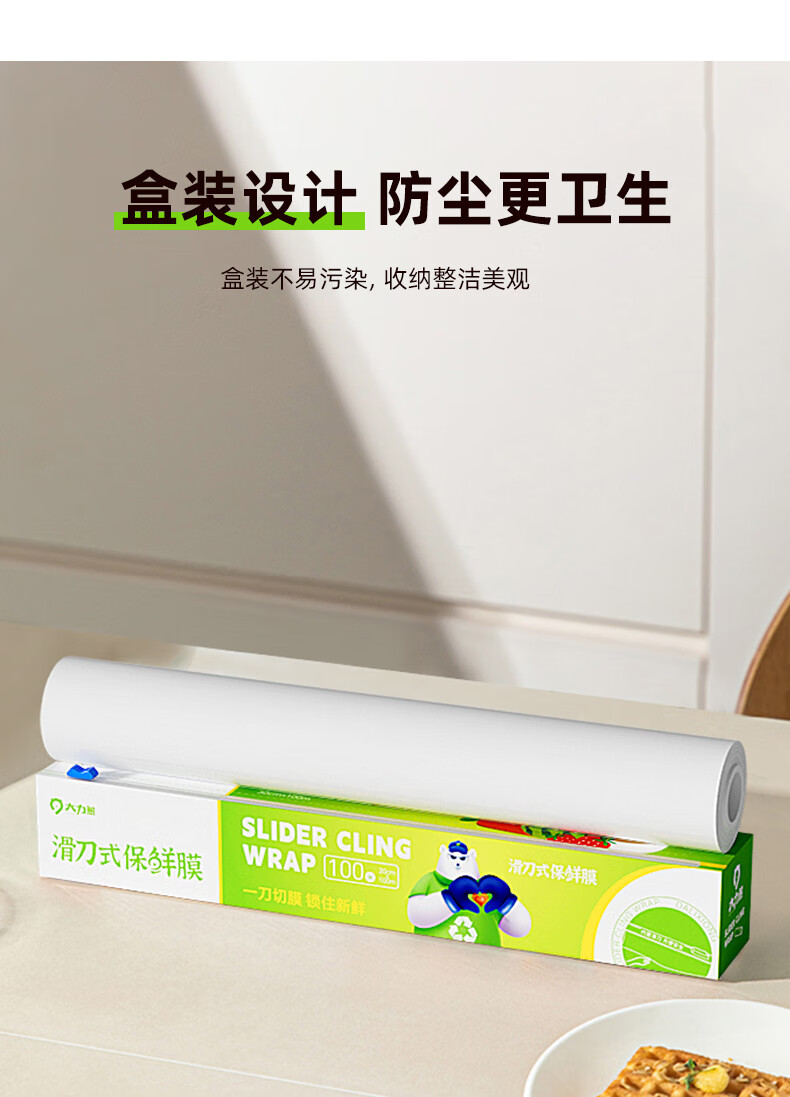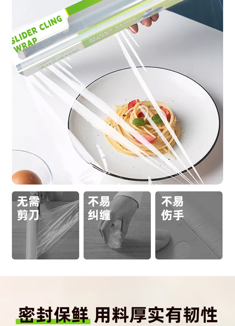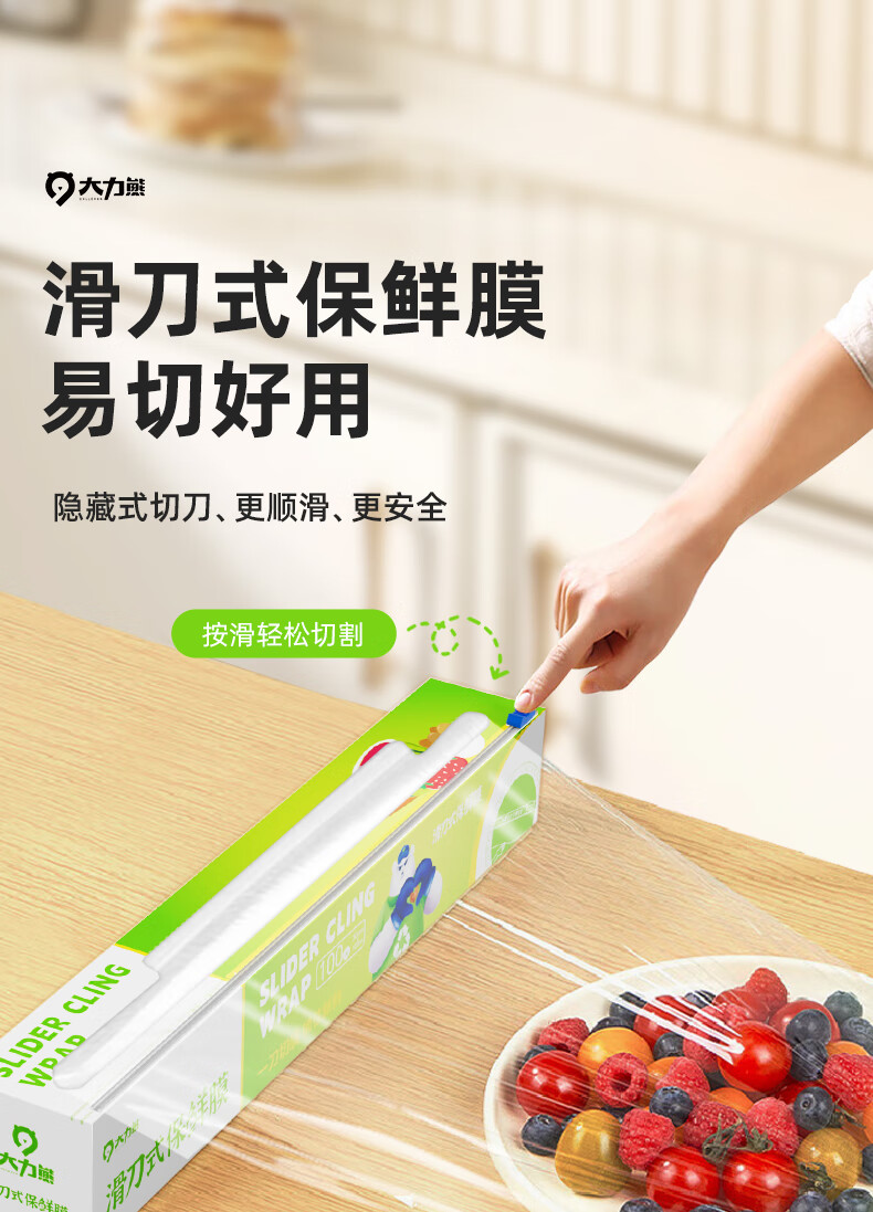 【五星专享】大力熊滑刀保鲜膜100米食品级厨房必备一次性专用 30cm*100m 2盒