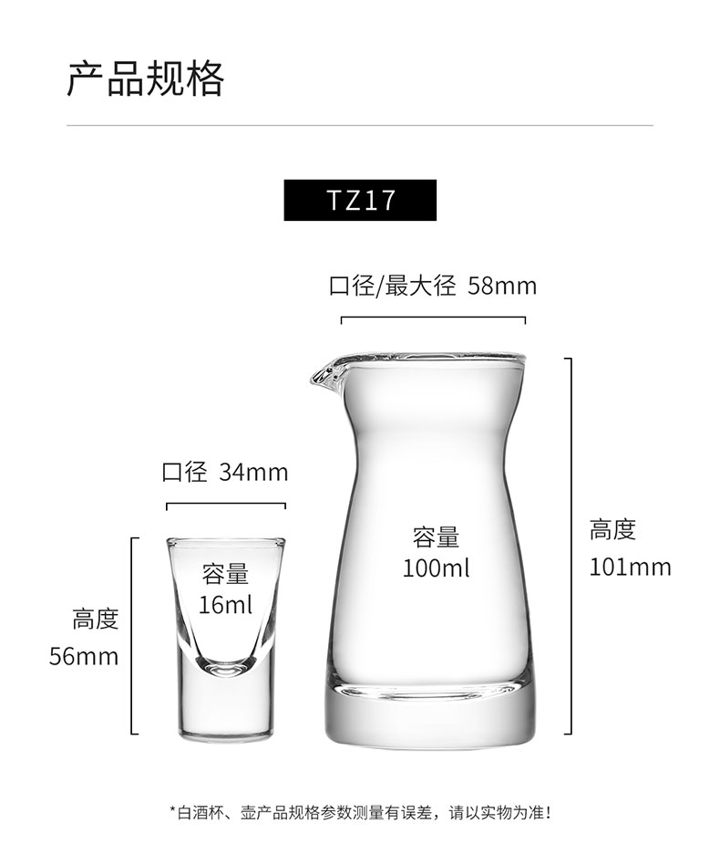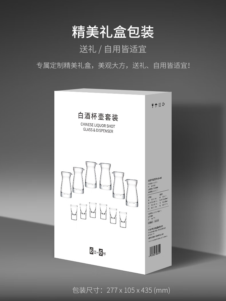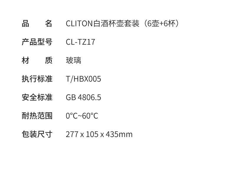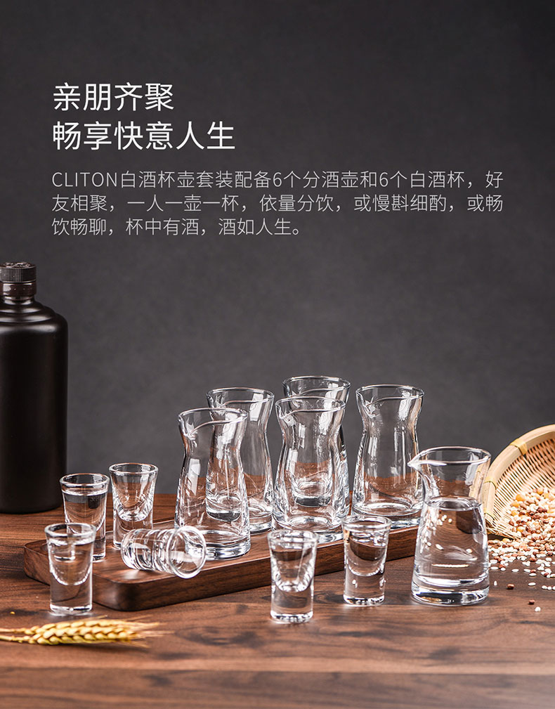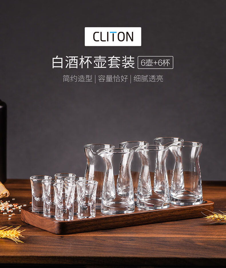 CLITON白酒杯分酒器100ml酒具套装一口小酒杯子弹杯玻璃酒壶酒盅6壶6杯