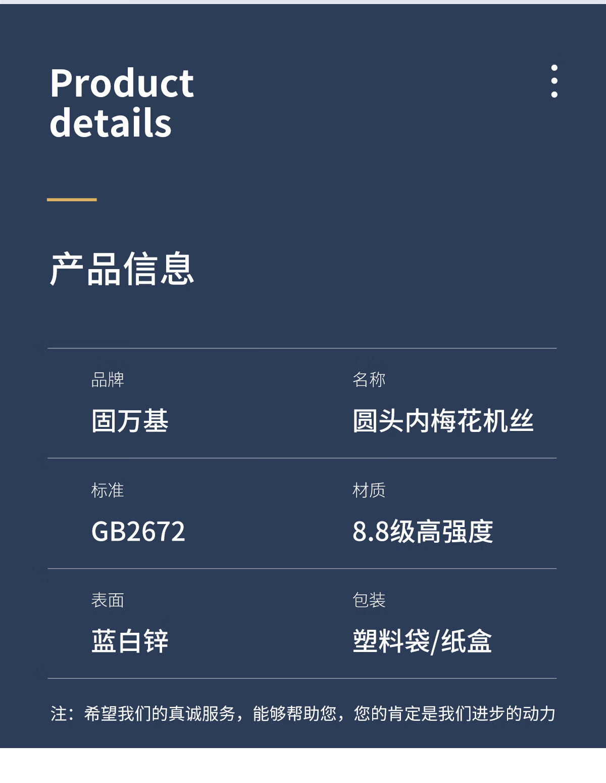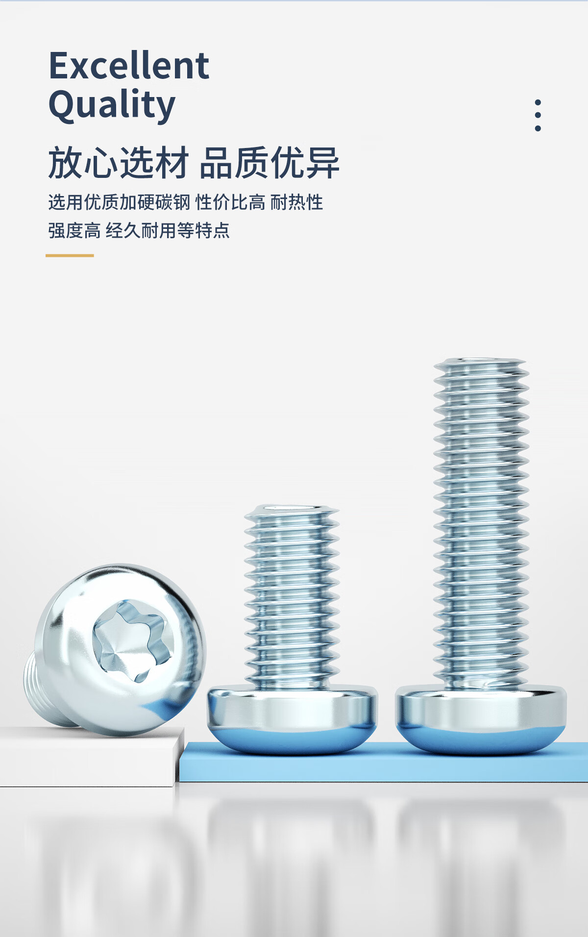 固万基(GUWANJI)8.8级镀锌盘头内梅花螺丝钉GB2672圆头花形槽防盗螺栓 M3M4M5M6M8 M3x6(200只)