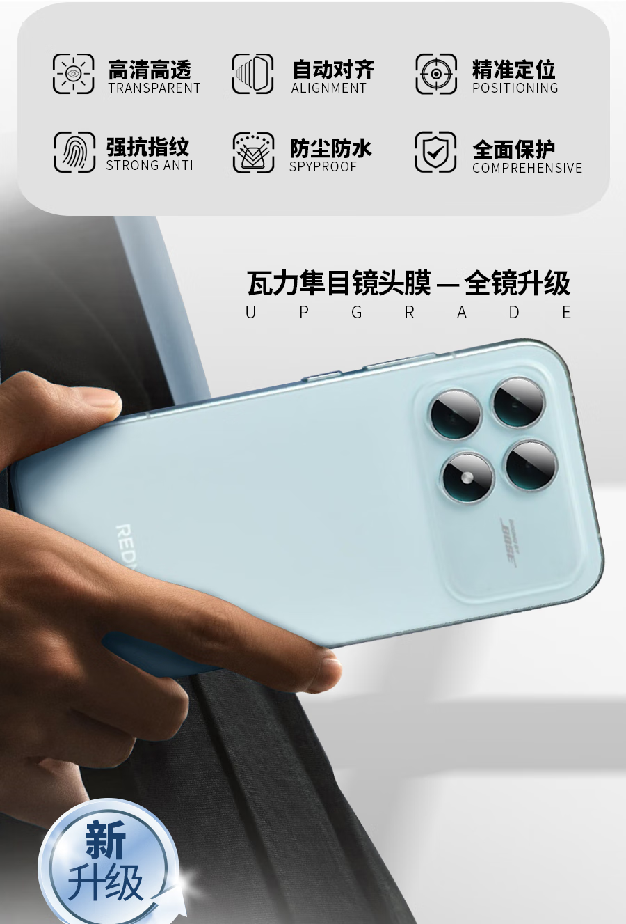 瓦力【AR增透】适用红米k90promax镜头膜REDMIK90PM后置摄像鹰眼独立镜头保护贴膜防炫光防摔-带定位器