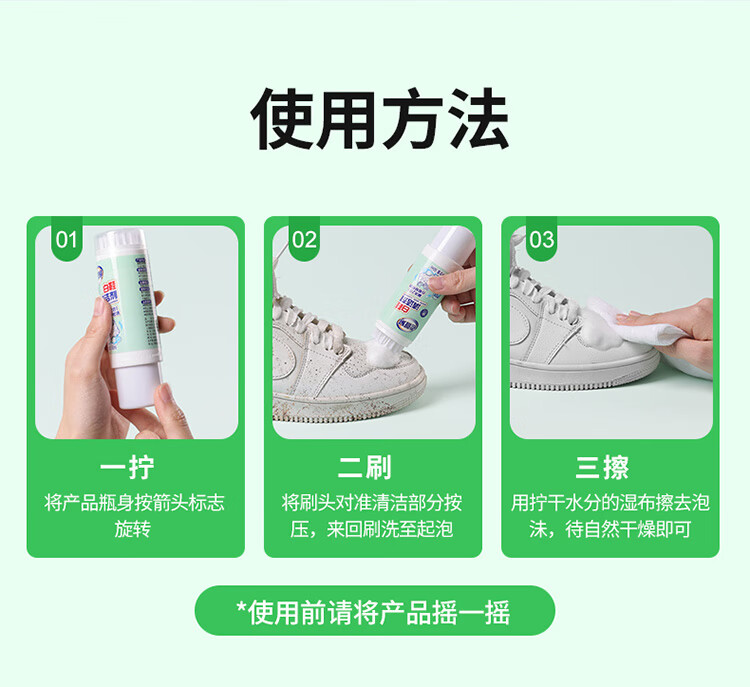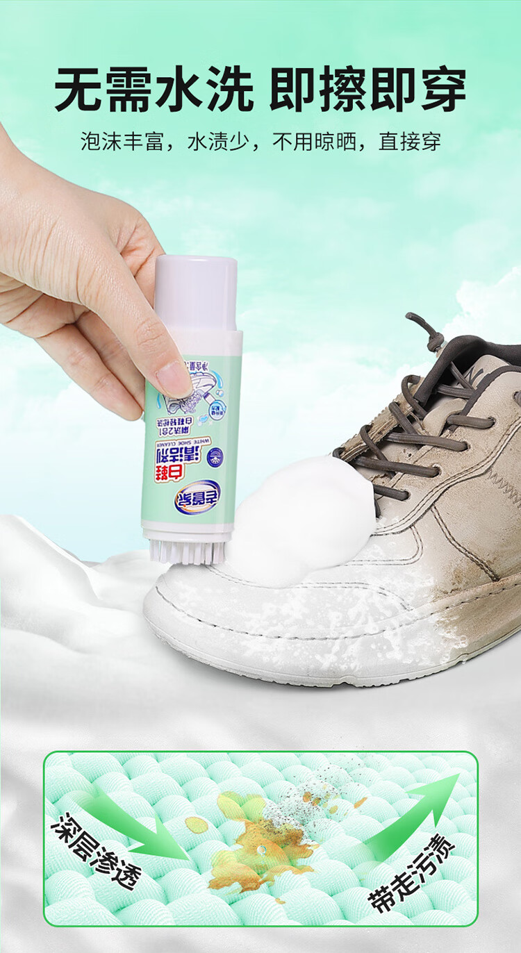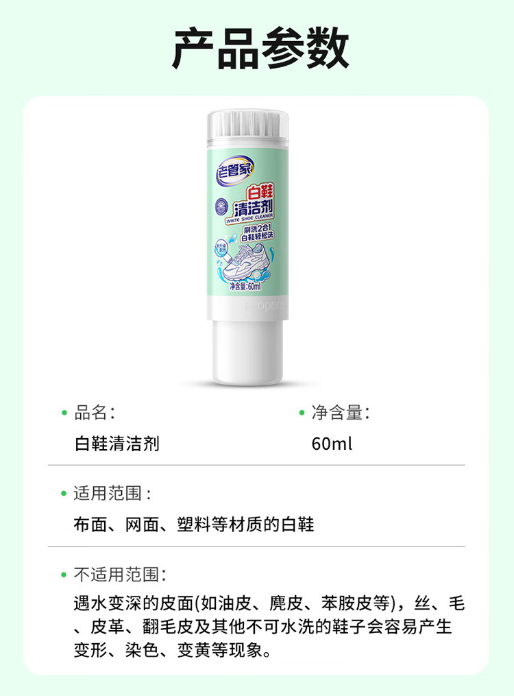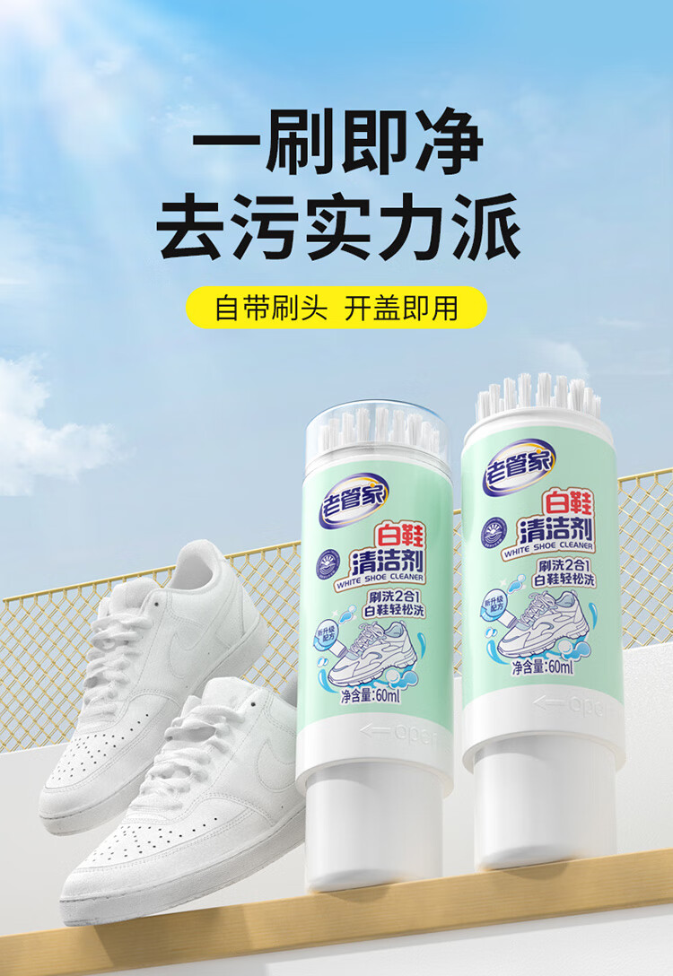 老管家白鞋清洁剂60ml洗鞋清洁剂干洗剂无需水洗清洁去污自带刷头
