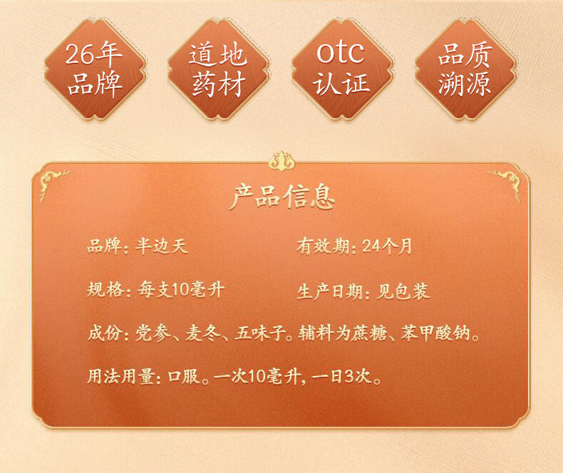 半边天 生脉饮 10ml*8支/盒 26年品牌 国药正品益气养阴生津气阴两亏心悸气短自汗修身聚气 6盒装【医师推荐疗程】