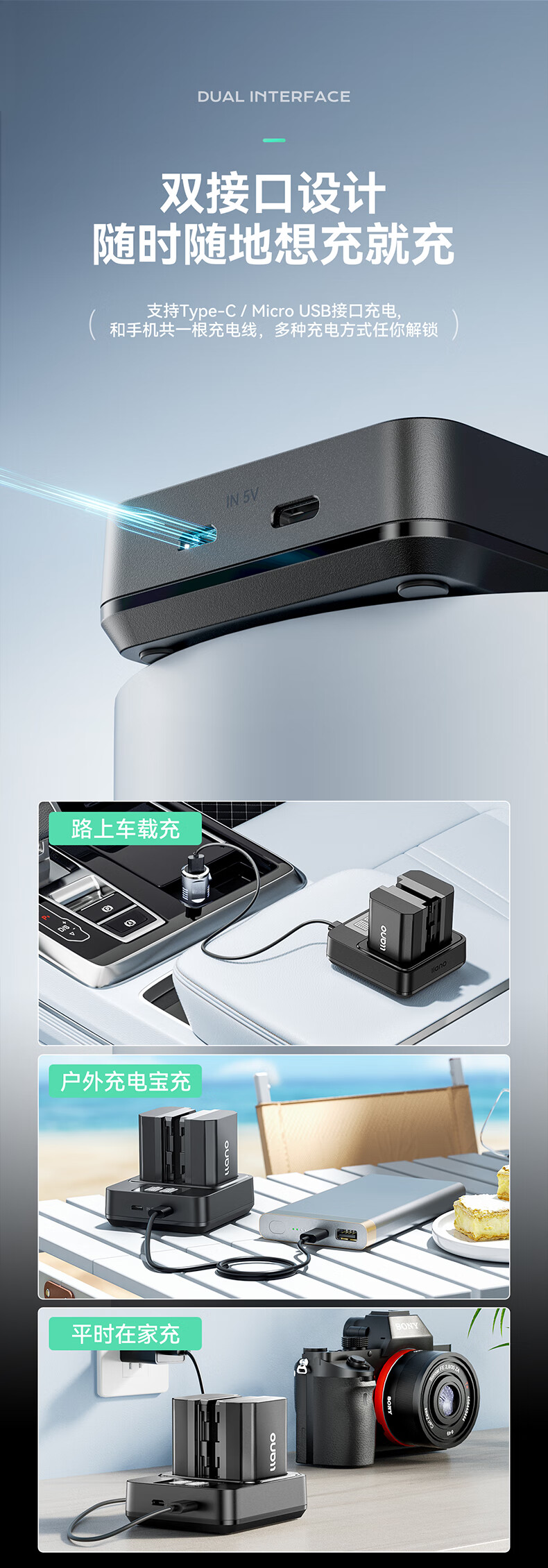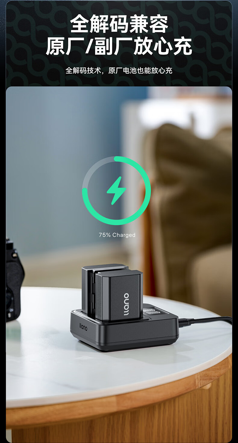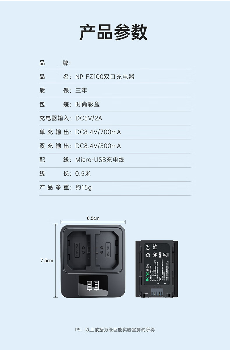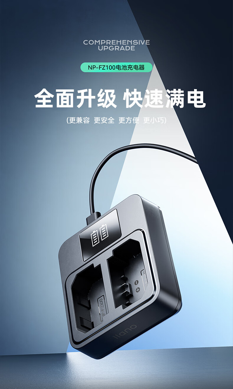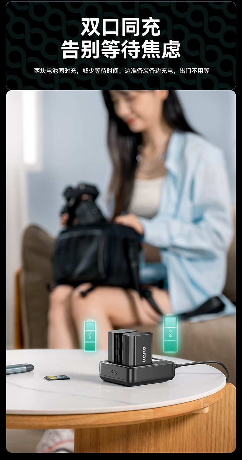 绿巨能(llano)适用索尼a7m4相机NP-FZ100电池充电器/a7m3/a7r3/a7s3/a7r4/a7c/a6600双口座充ILCE-9微单充电器