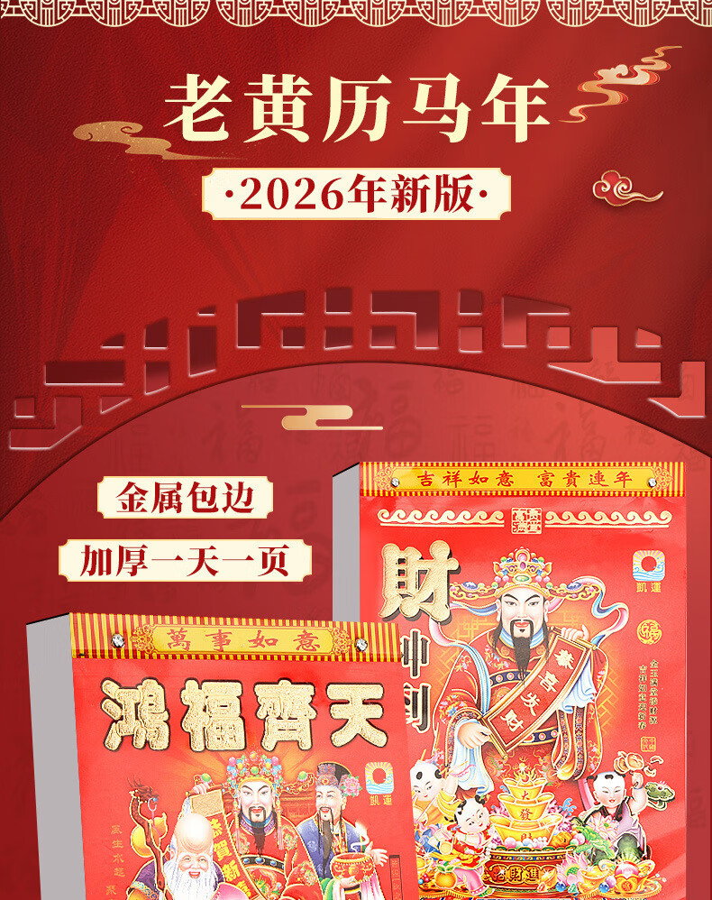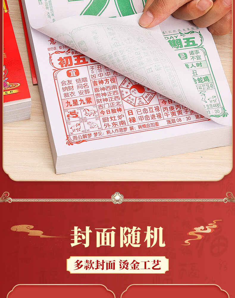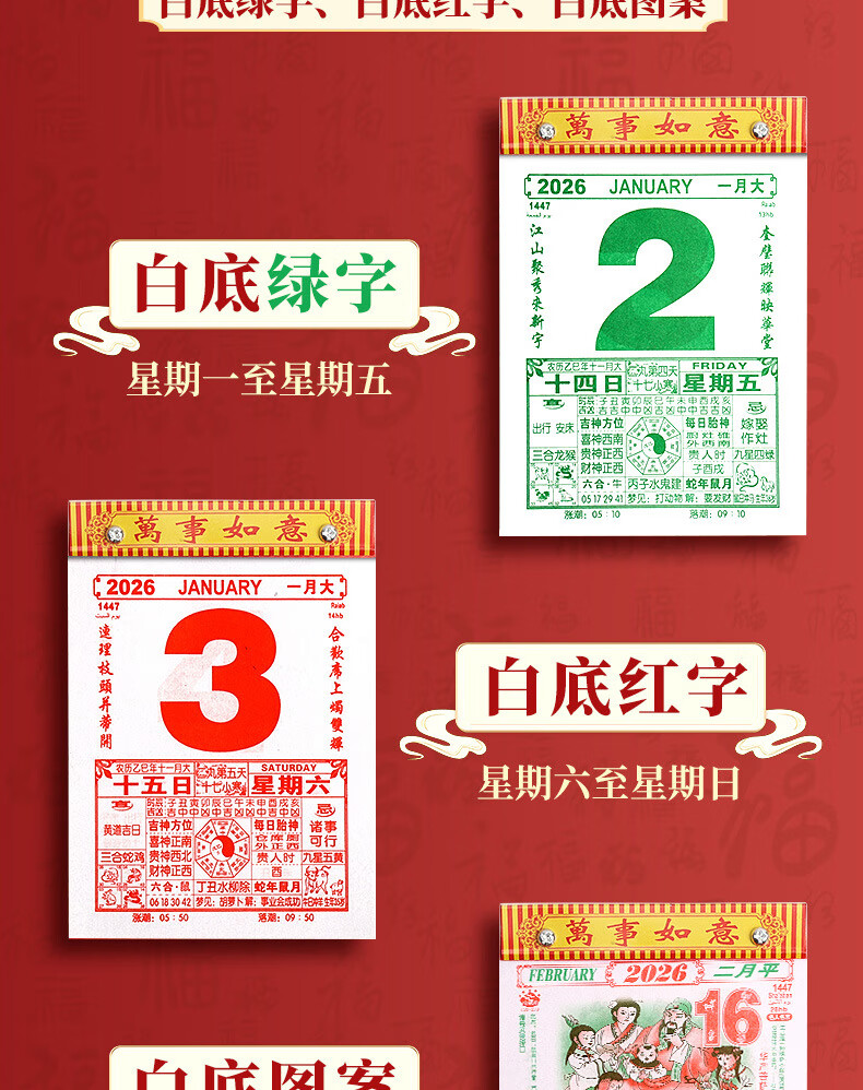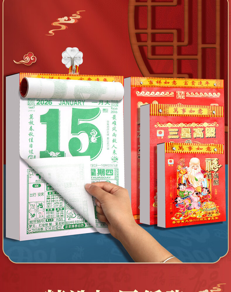 榄茵2026丙午马年传统老黄历大号挂墙手撕一天一张万黄道吉日 2026年马年日历【16K】 封面随机