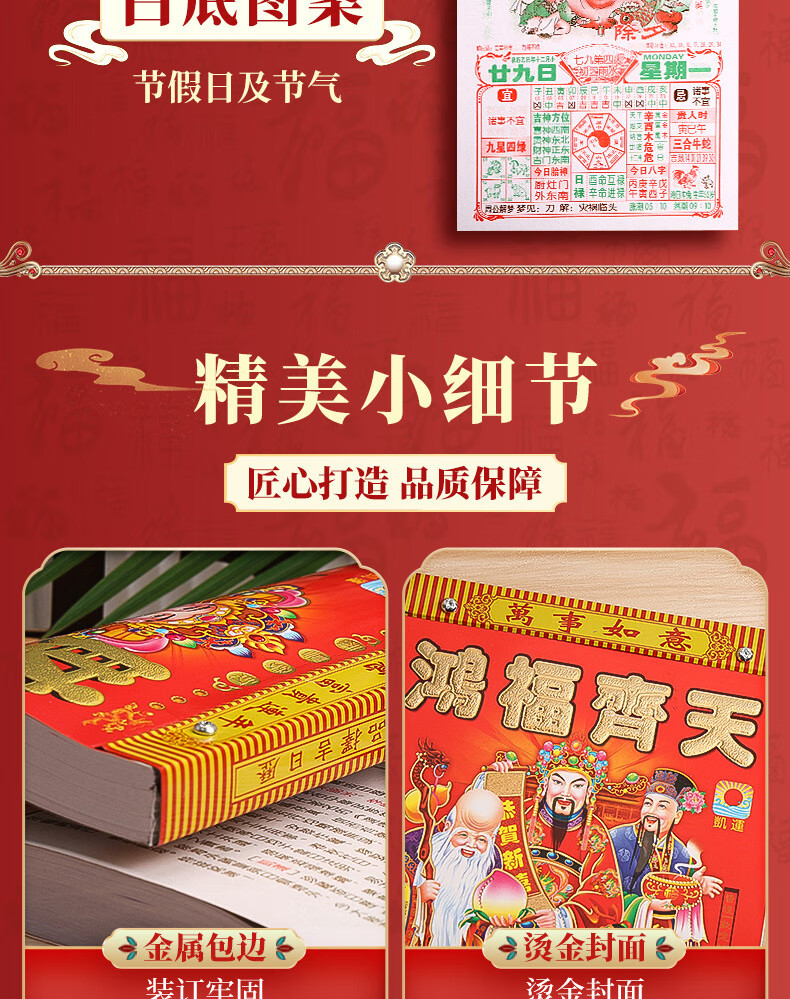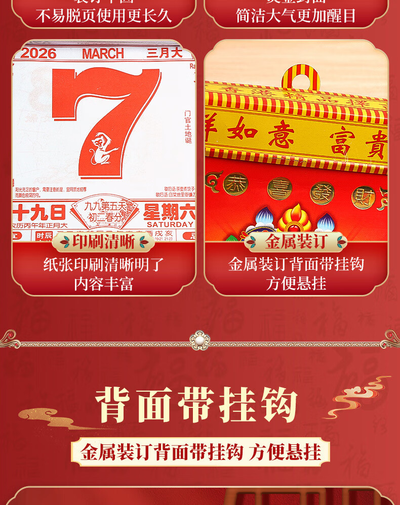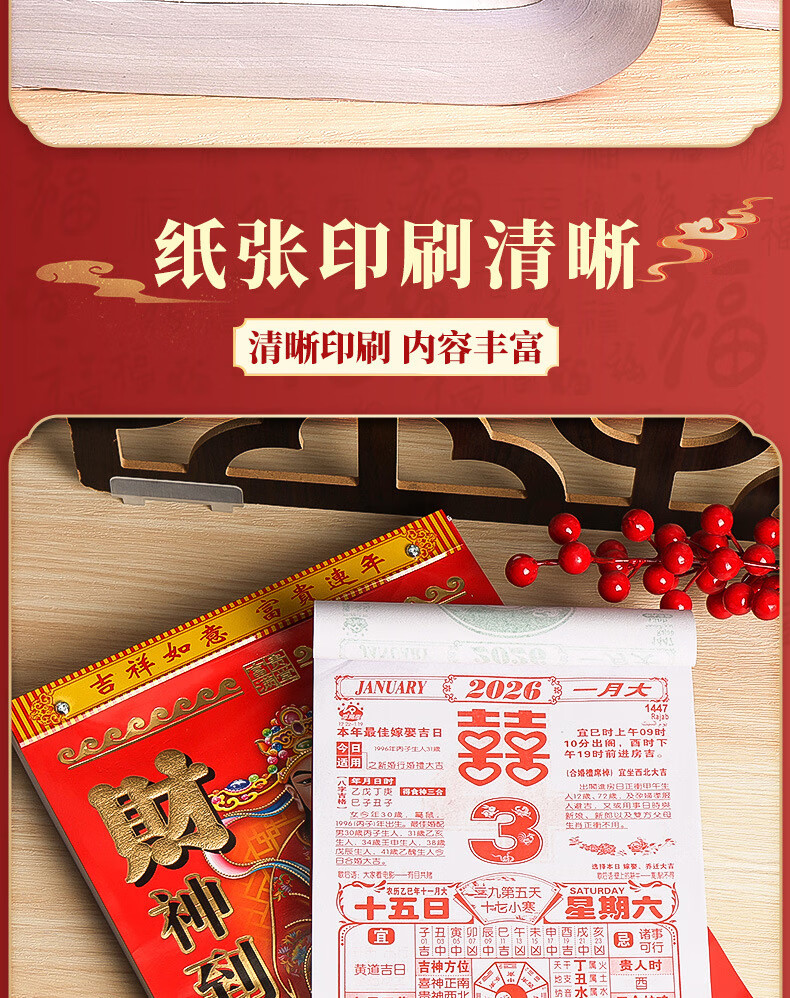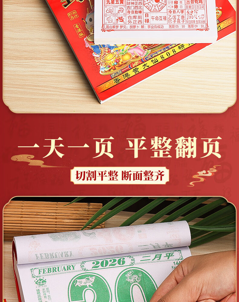 榄茵2026丙午马年传统老黄历大号挂墙手撕一天一张万黄道吉日 2026年马年日历【16K】 封面随机
