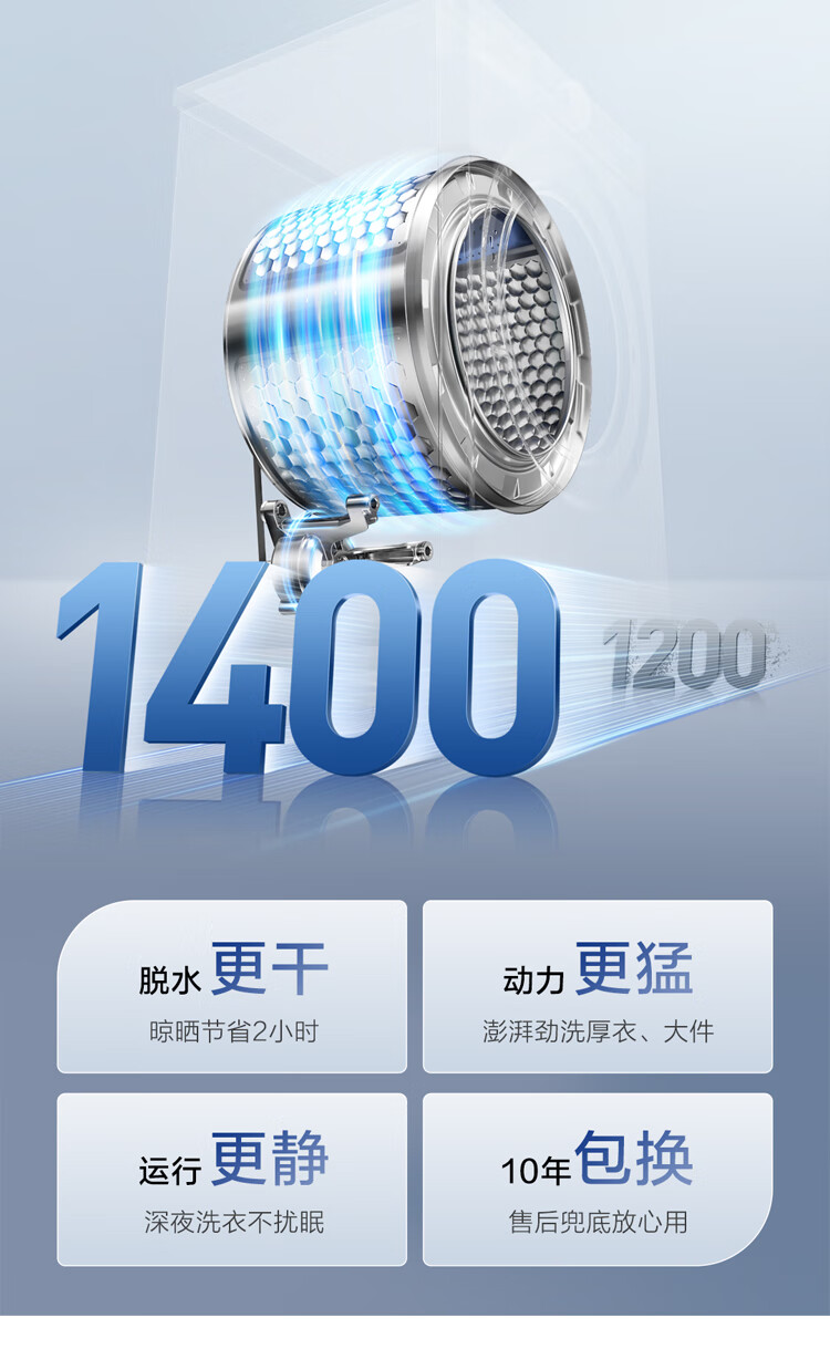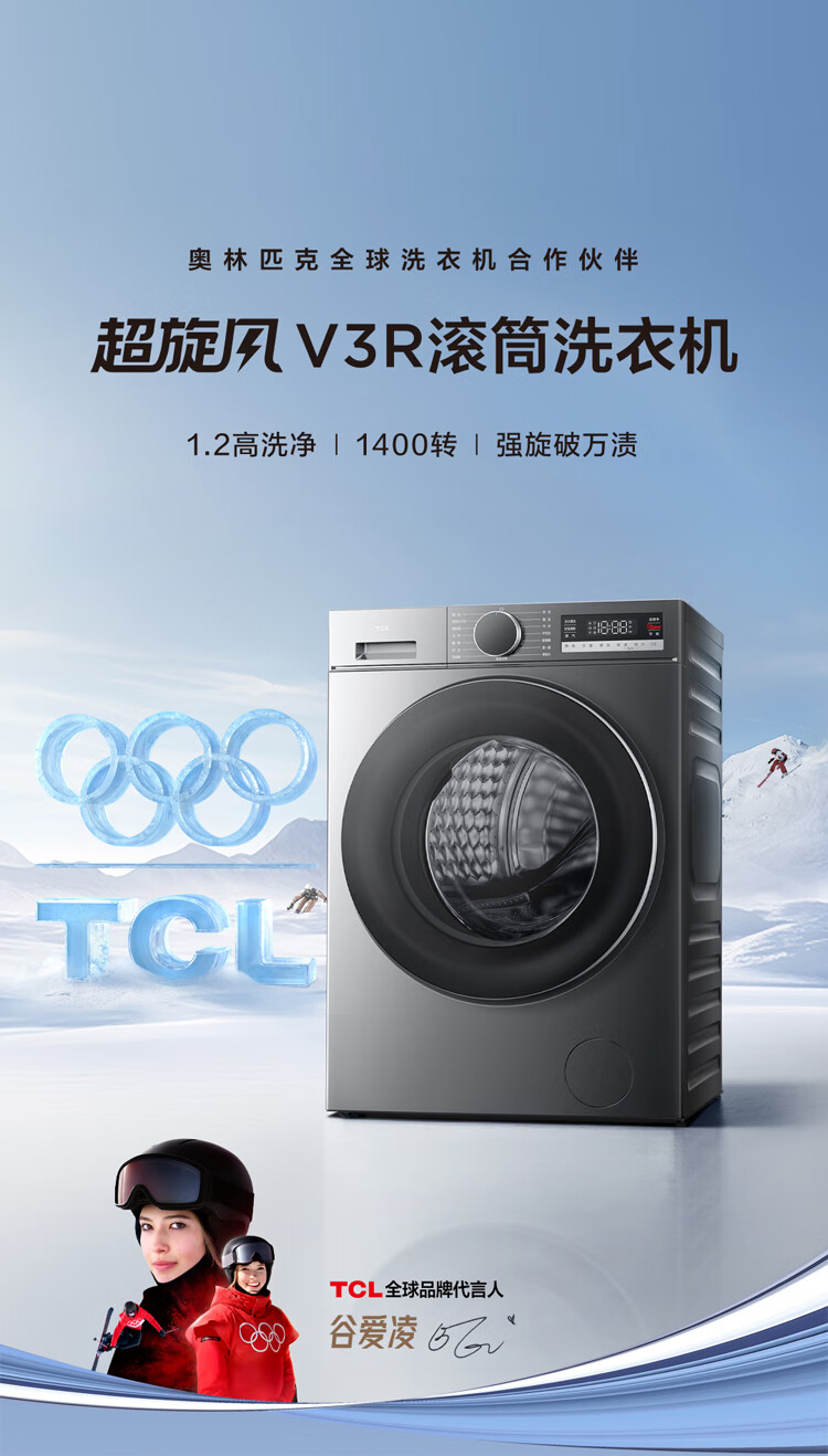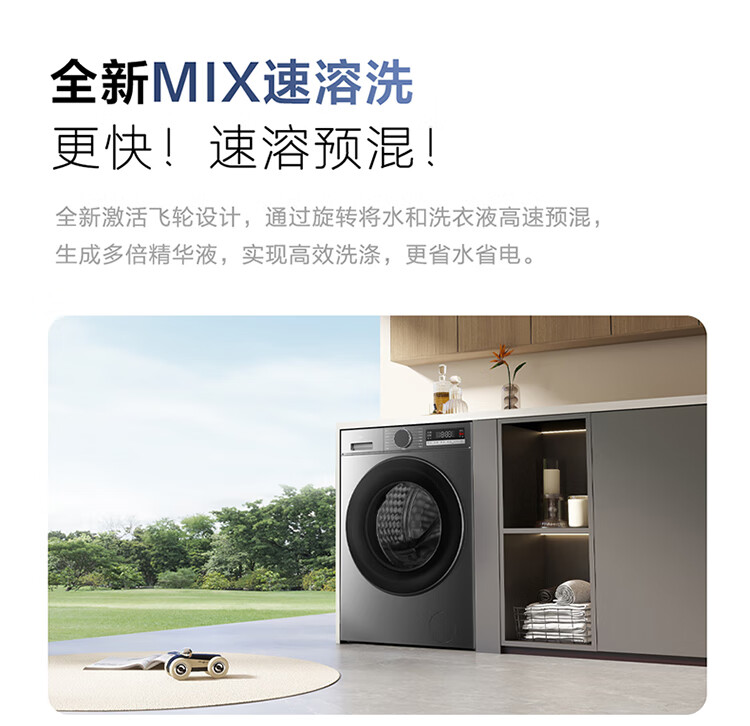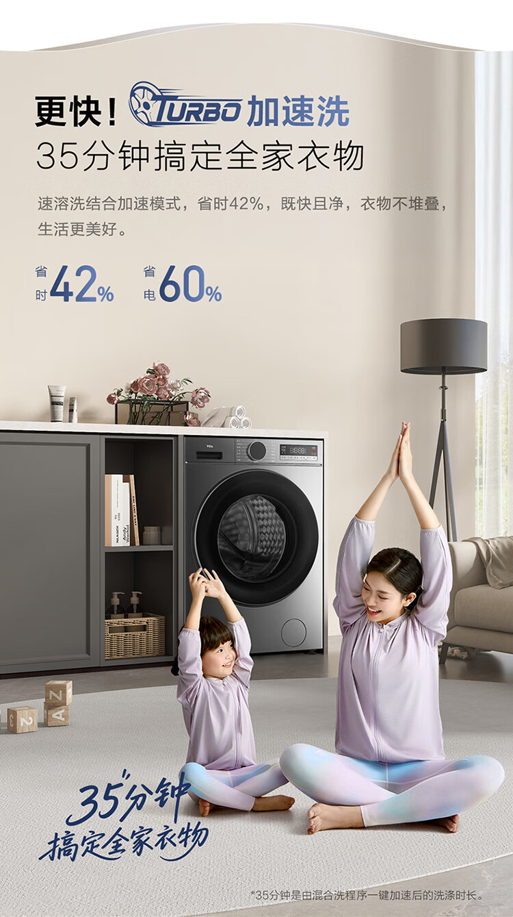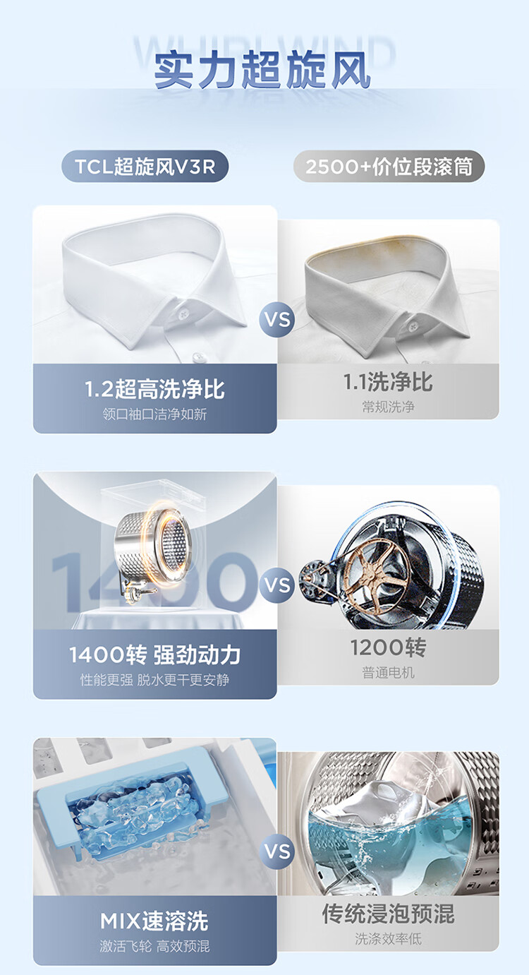 TCL超旋风10公斤变频滚筒洗衣机全自动家用超薄1400转1.2洗净比MIX速溶洗以旧换新国家补贴G100V3R-BS