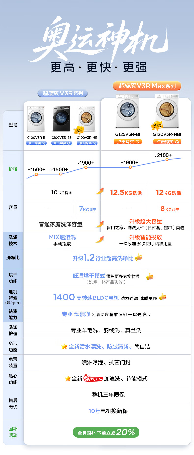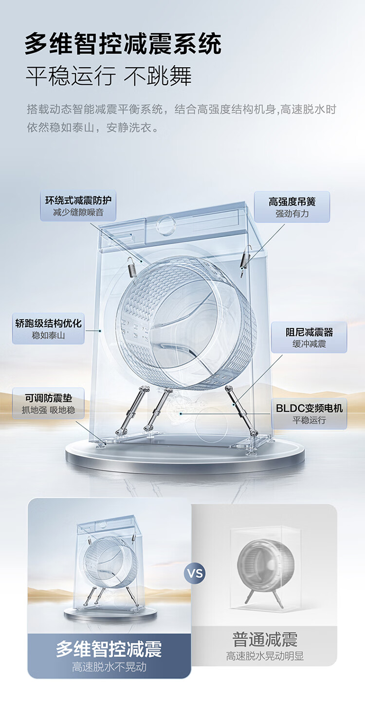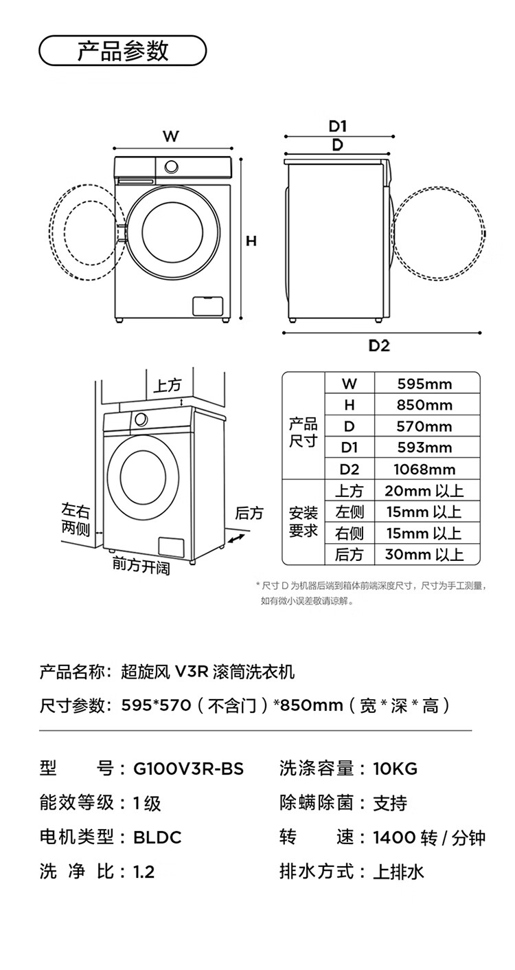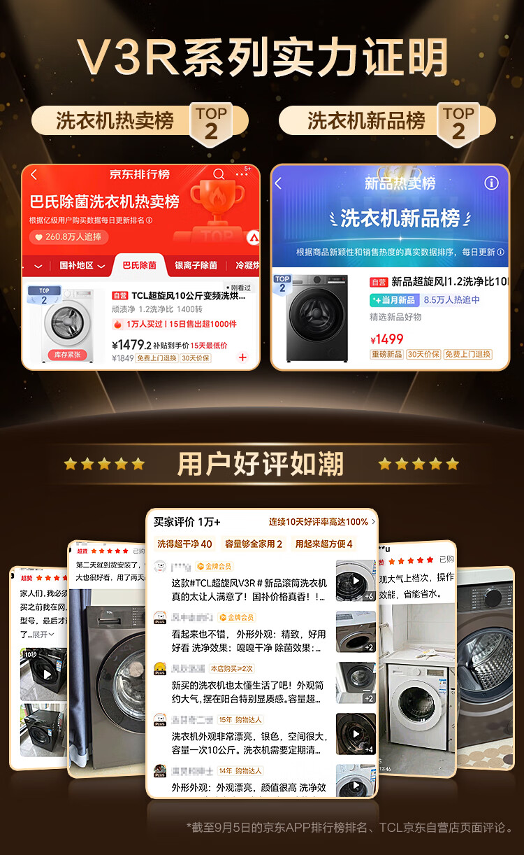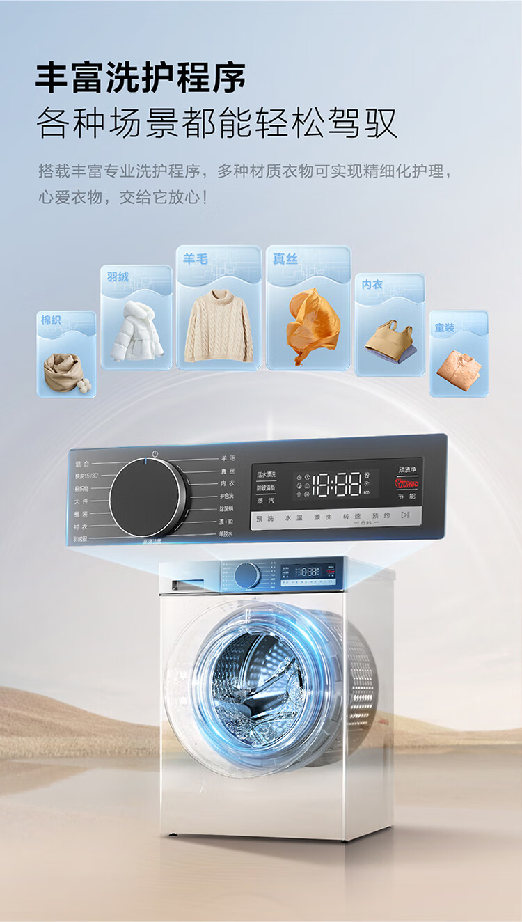 TCL超旋风10公斤变频滚筒洗衣机全自动家用超薄1400转1.2洗净比MIX速溶洗以旧换新国家补贴G100V3R-BS