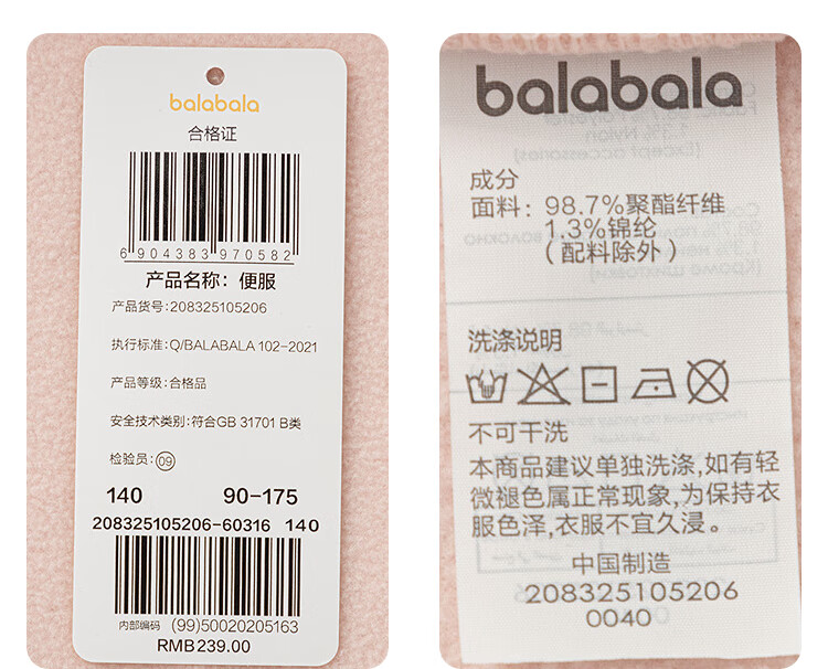 巴拉巴拉童装儿童外套男女童长袖宝宝上衣2025秋摇粒绒防静电208325105206