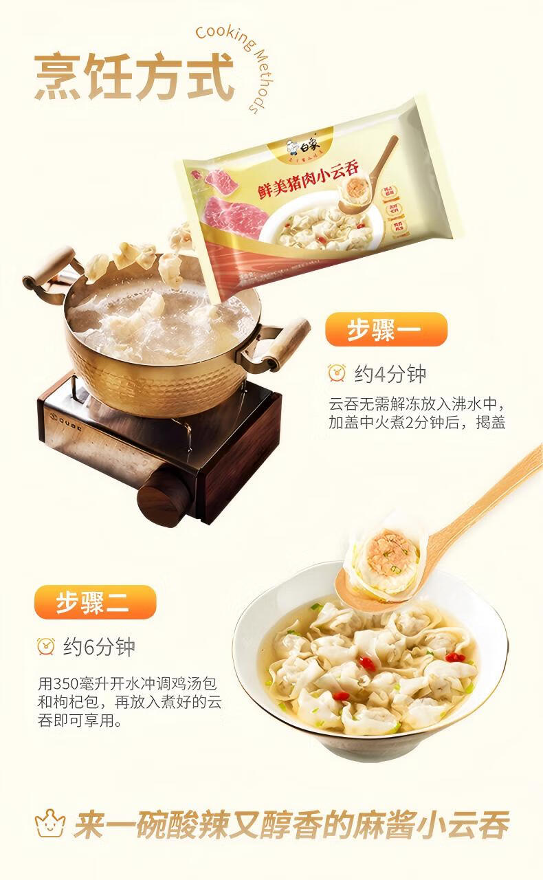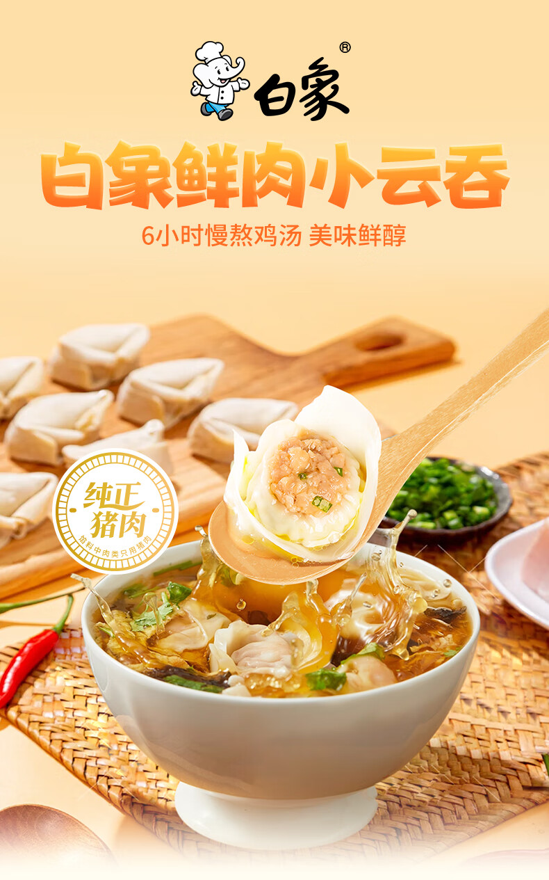 白象鲜美猪肉小云吞 生鲜健康早餐滋补 速食冷冻老母鸡汤馄饨625g75只