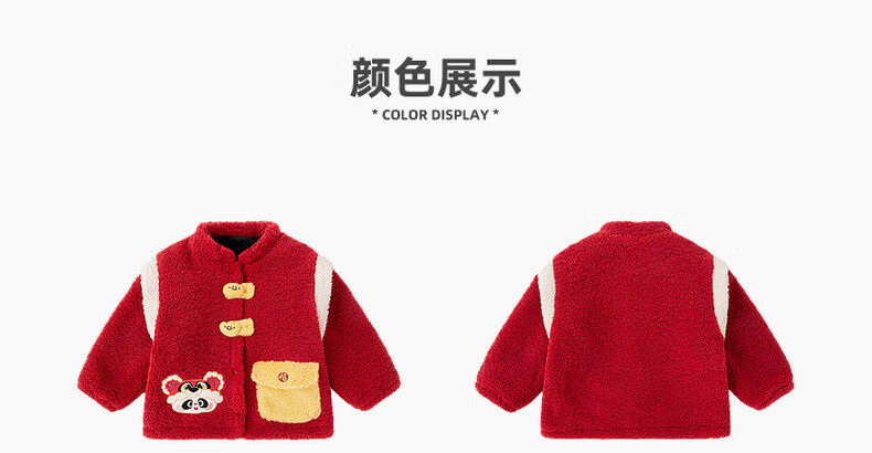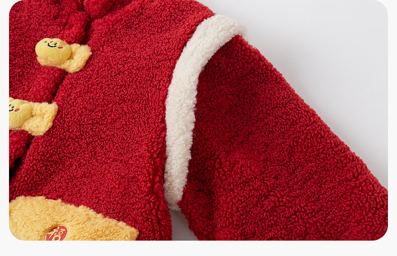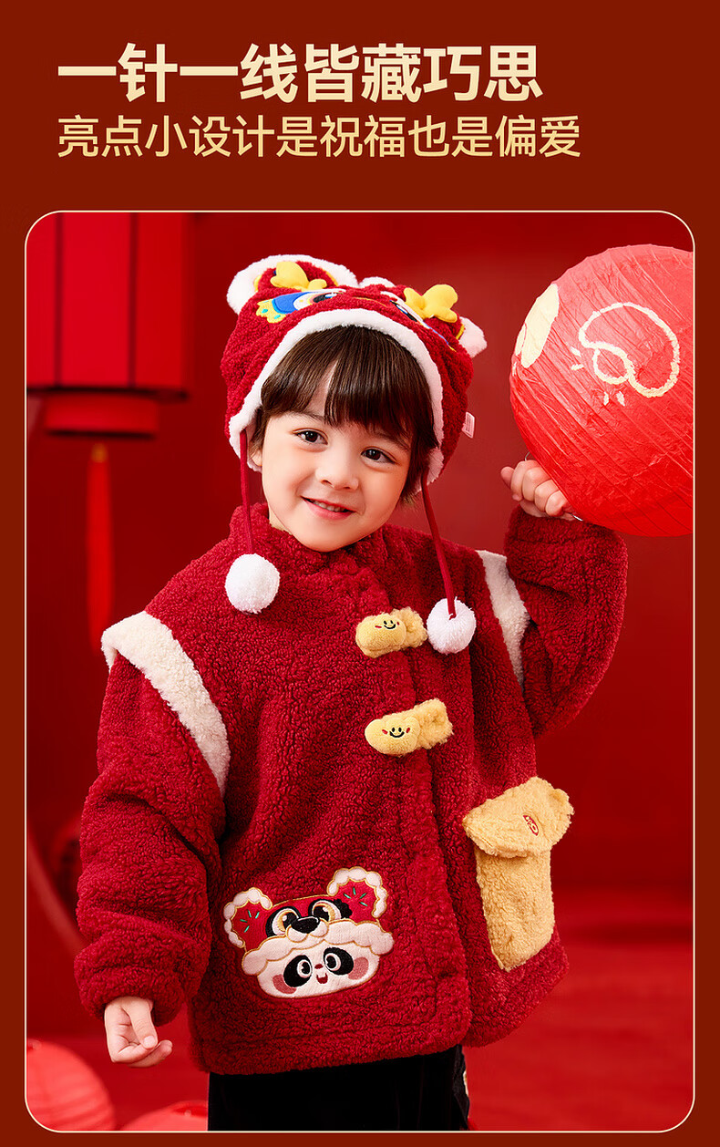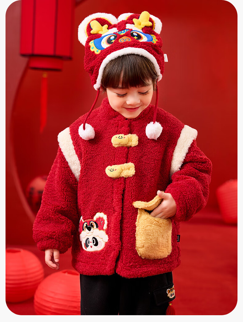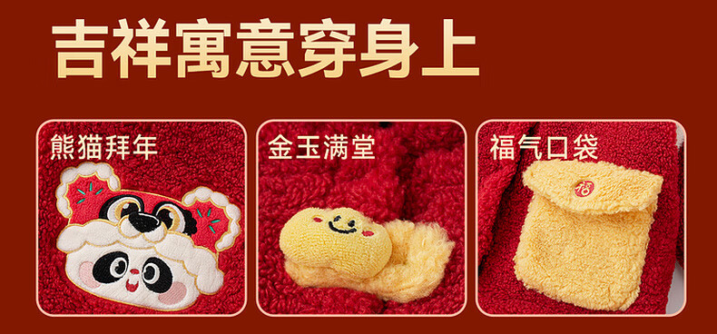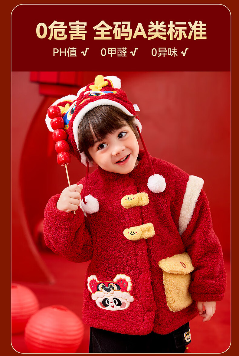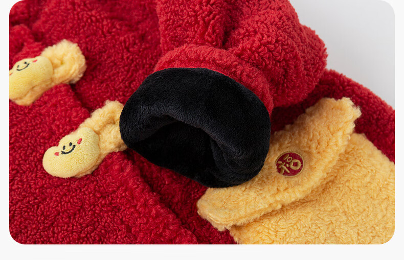 嘟嘟家【熊猫抱福】儿童外套新中式冬装男童外衣加绒冬款女童上衣童装潮 红色 90