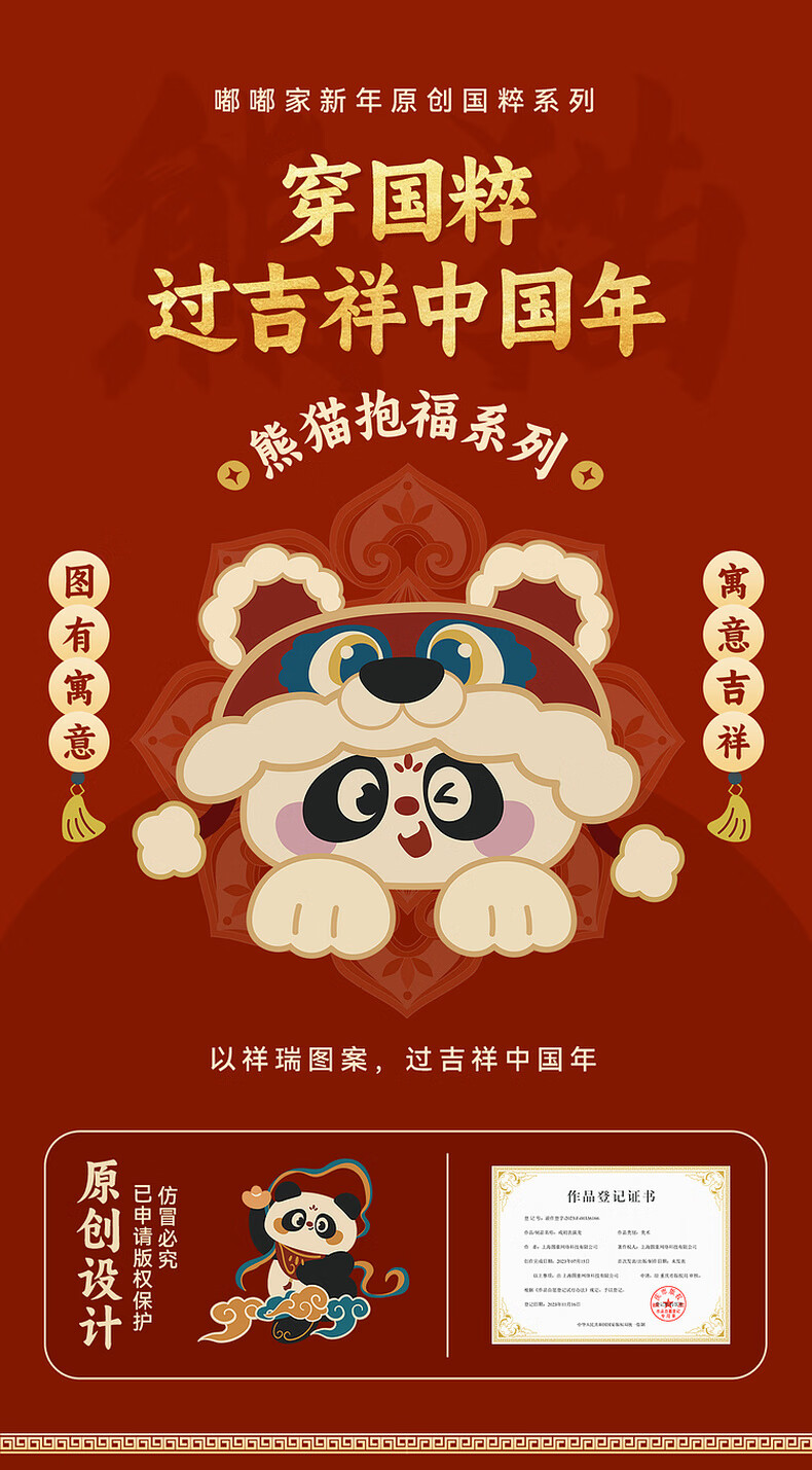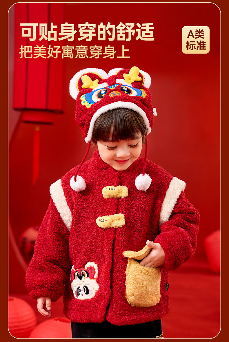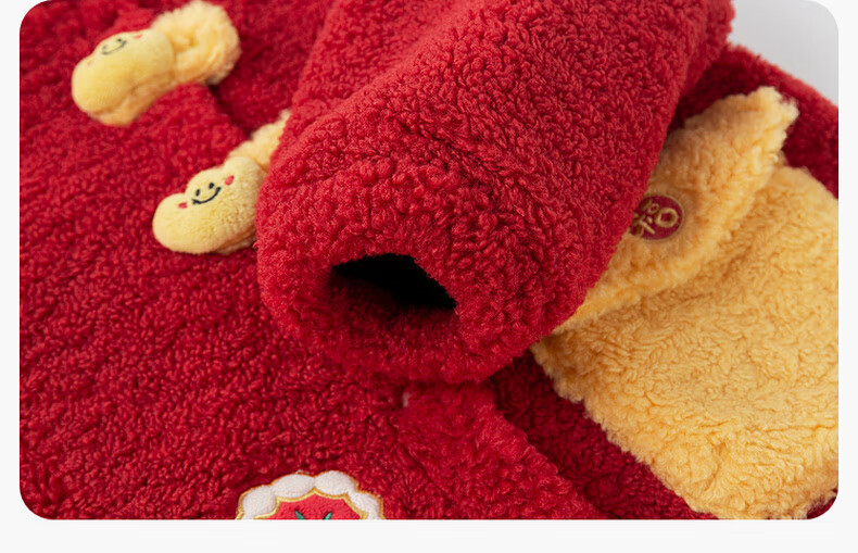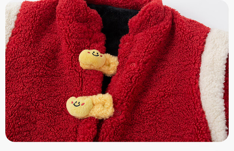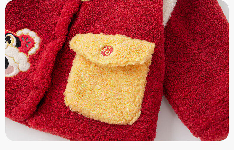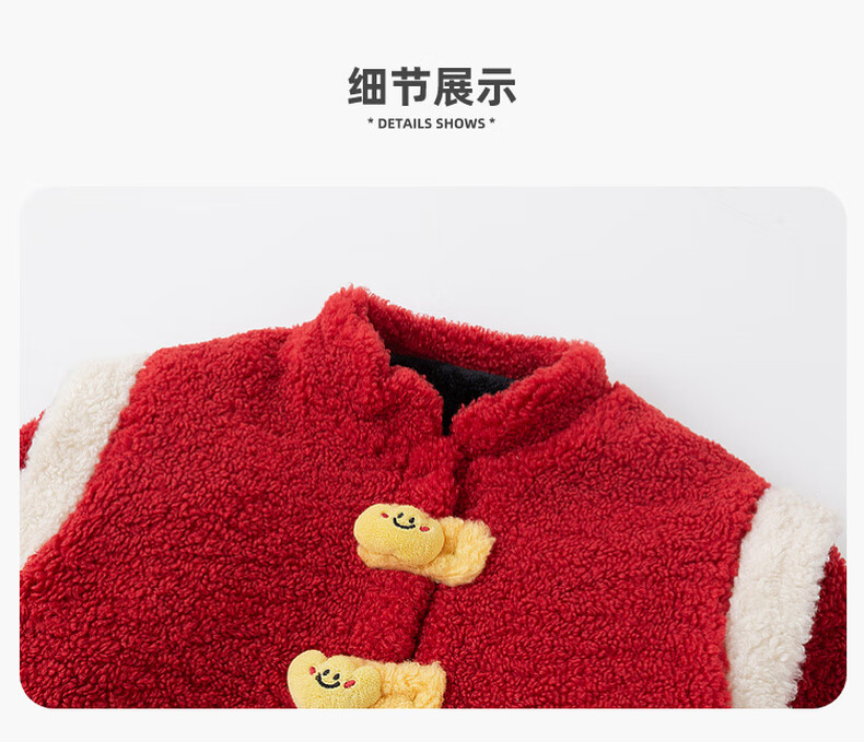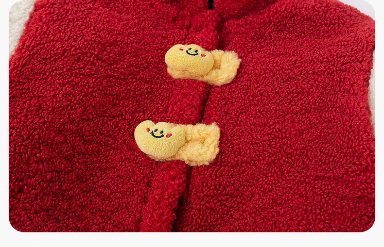 嘟嘟家【熊猫抱福】儿童外套新中式冬装男童外衣加绒冬款女童上衣童装潮 红色 90