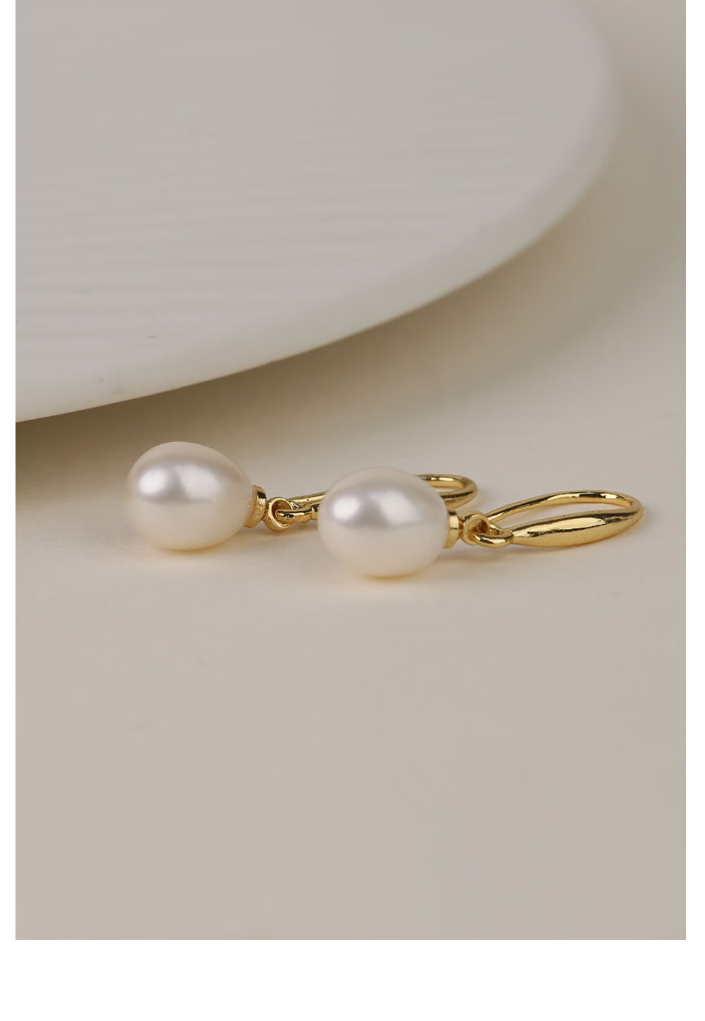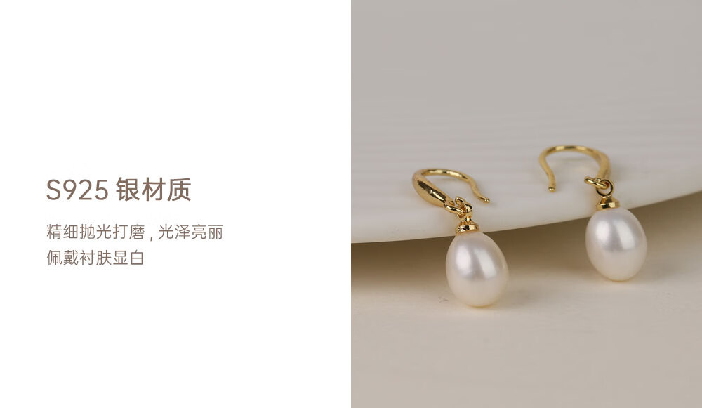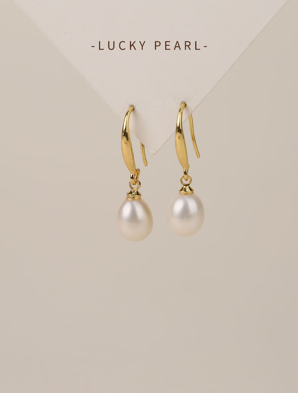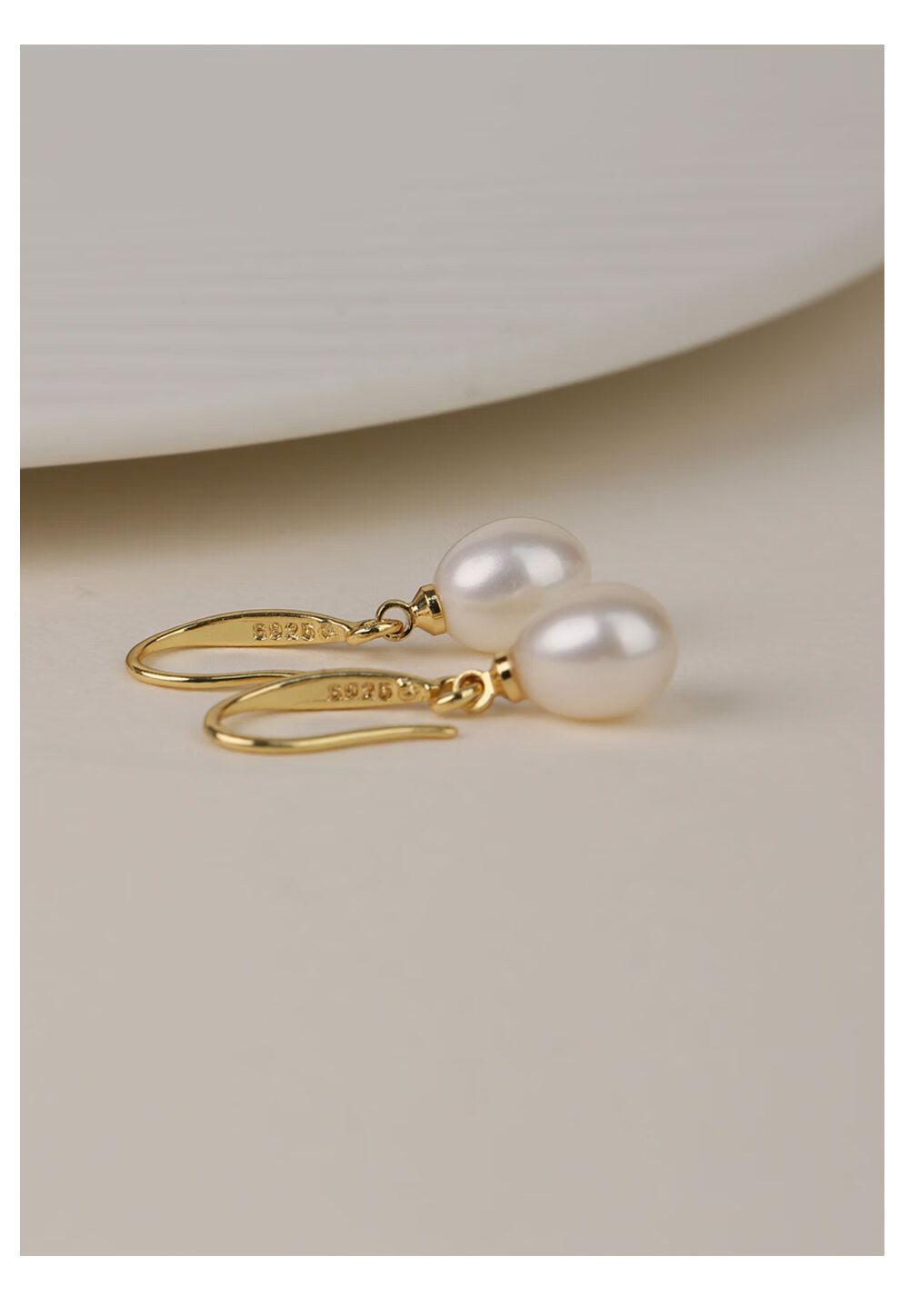 有幸珍珠耳钩 淡水珍珠耳环6-7mm简约设计款气质耳钉送女友生日礼物 6-7mm 白色米形珍珠耳钩