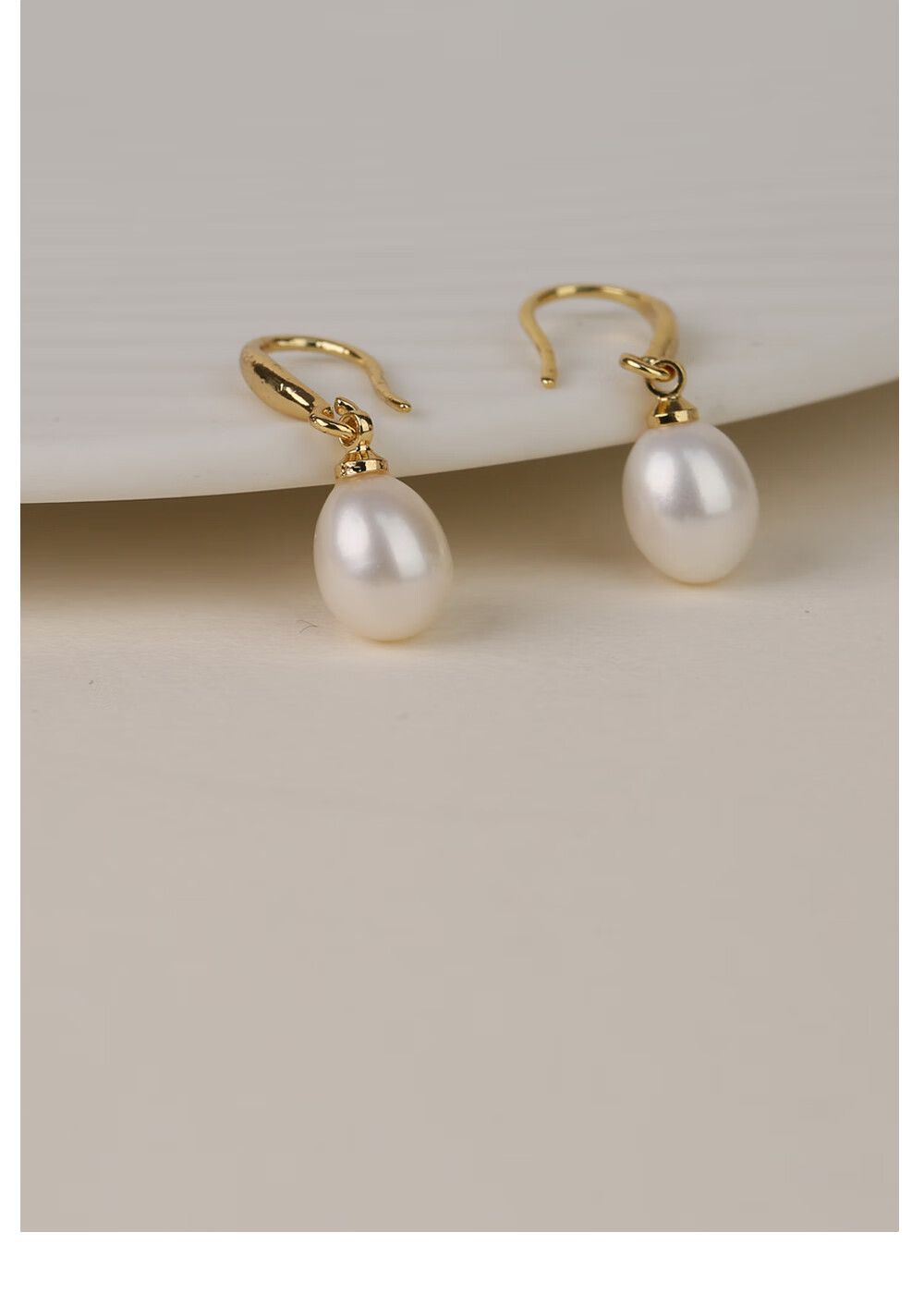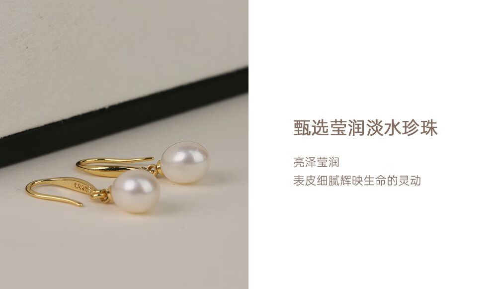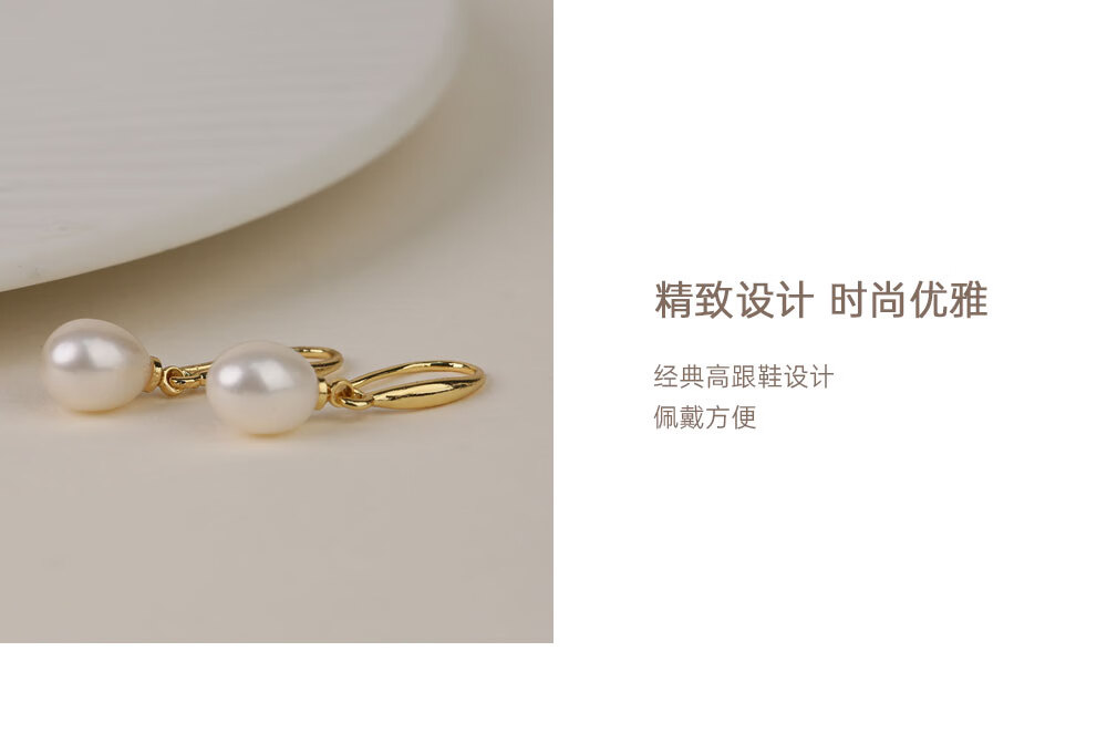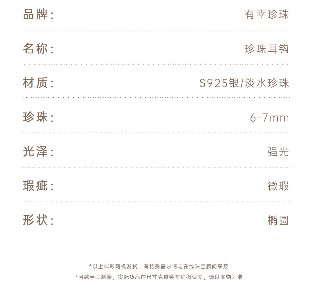 有幸珍珠耳钩 淡水珍珠耳环6-7mm简约设计款气质耳钉送女友生日礼物 6-7mm 白色米形珍珠耳钩