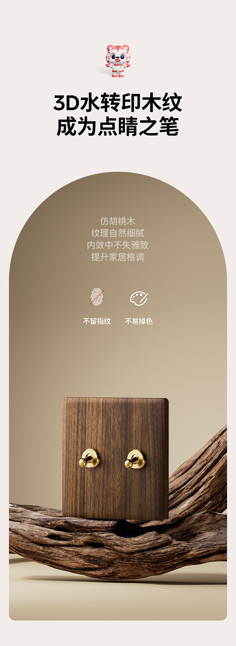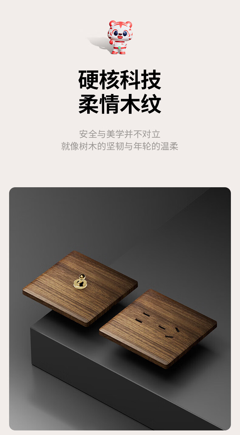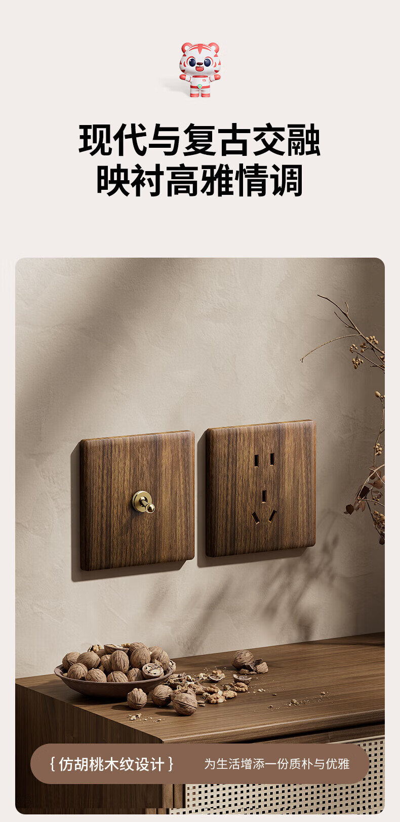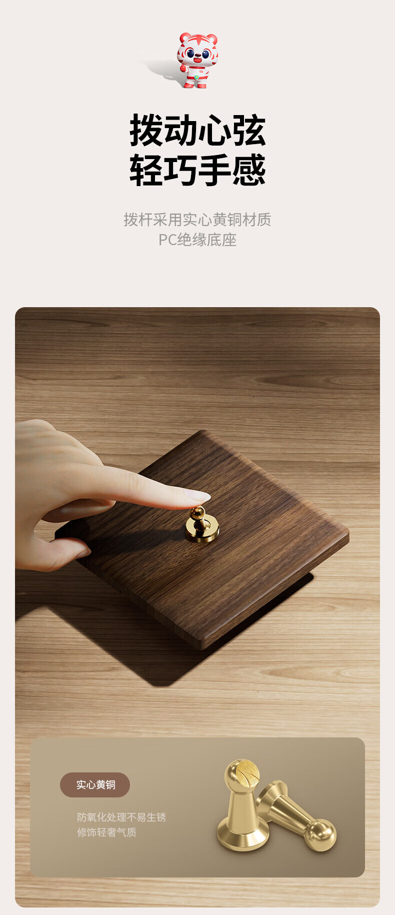 国际电工复古开关插座面板黄铜拨杆86型五孔仿胡桃木纹古风民宿酒店墙壁 空白面板