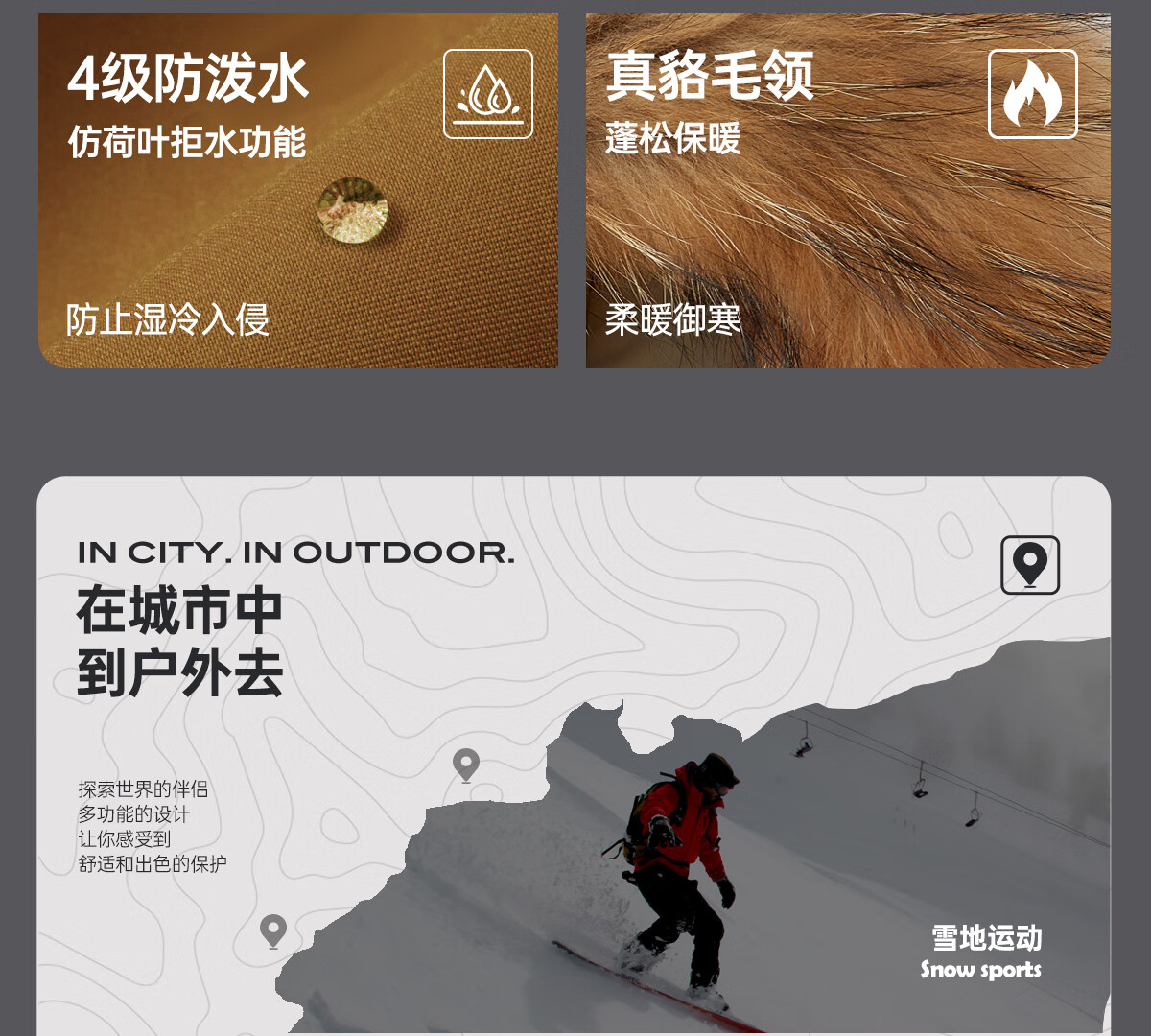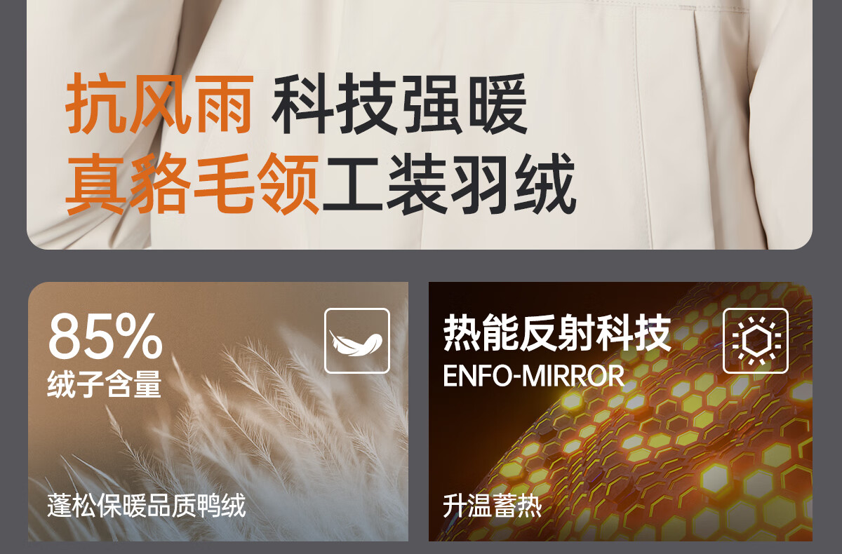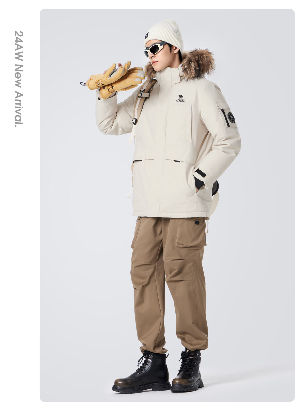 骆驼(CAMEL)男装大毛领羽绒服男冬季加厚工装户外保暖防寒外套M34CS01643