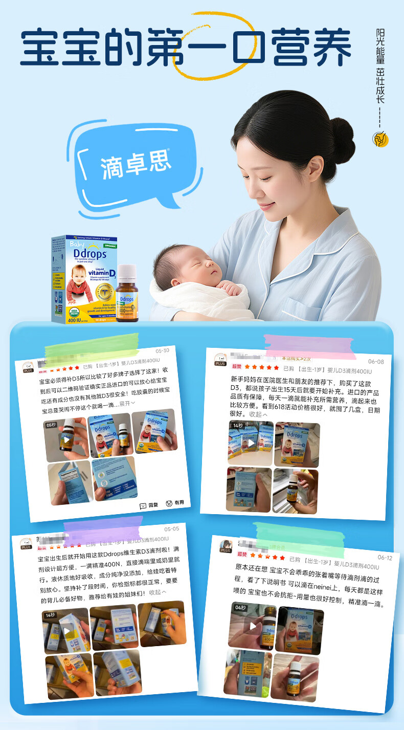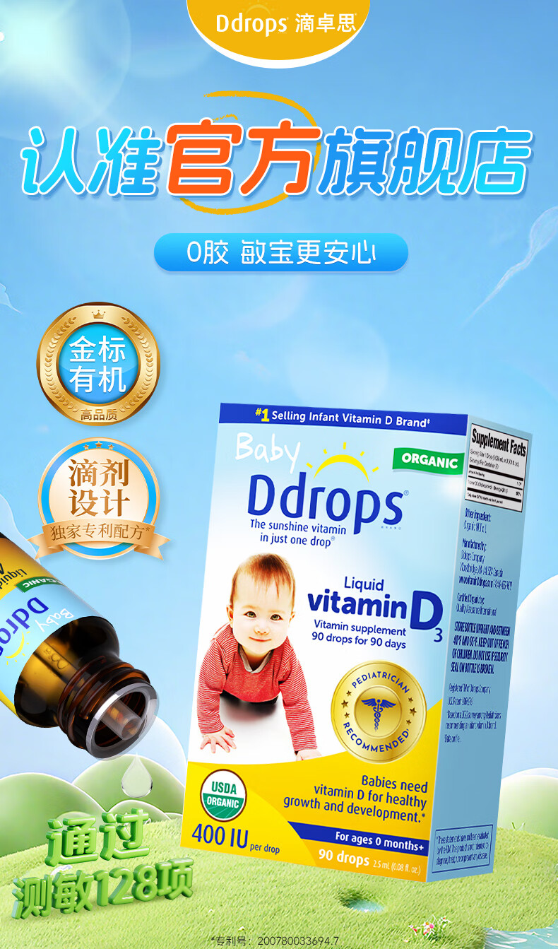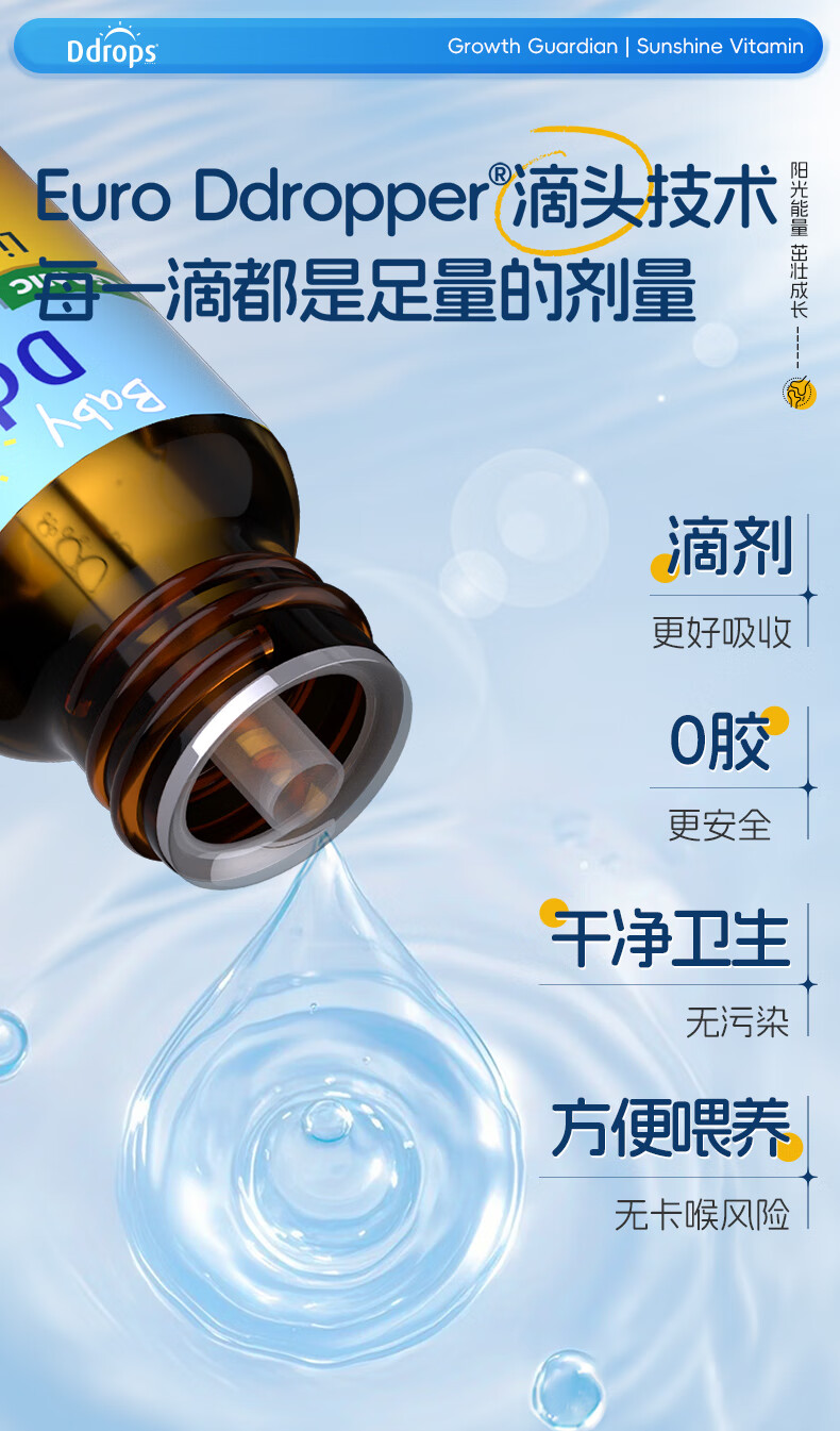 Ddrops滴卓思维生素d3婴儿 液体促钙吸收新生儿补钙敏宝vd3滴剂0-1岁 【出生-1岁】婴儿AD+婴儿D3组合装