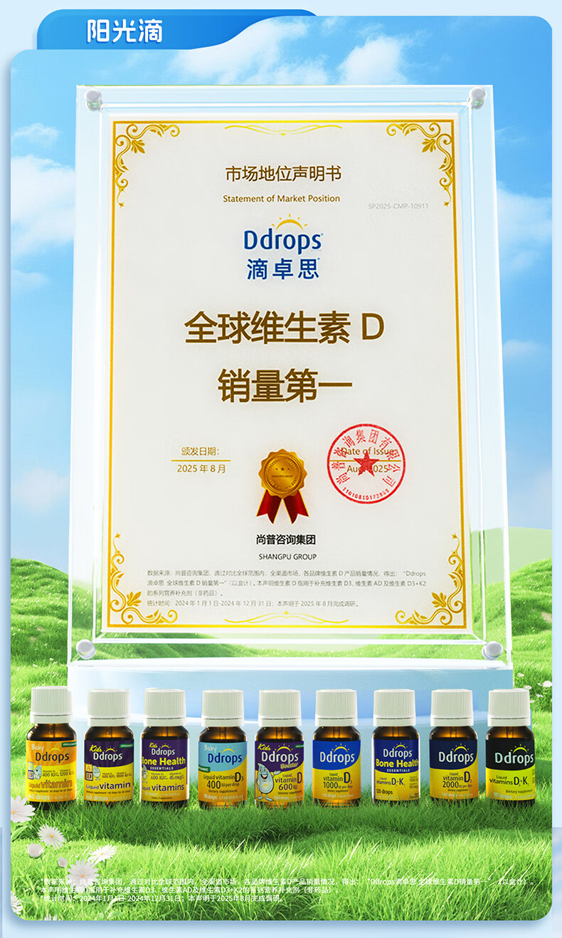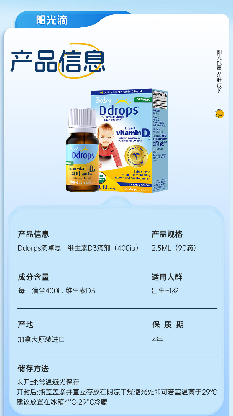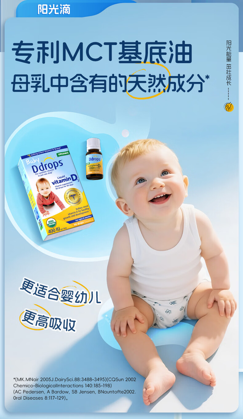 Ddrops滴卓思维生素d3婴儿 液体促钙吸收新生儿补钙敏宝vd3滴剂0-1岁 【出生-1岁】婴儿AD+婴儿D3组合装