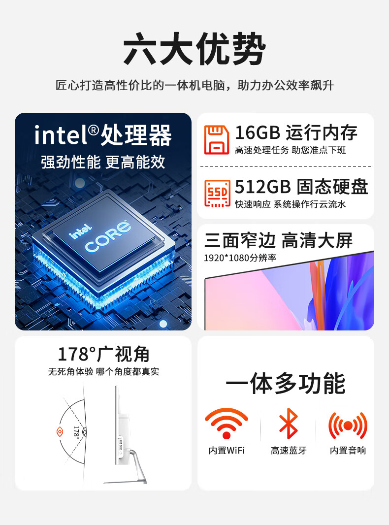 昂台 商用办公家用一体机台式电脑主机全套 【爆款】27英寸/酷睿i7/8G/256G固态