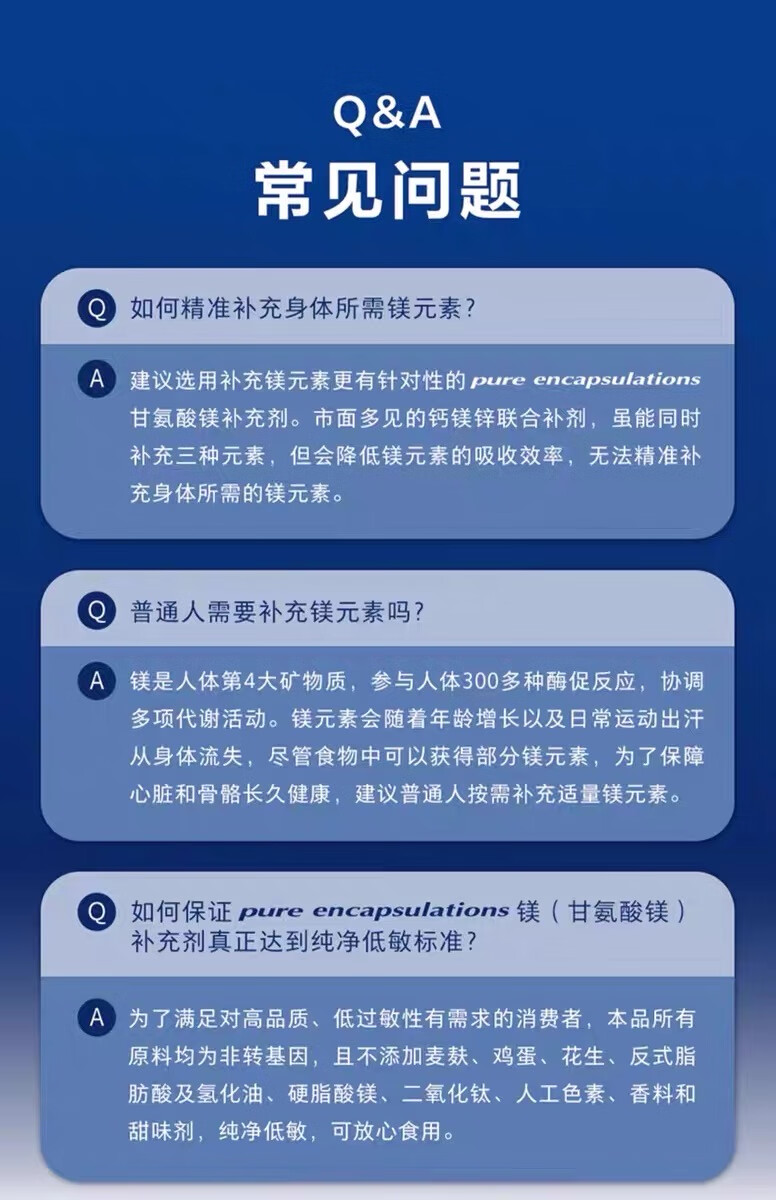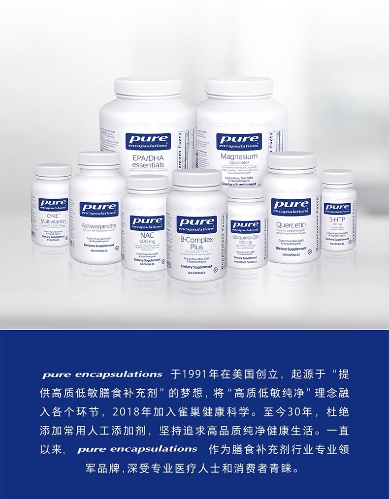 pure encapsulations雀巢倍宜高吸收补镁片强健关节肌肉肌肉成人 180粒/瓶 美国进口