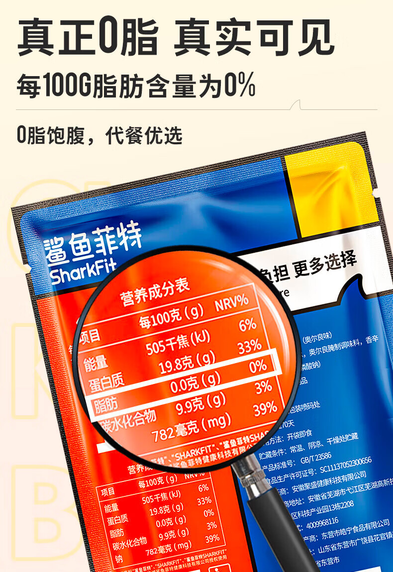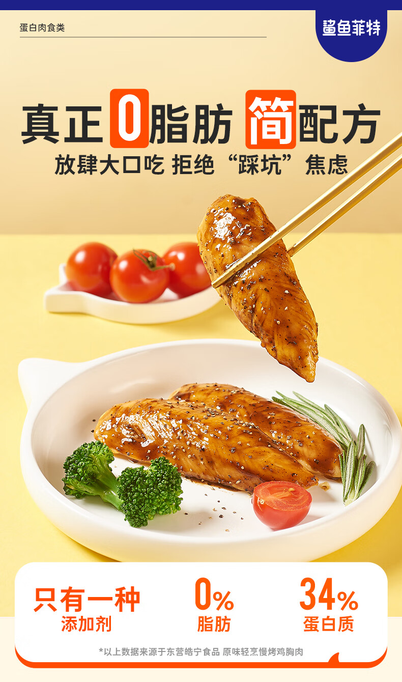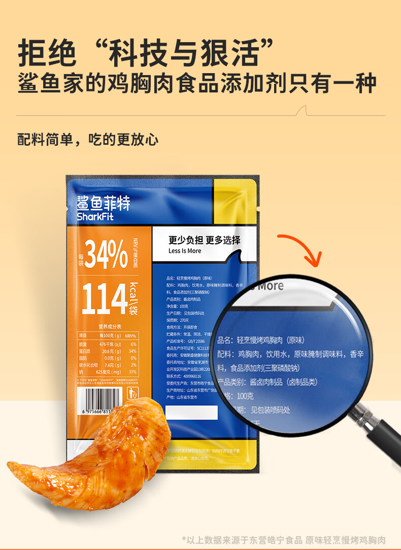 鲨鱼菲特 2000g 鸡胸肉即食 鸡胸肉减脂减肥餐低脂肪休闲零食 共20袋