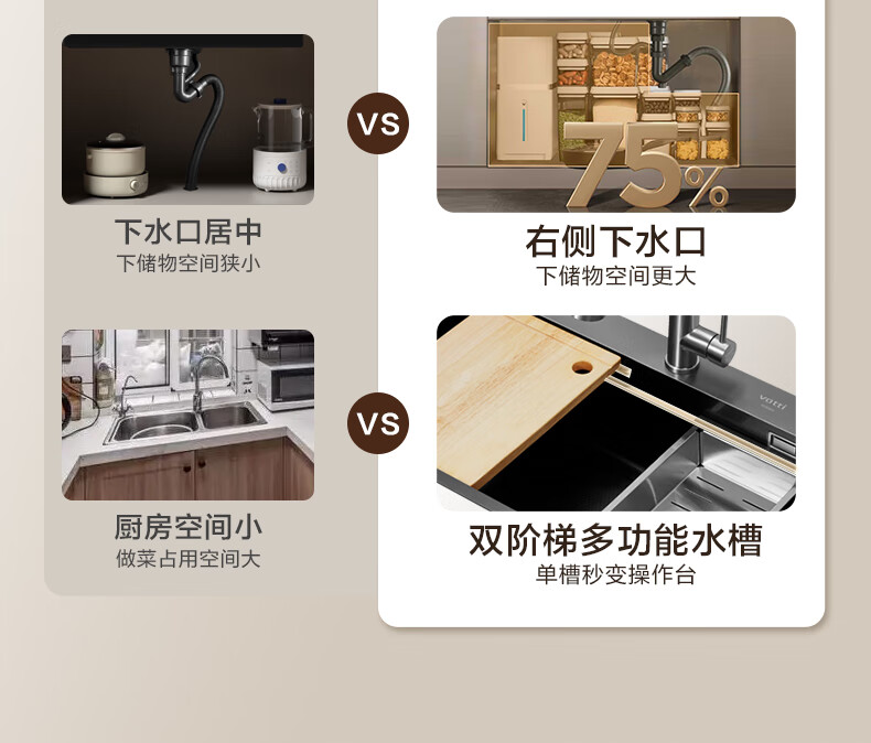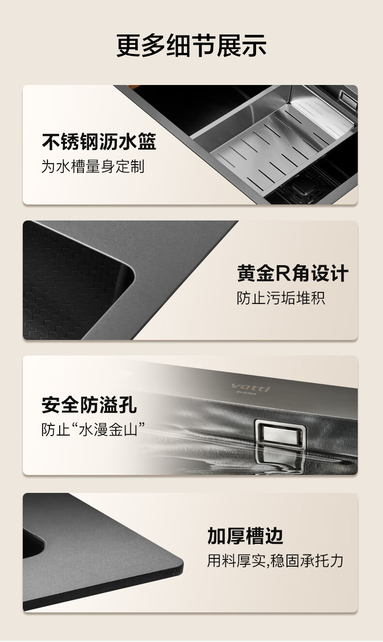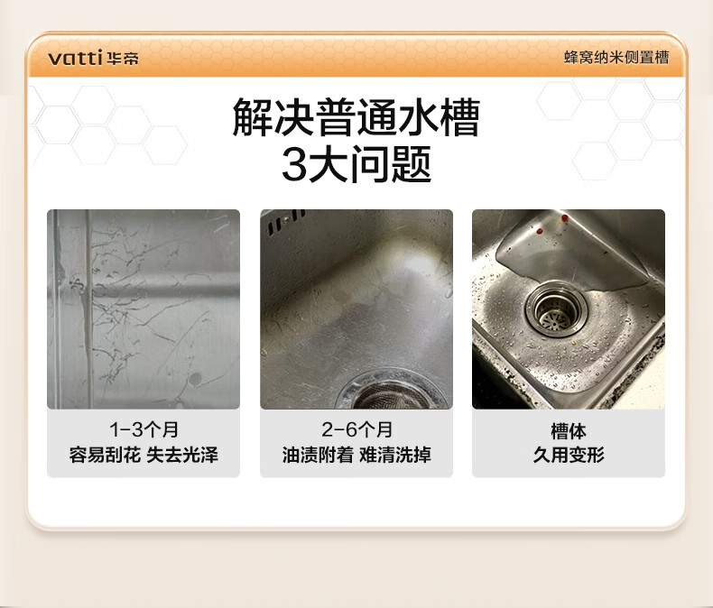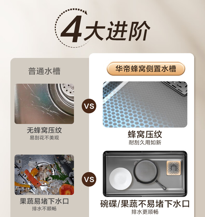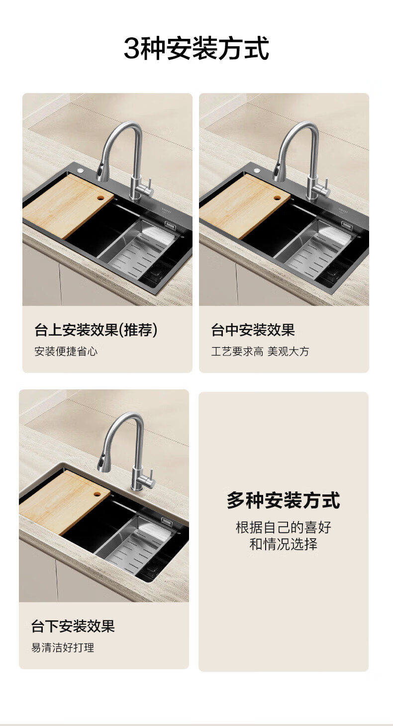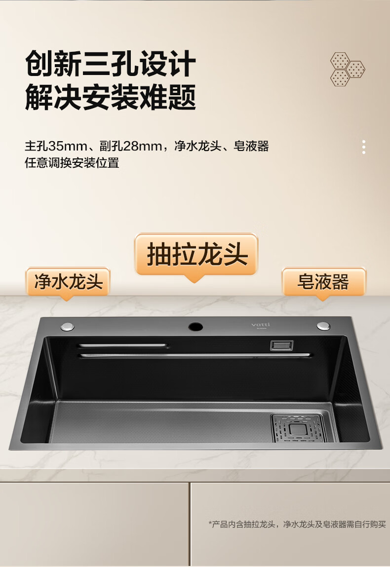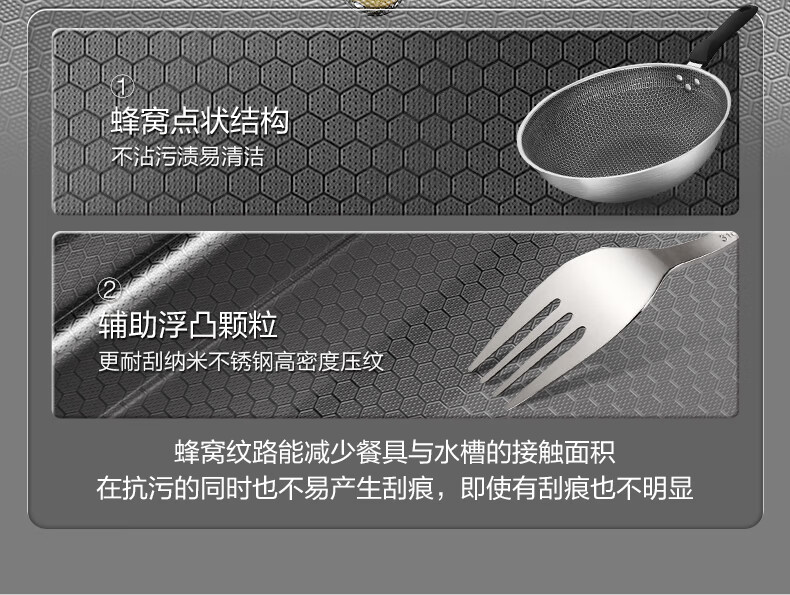 华帝(VATTI)厨房水槽大单槽洗菜盆一体盆304不锈钢蜂窝纳米多功能洗碗洗菜池 枪灰抽拉龙头丨蜂窝纳米槽 68CM*45CM