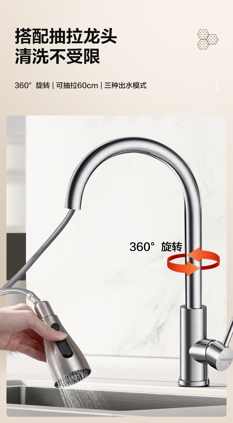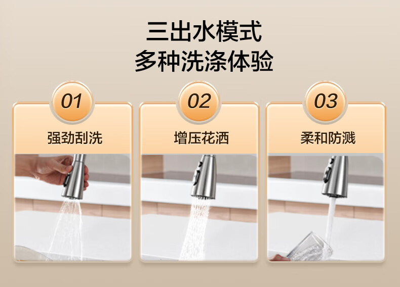 悍高(HIGOLD)厨房龙头304不锈钢多功能雨幕抽拉龙头水槽冷热龙头 多功能雨幕抽拉龙头-拉丝