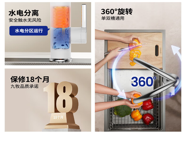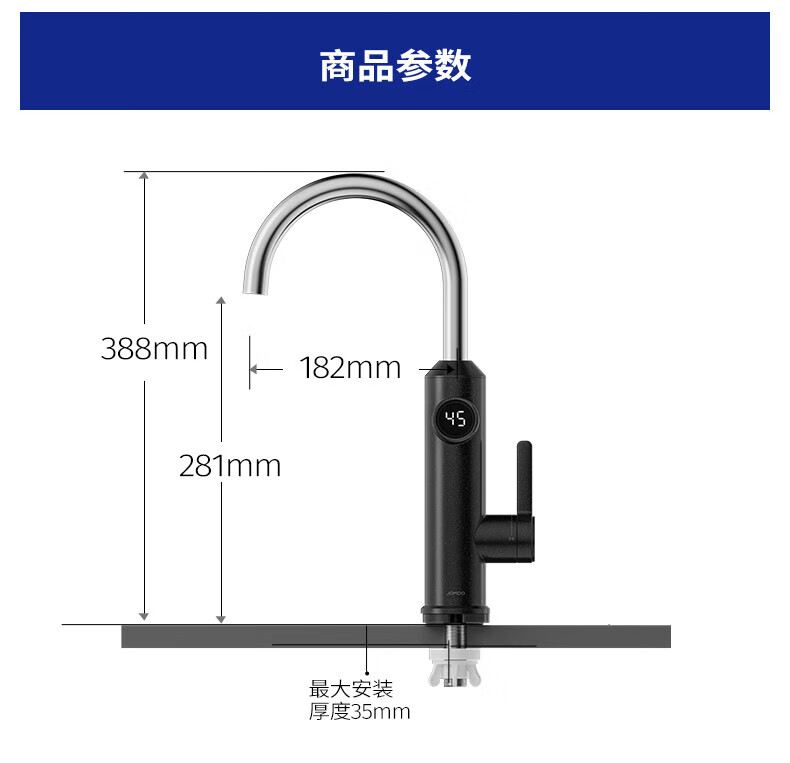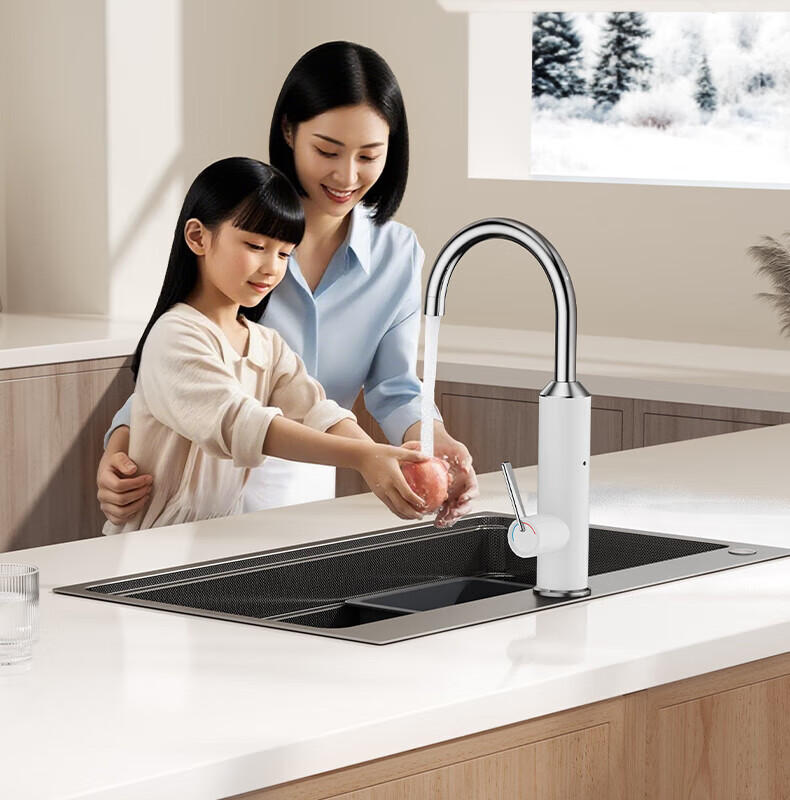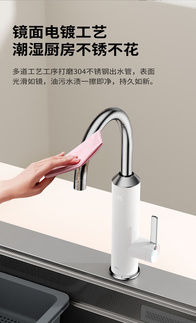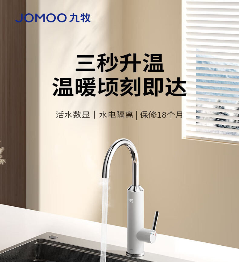 九牧(JOMOO)电热水龙头冷热即热式快速加热洗菜盆厨房水龙头 即热数显厨房龙头-33236雅白