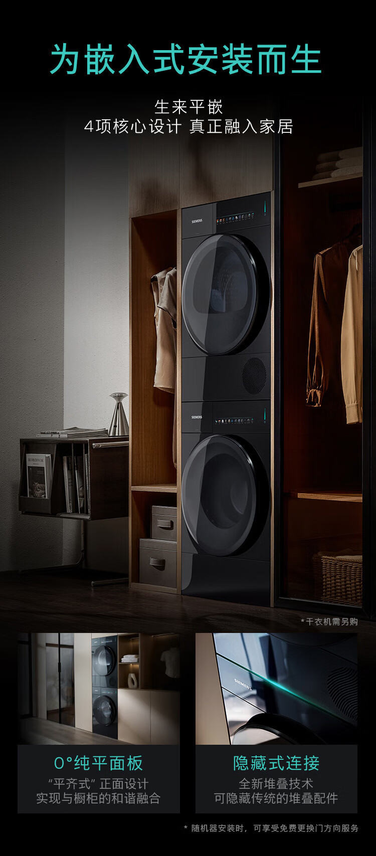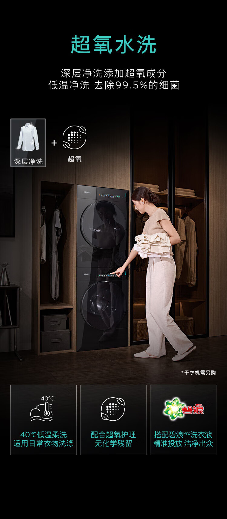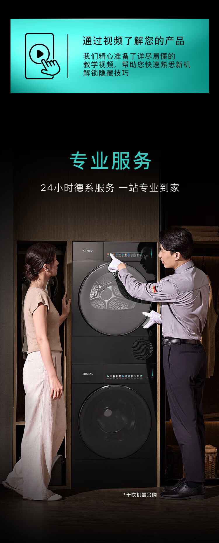 西门子(SIEMENS)包豪斯新品10公斤滚筒变频洗烘套装 纯平嵌入 超氧空气洗 蒸汽除皱 智能投放 热泵烘干 除菌除螨 家电补贴20% 【套装】WG54M7D20W+WQ55M7U20W