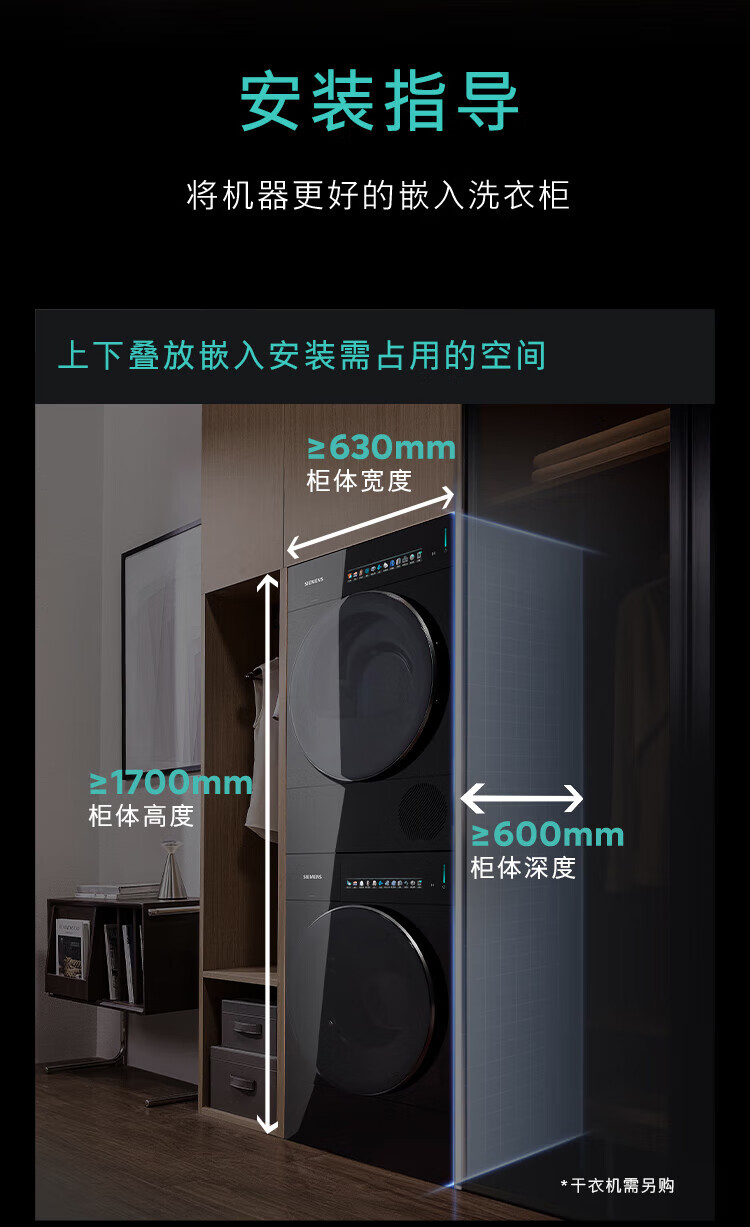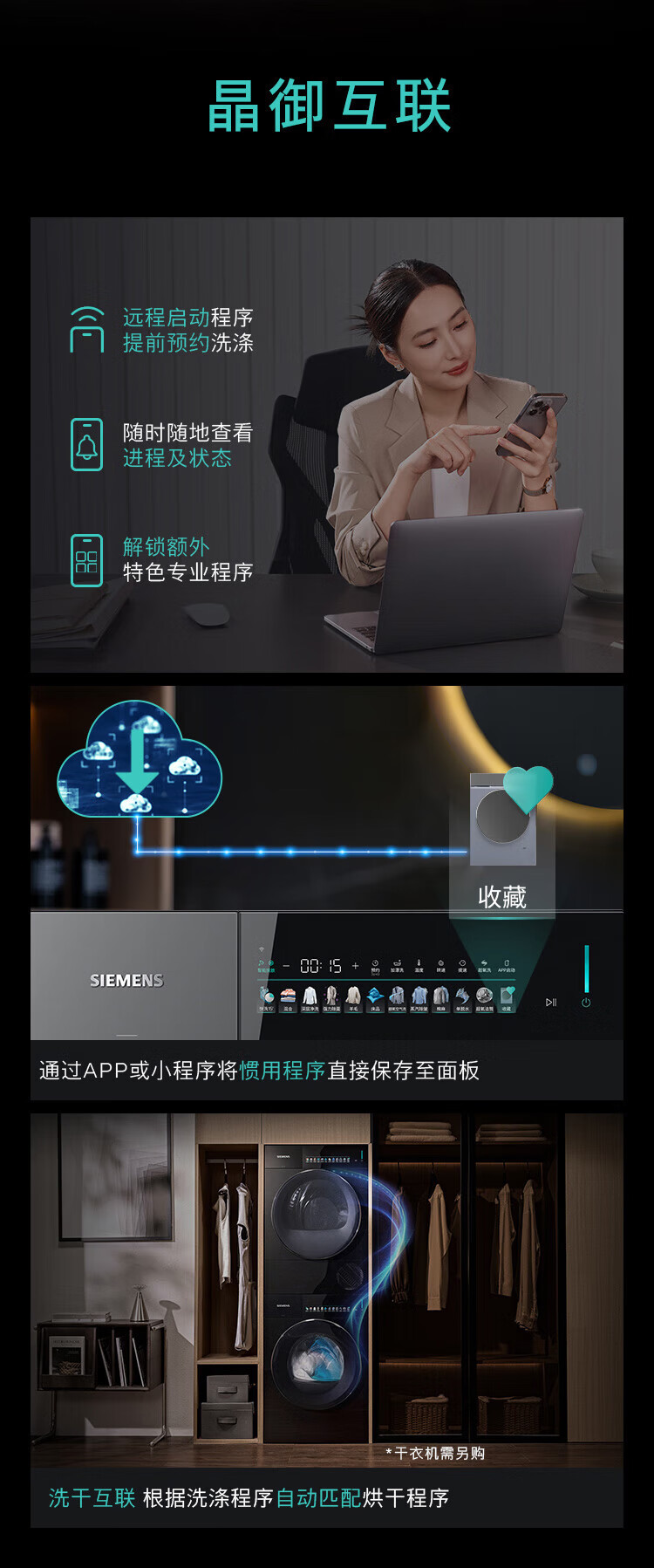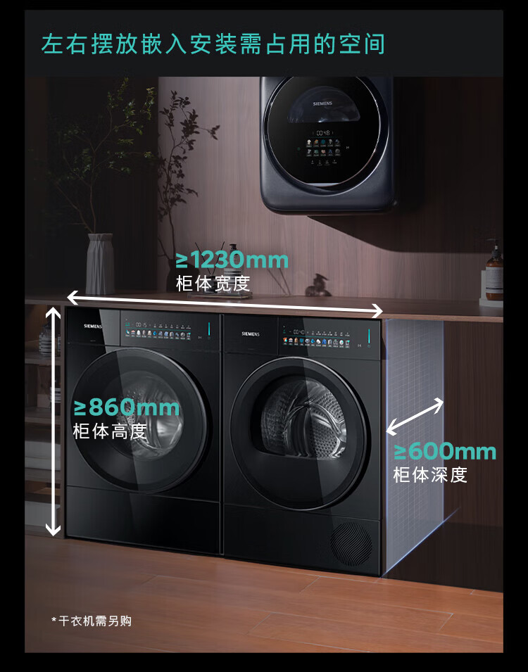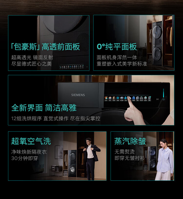西门子(SIEMENS)包豪斯新品10公斤滚筒变频洗烘套装 纯平嵌入 超氧空气洗 蒸汽除皱 智能投放 热泵烘干 除菌除螨 家电补贴20% 【套装】WG54M7D20W+WQ55M7U20W