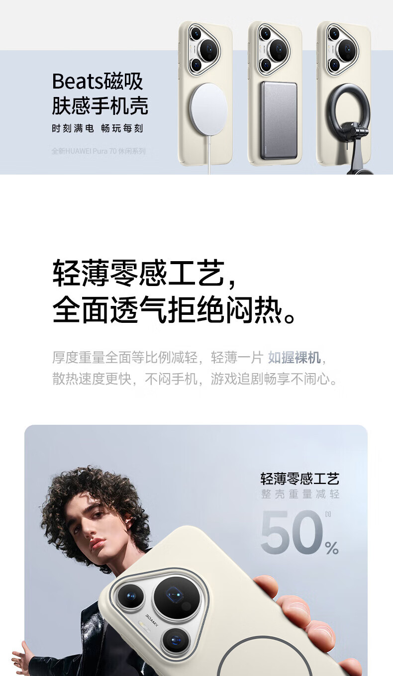 KEKLLE适用华为Pura70手机壳 华为Pura70保护套磁吸无线充电磨砂防摔保护套 峰岩色