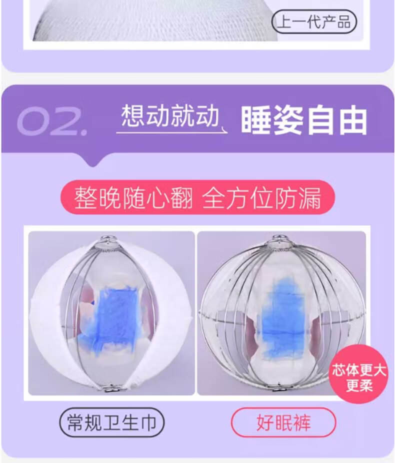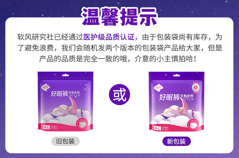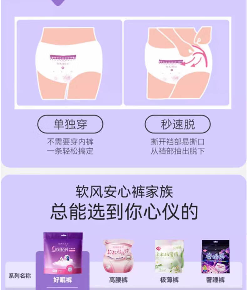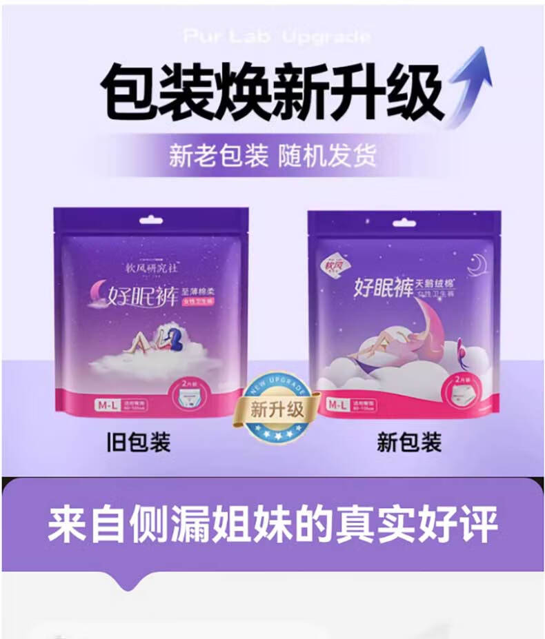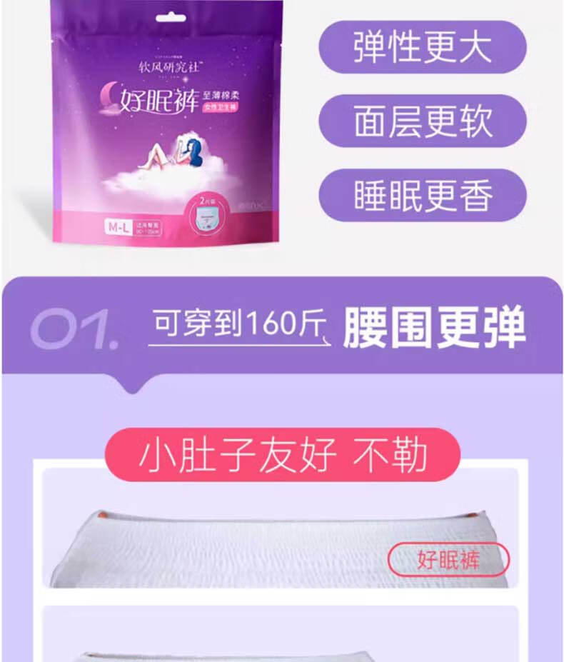 软风研究社一次性卫生巾安心裤夜用裤型卫生巾经期用防漏安睡裤女1包2条装 M-L码 6片 80-110斤