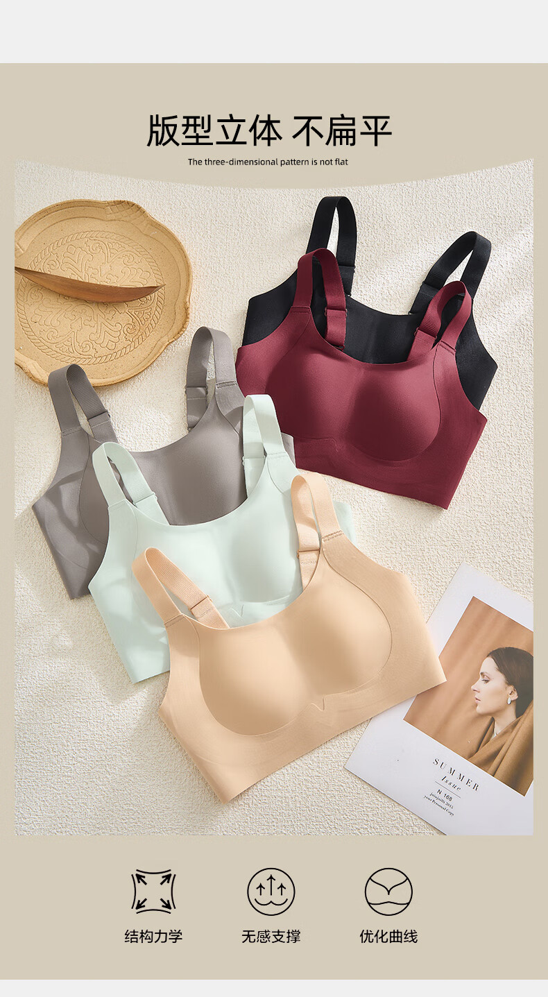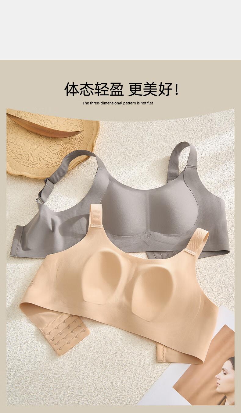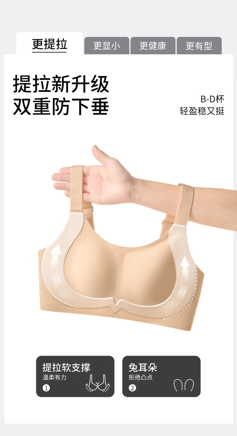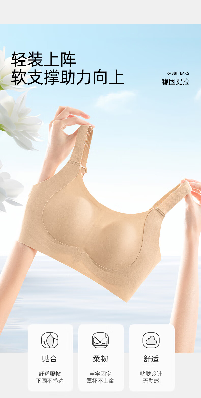 华婷露(Huatinglu) 舒适无钢圈文胸大码内衣女薄款无痕大胸显小调整型胸罩防下垂 肤色 M (适合34/75BCD)
