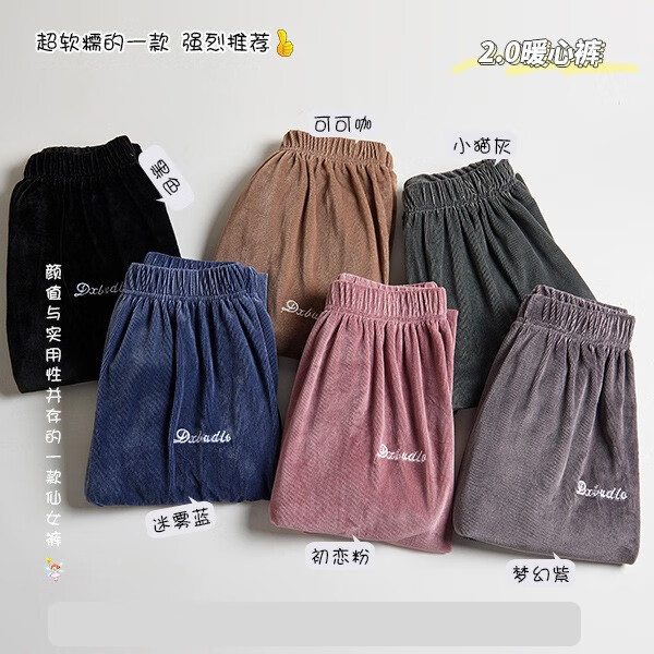 虎迹2025年《杭州直播款》猞猁绒暖暖裤2.0家-居-裤男女情侣 粉+黑(2条装) 正常码(建议80到150斤左右)