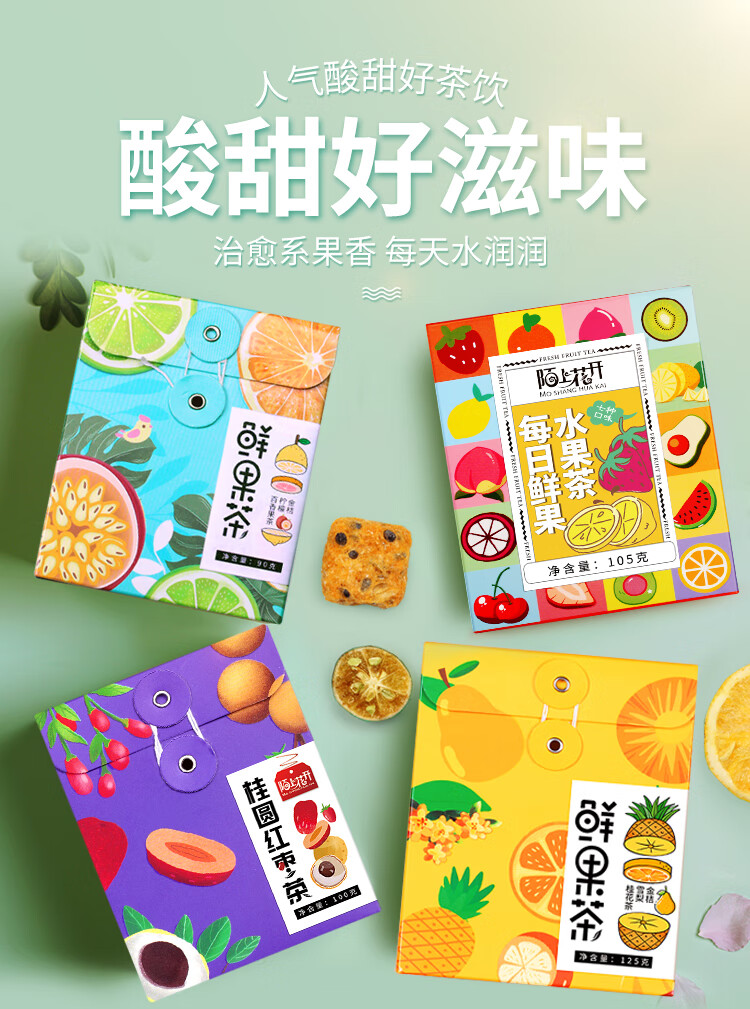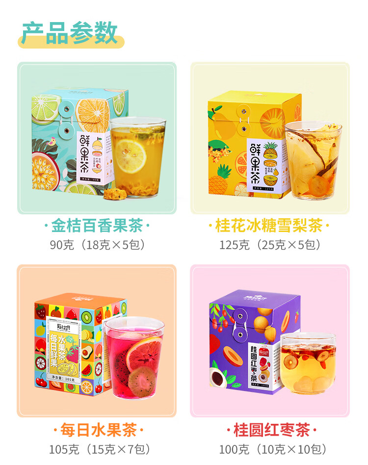 陌上花开 共4盒装 金桔柠檬百香果茶桂花雪梨茶网红水果茶花果茶包组合装