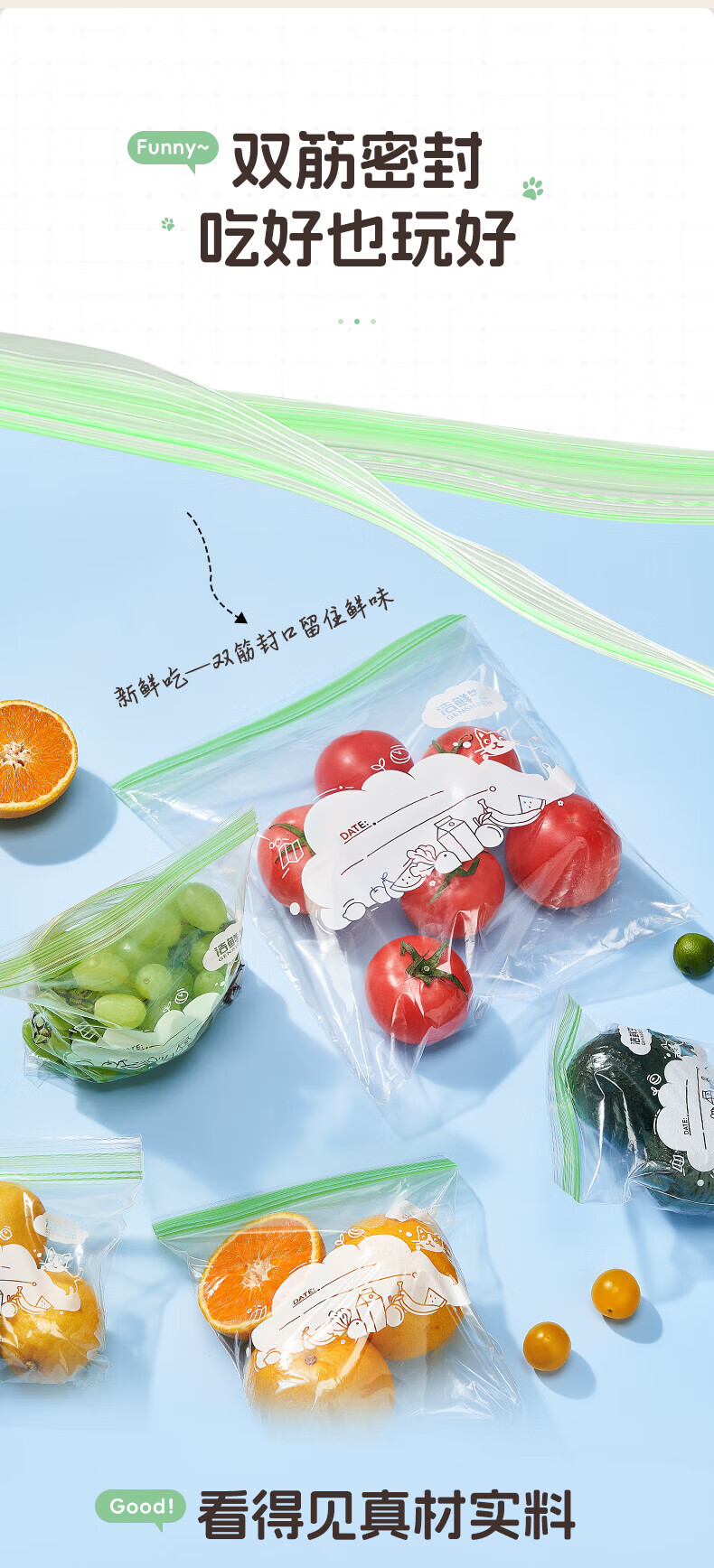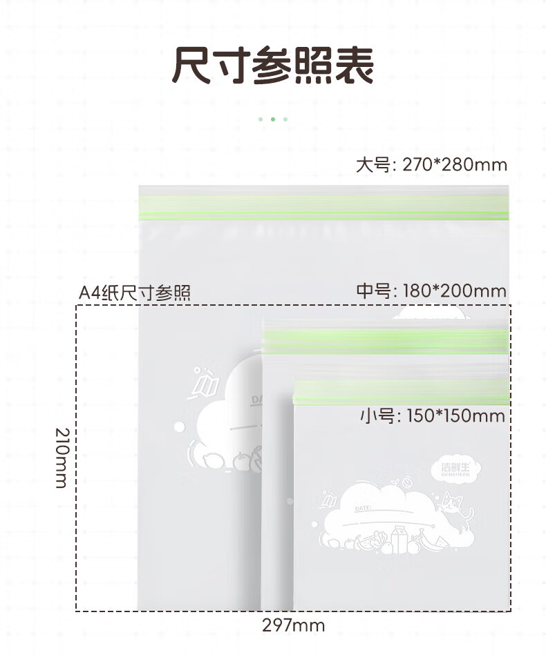 洁鲜生食品袋食品级冰箱收纳双筋分装袋储物防潮辅食塑料袋分装自封袋子 3合1组合装35只(小20中10大5)