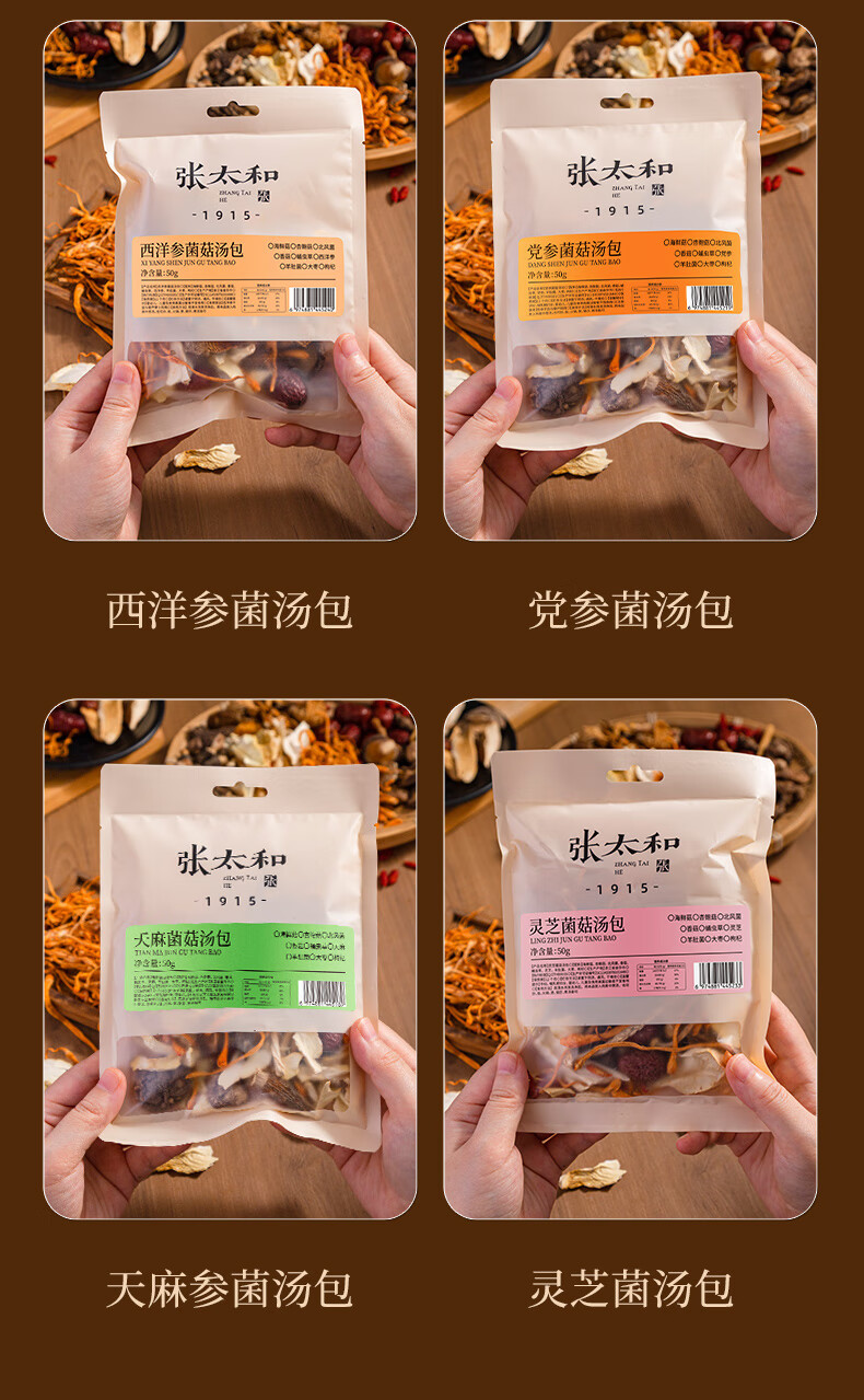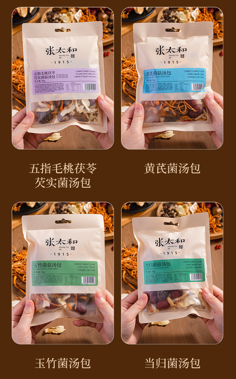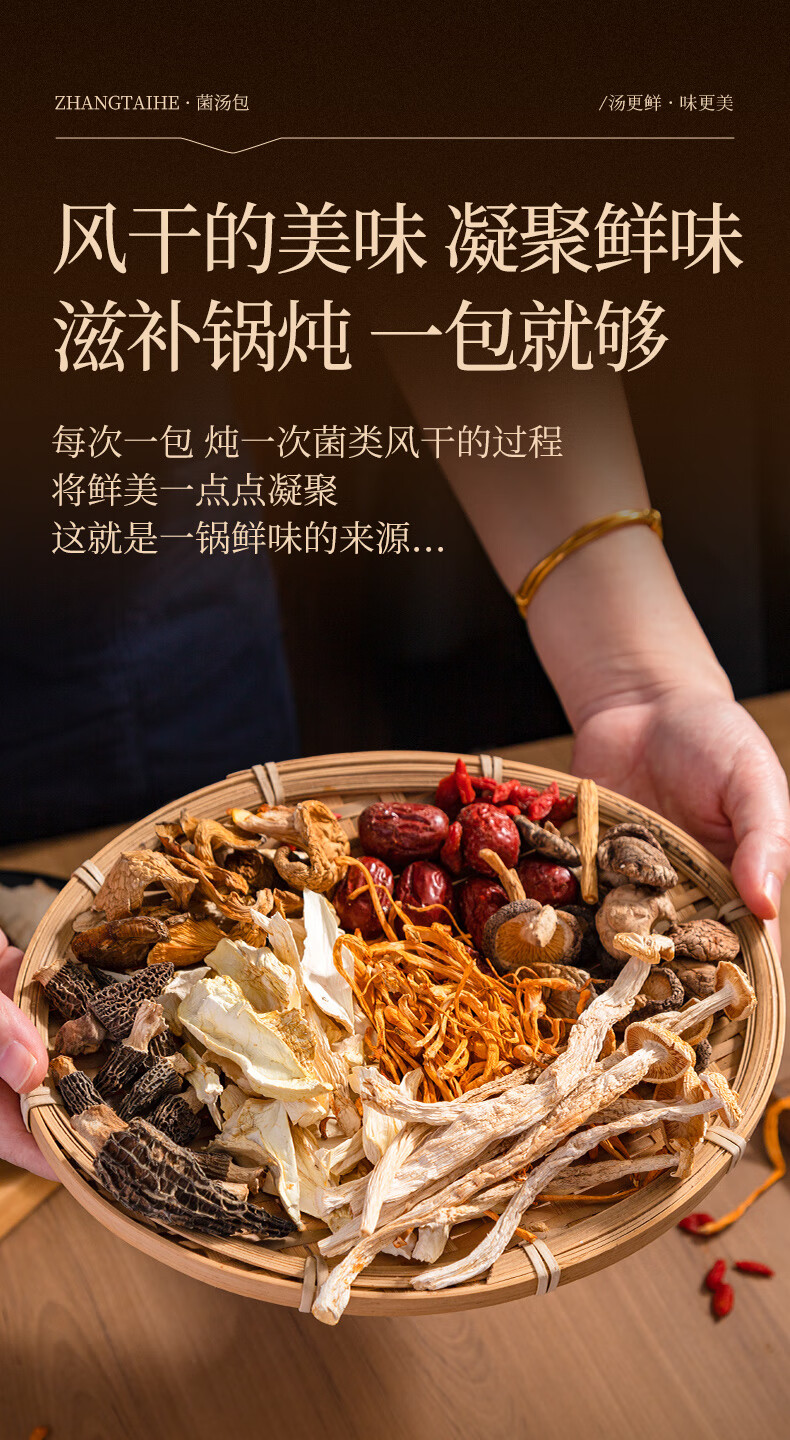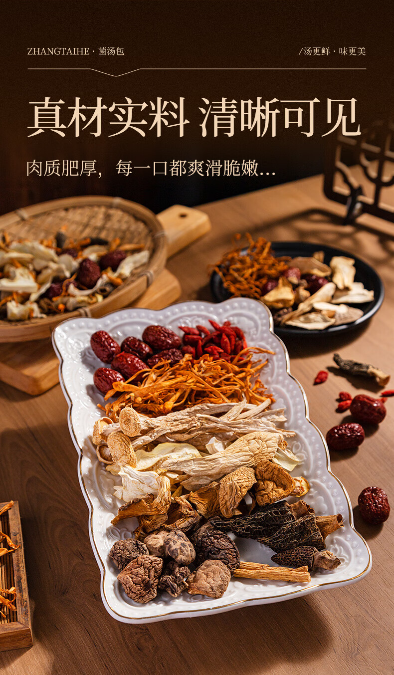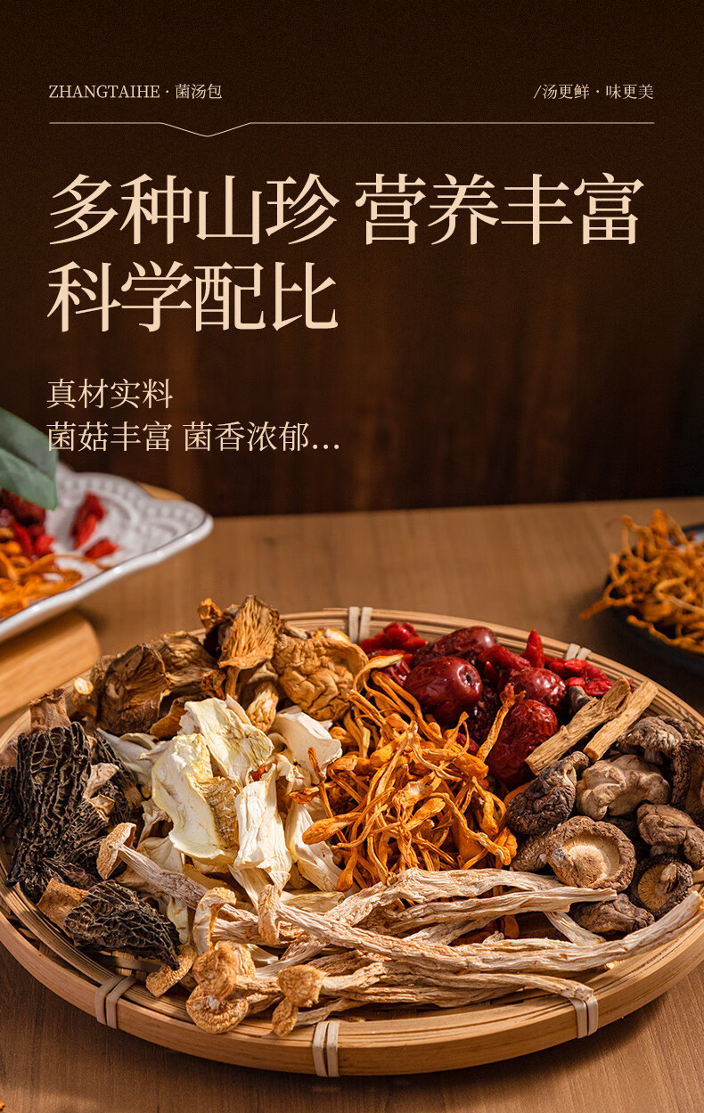 张太和菌菇汤包 羊肚菌山珍滋补炖鸡煲汤食材可煲汤炖汤火锅食材 【天麻+玉竹+党参+黄芪】菌菇汤包组合