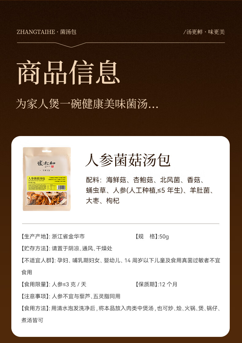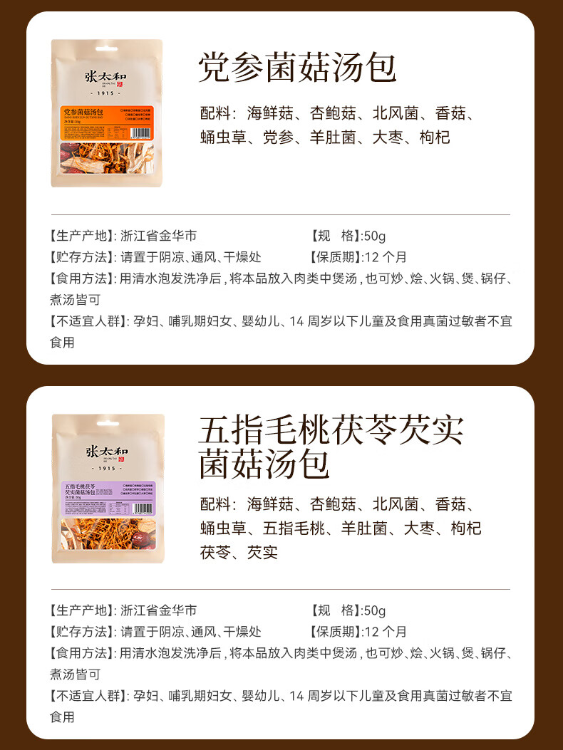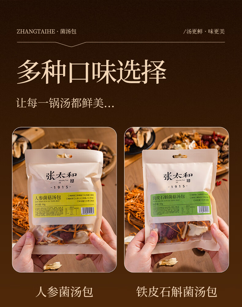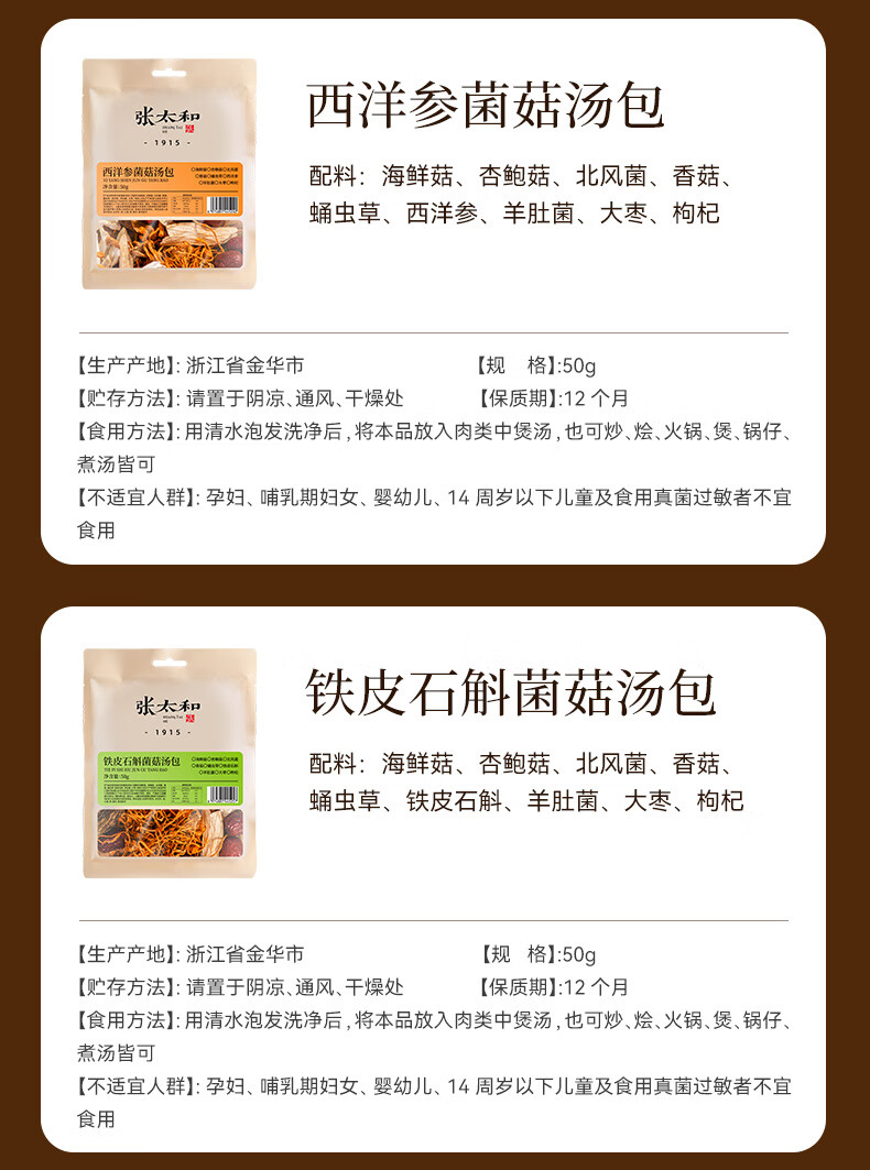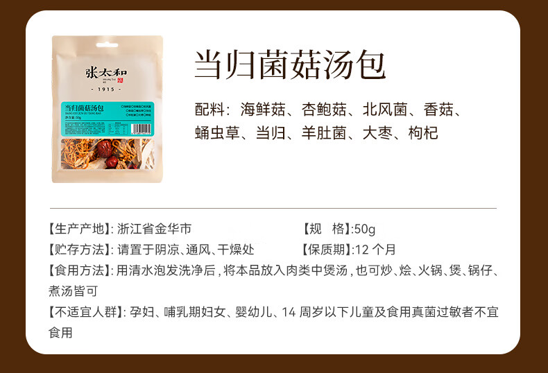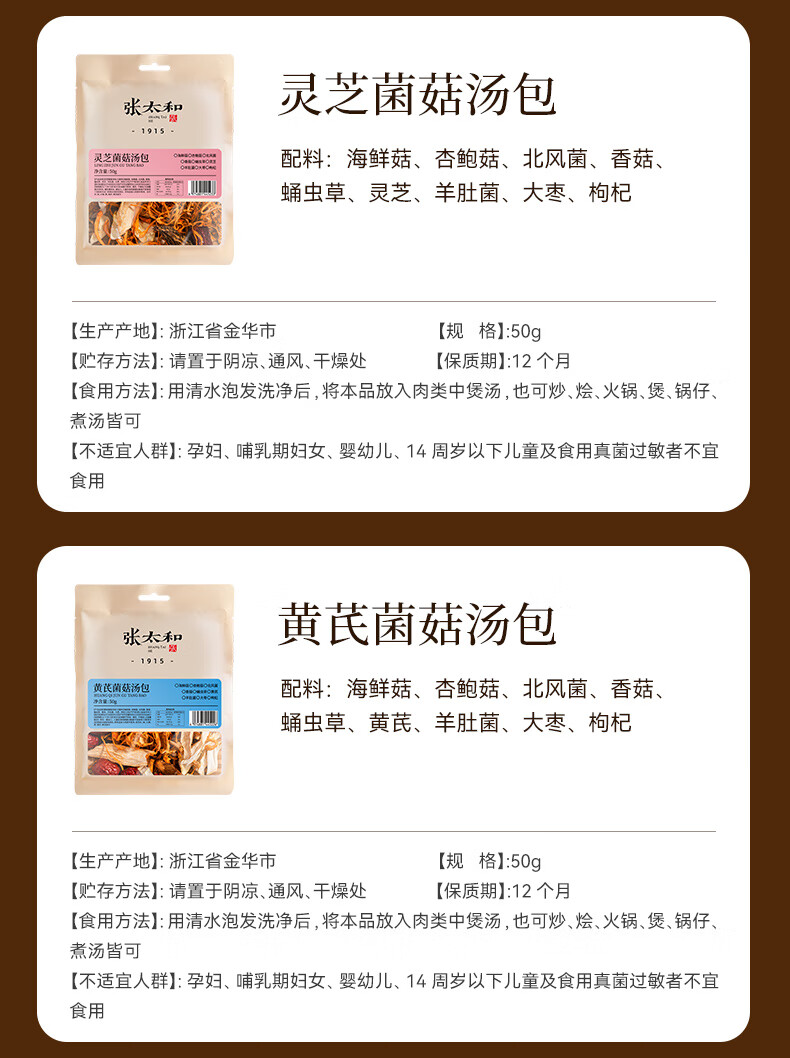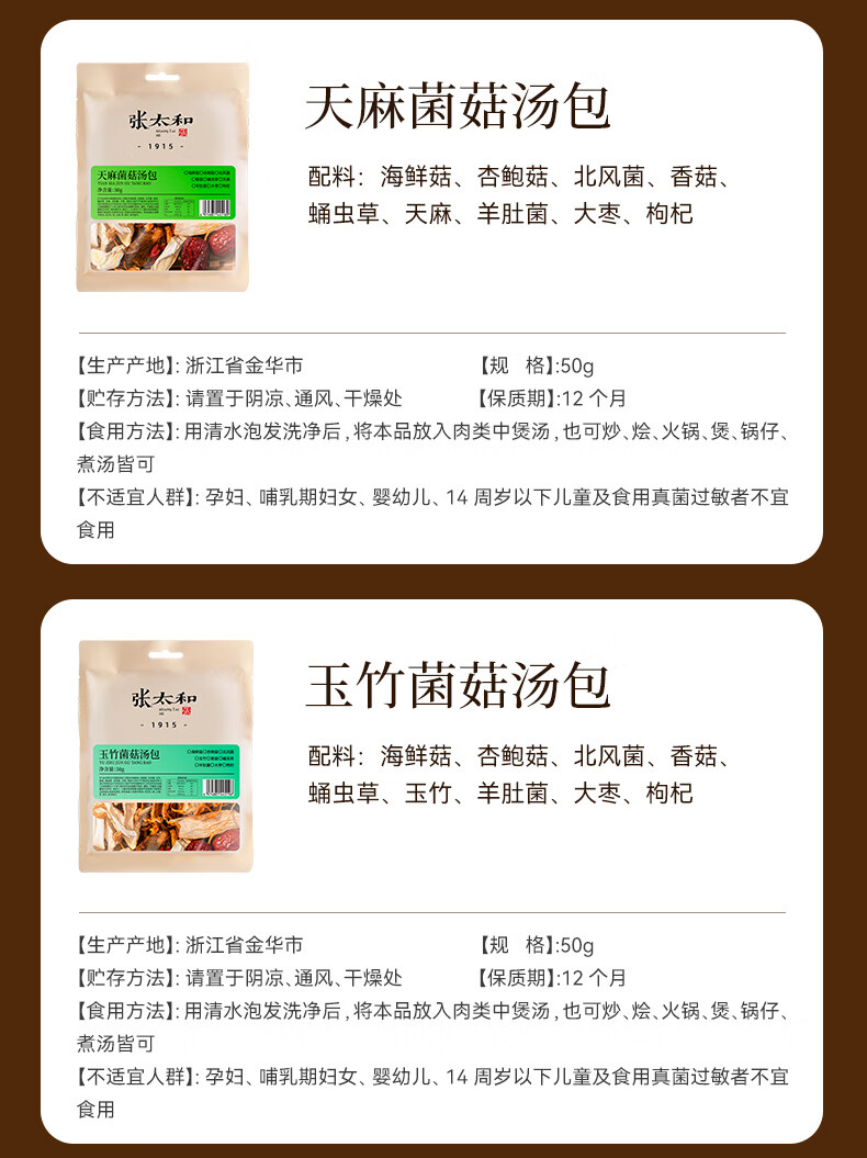 张太和菌菇汤包 羊肚菌山珍滋补炖鸡煲汤食材可煲汤炖汤火锅食材 【天麻+玉竹+党参+黄芪】菌菇汤包组合