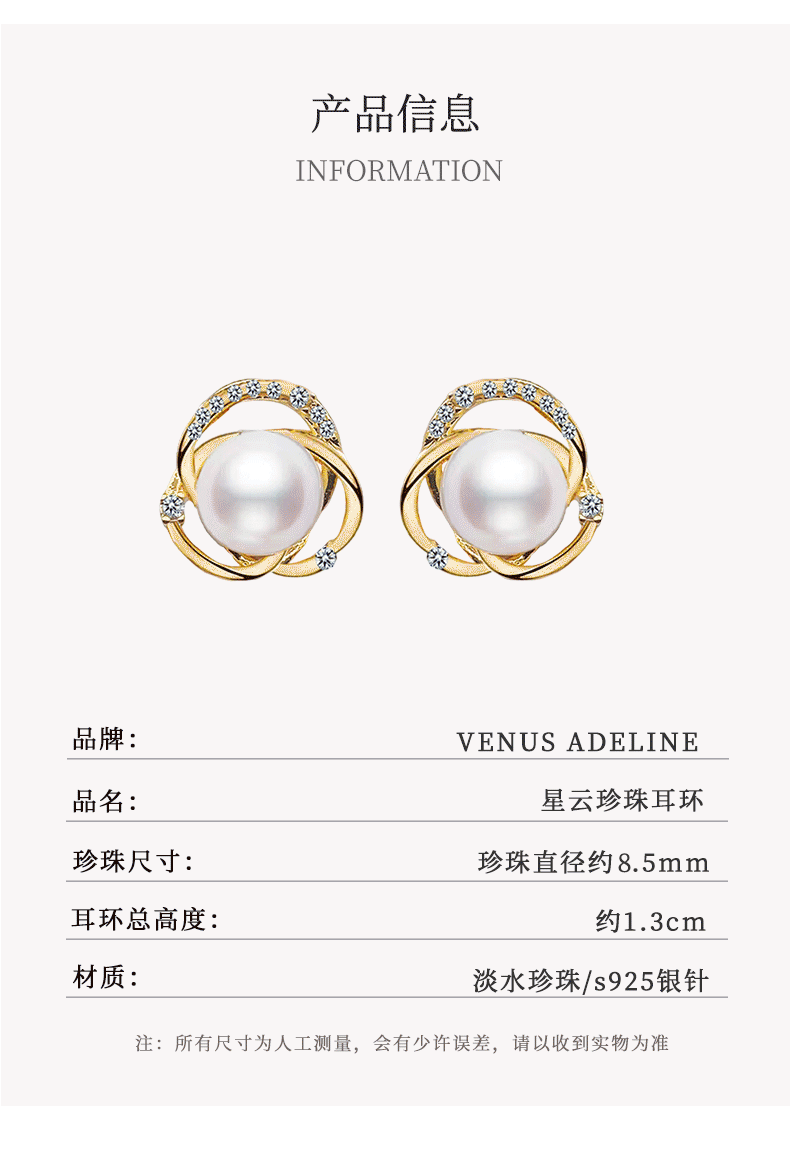 VENUS ADELINE淡水珍珠耳钉女银针新款耳环强光耳饰高级感送女友妈妈七夕礼物 白色大颗粒珍珠送老婆妈妈闺蜜 银针首饰长辈实用浪漫纪念日礼盒