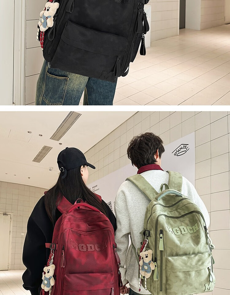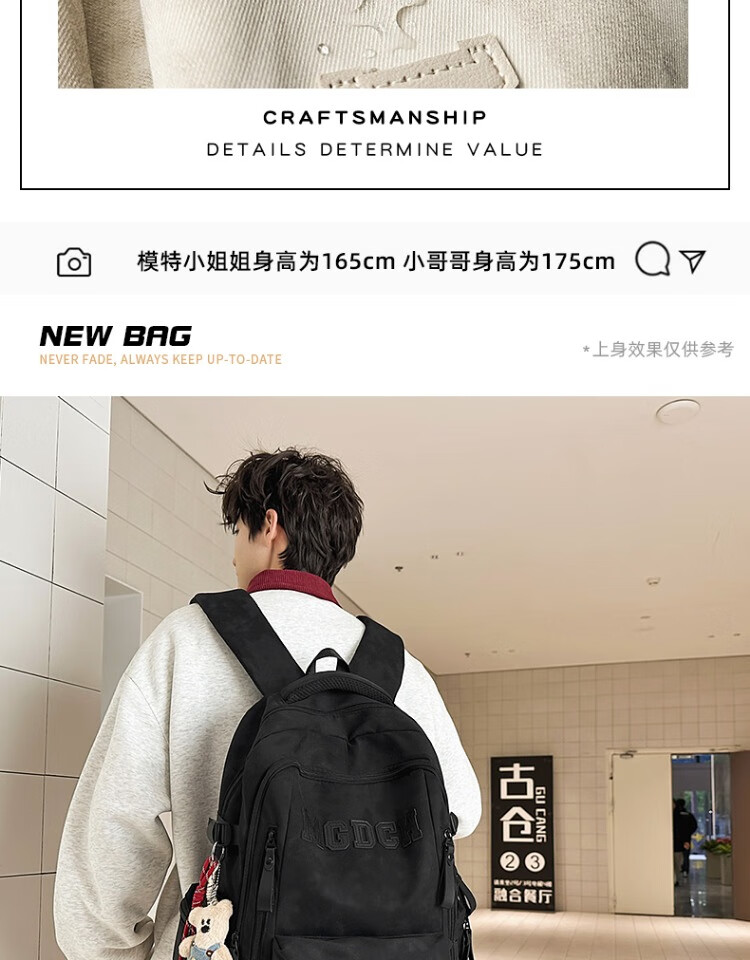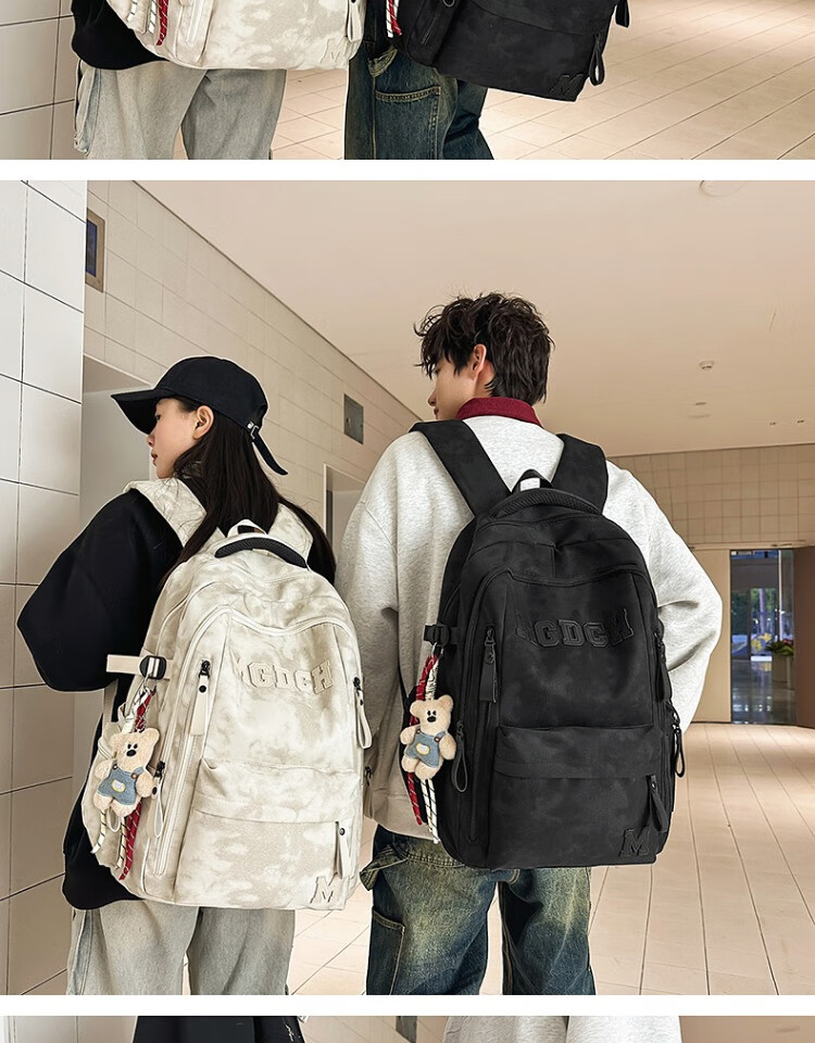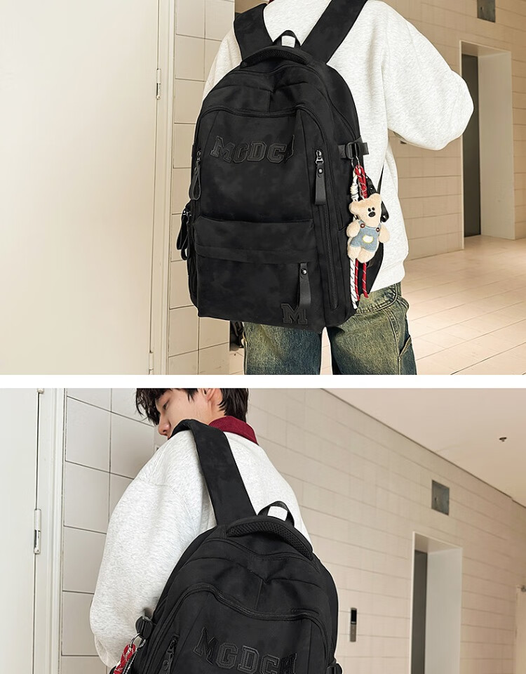CLBD书包女初中生韩版大容量高中学生双肩包男新款潮流减负背包电脑包 黑色