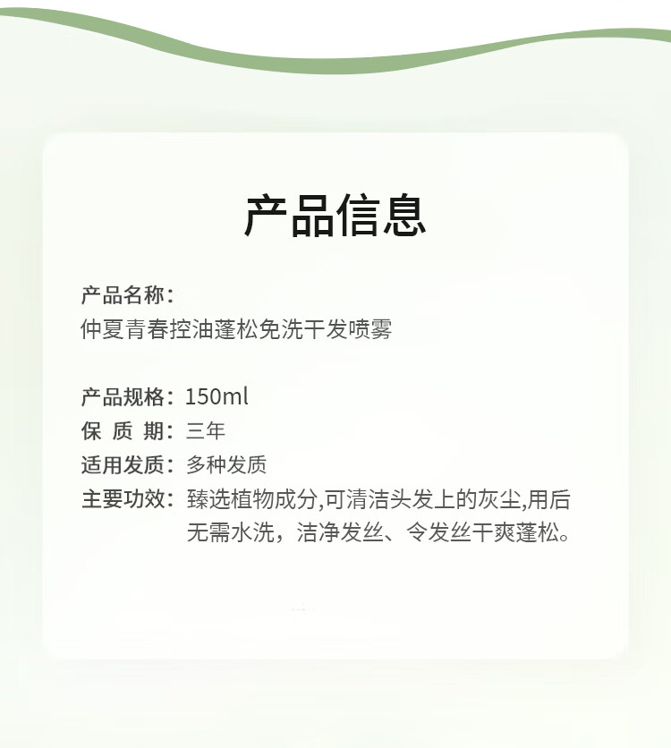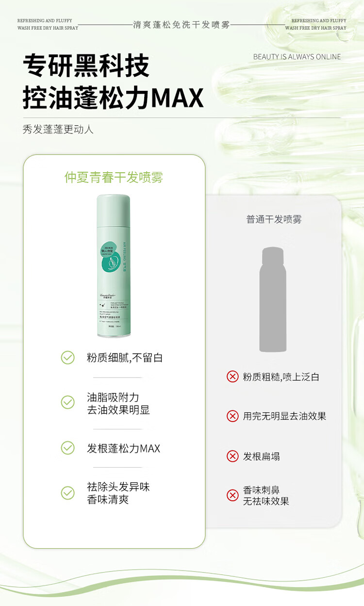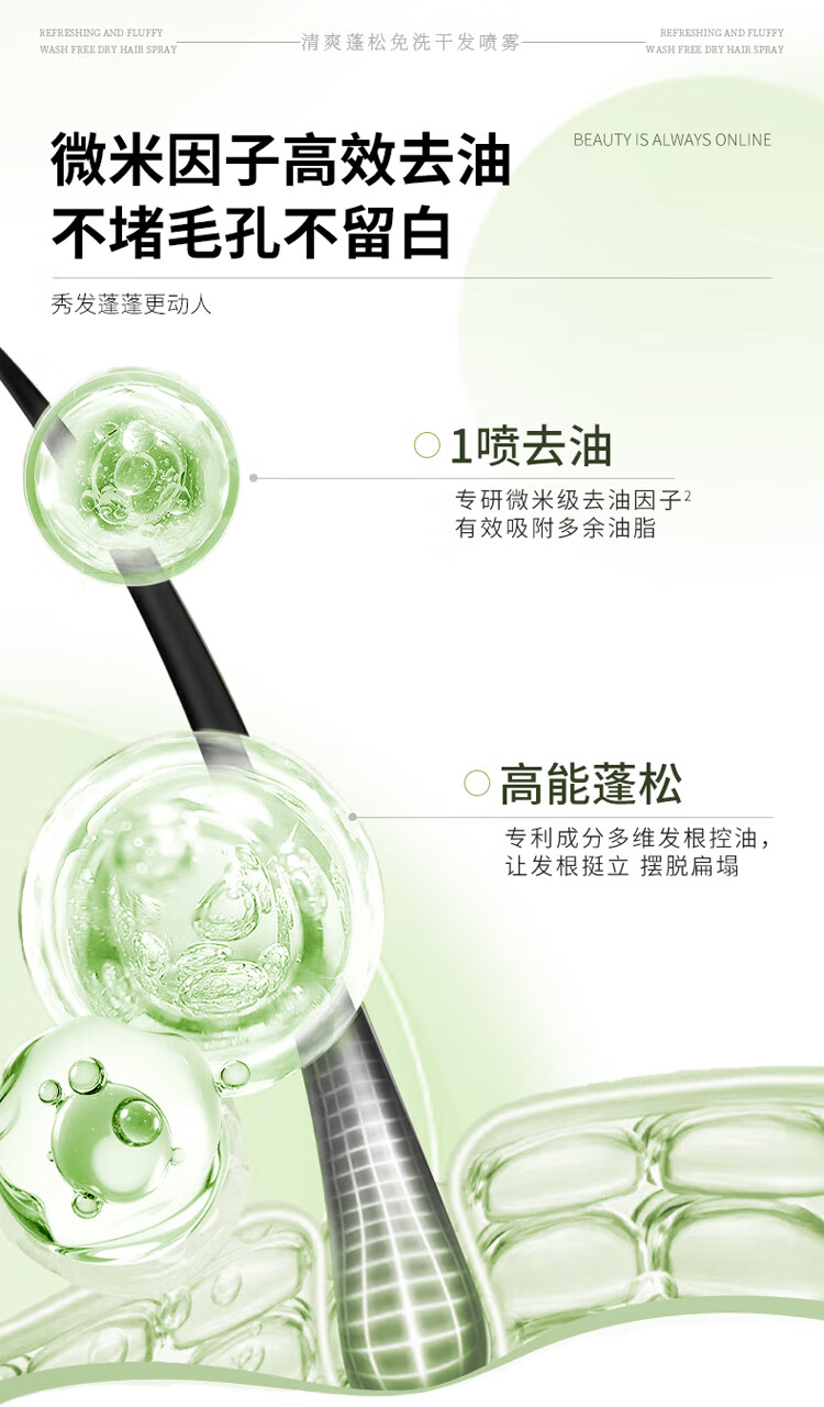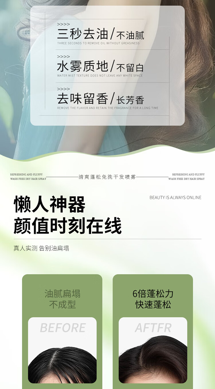 宝薇泉干发喷雾蓬松头发去油头清爽蓬蓬粉持久控油高颅顶免洗蓬松喷雾 干发蓬松喷雾150ml×2瓶
