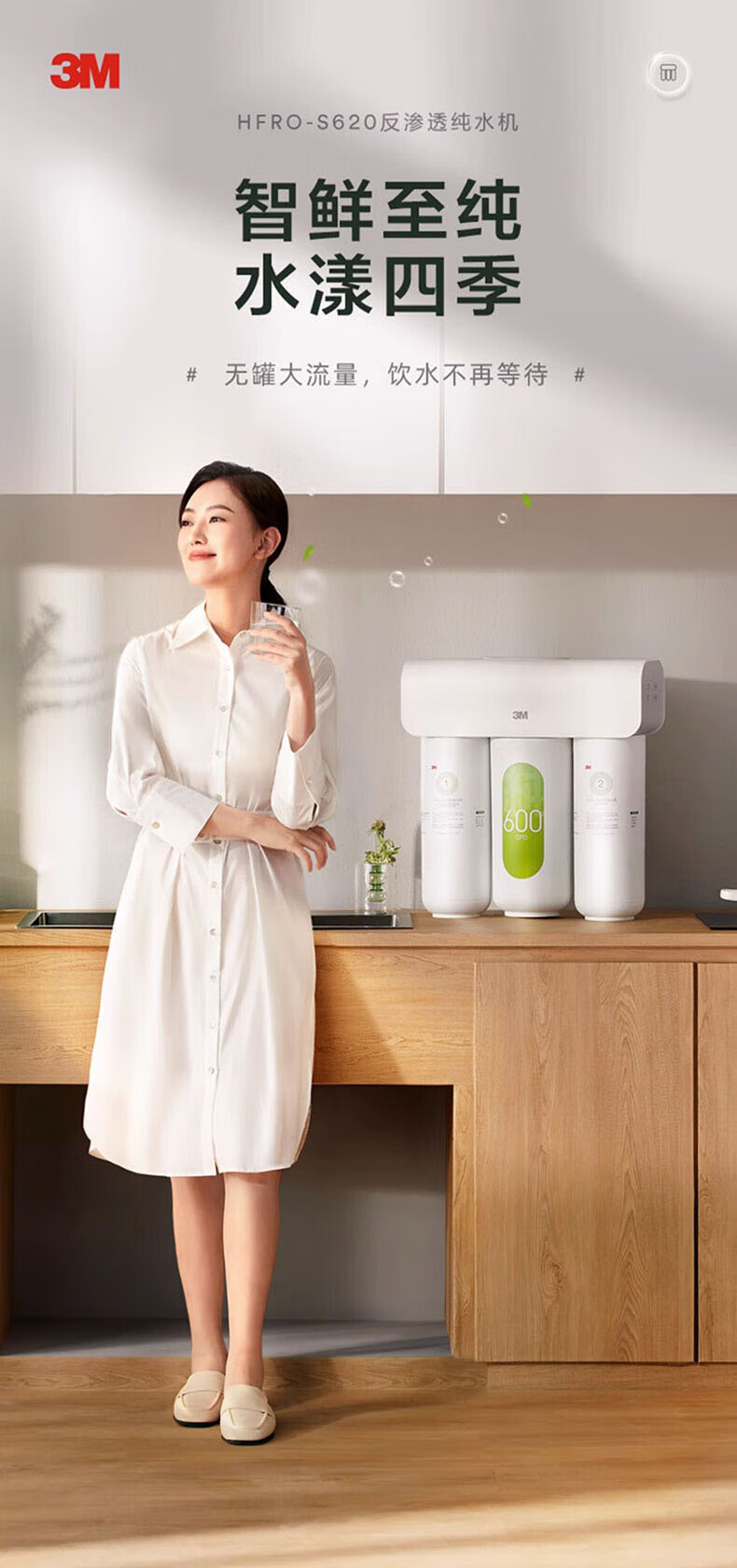 3M套装净水器管线机家用直饮RO反渗透厨下S725/S620大通量3年长效RO膜家用纯水机净饮机 HFRO-S725机器+新款管线机
