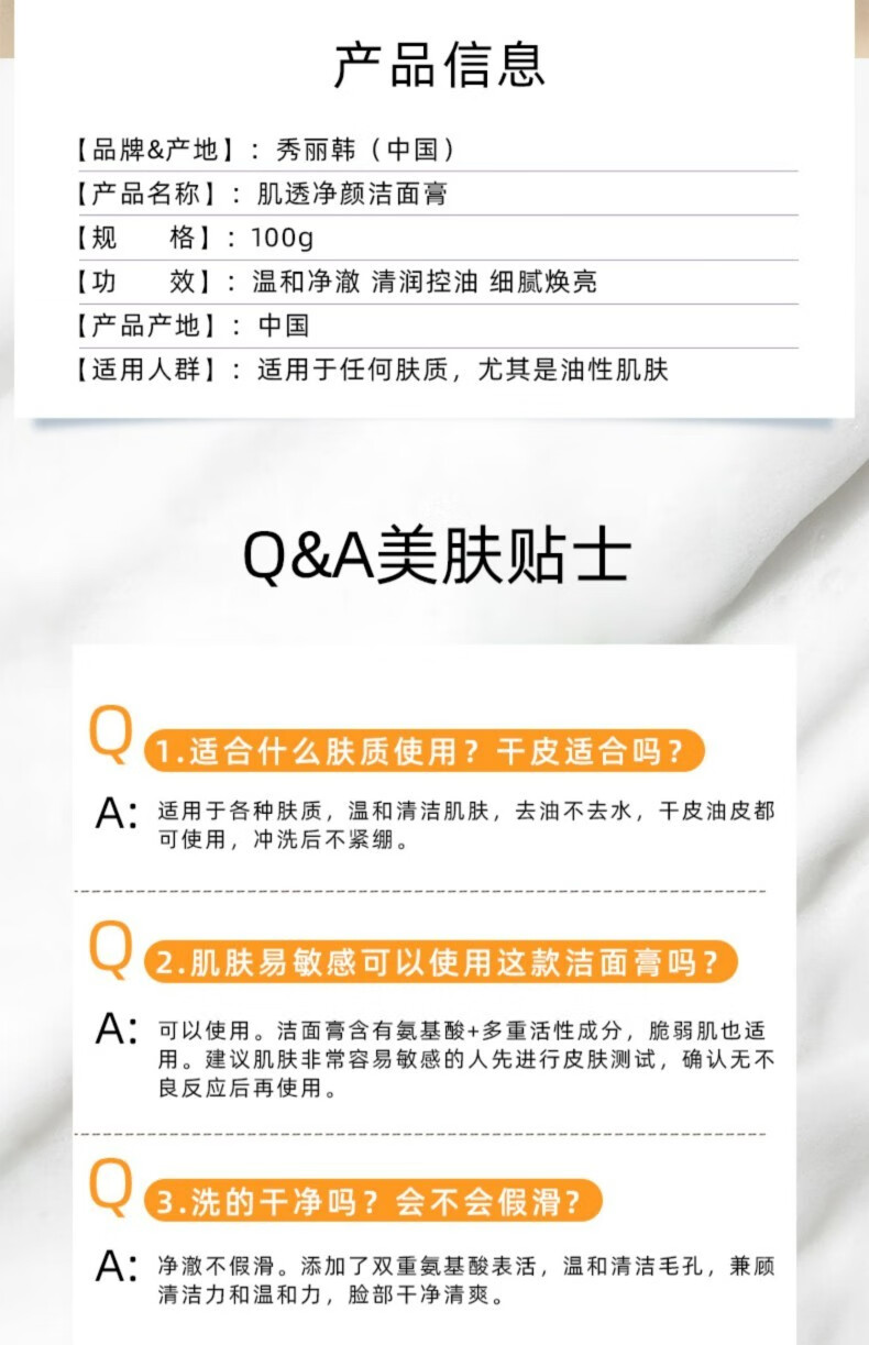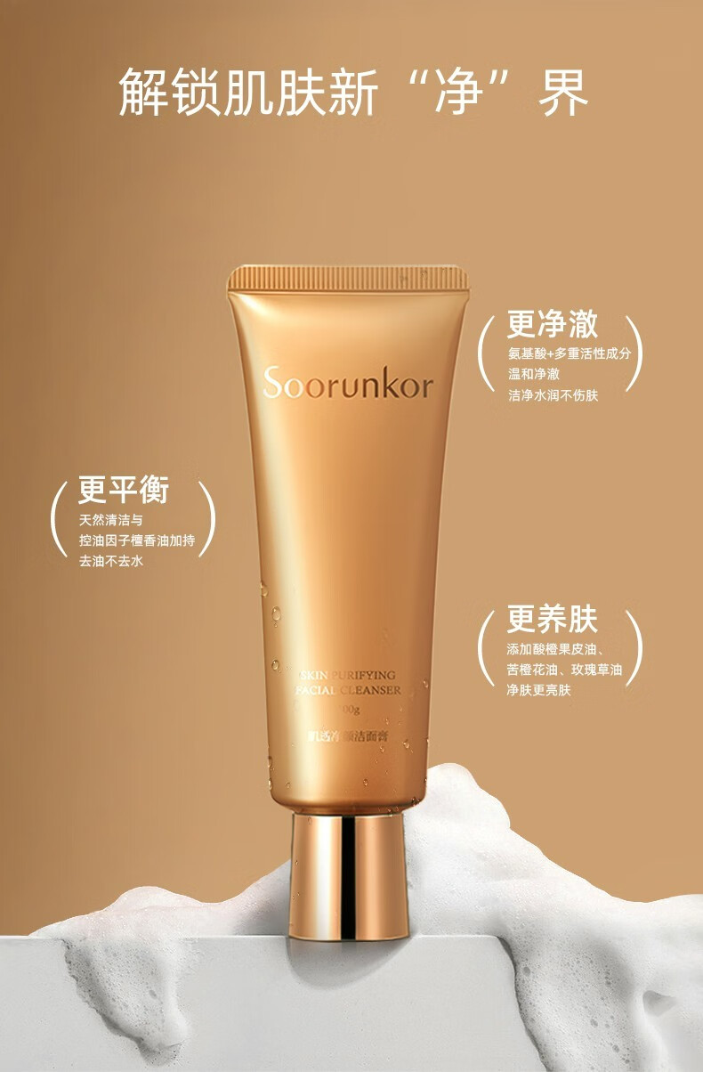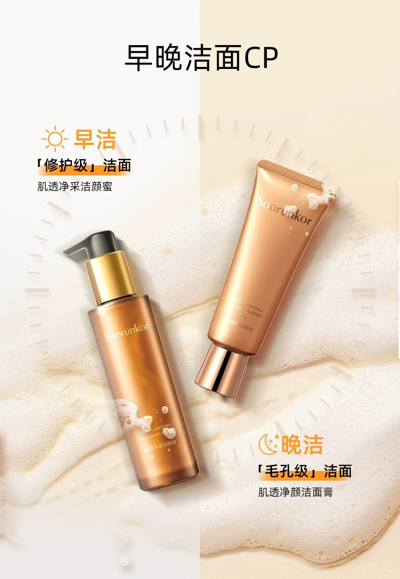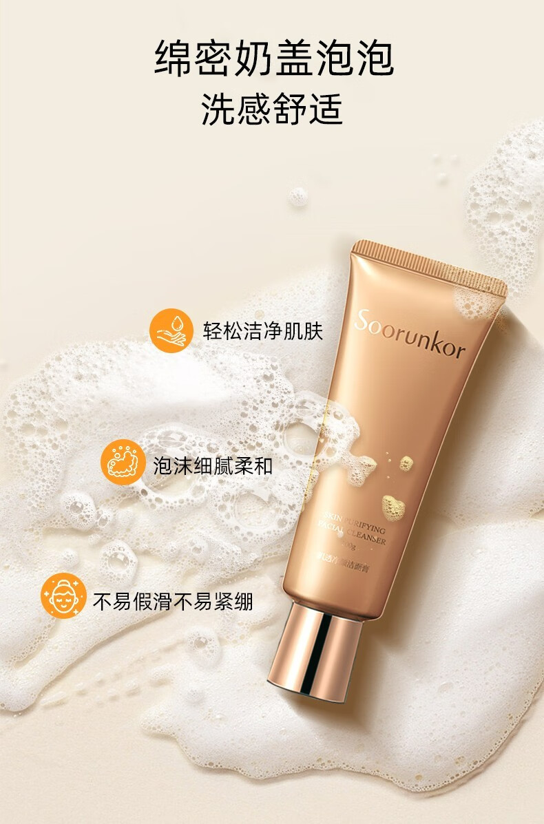 秀丽韩Soorunkor桑黄肌透净颜洗面奶深层洁净不紧绷保湿男女通用100ml 肌透净颜洁面膏100g