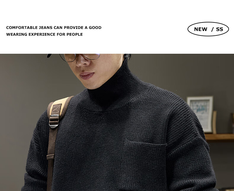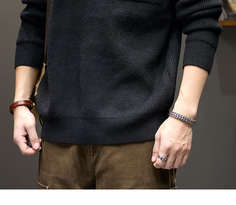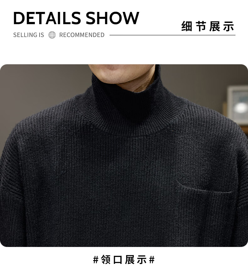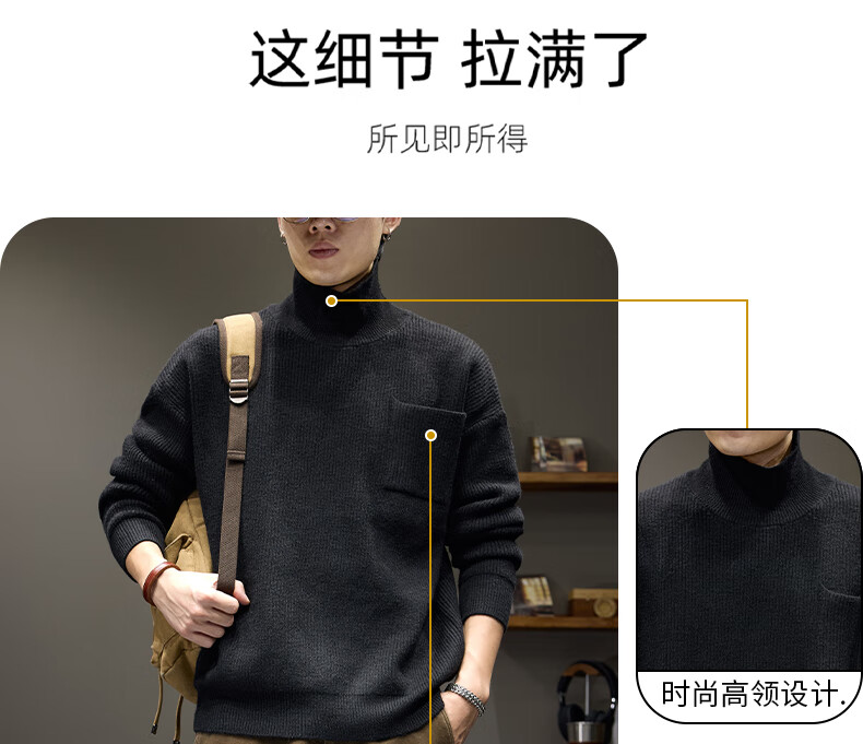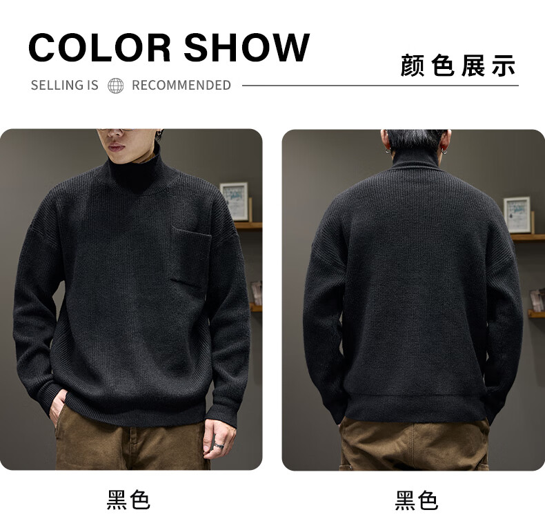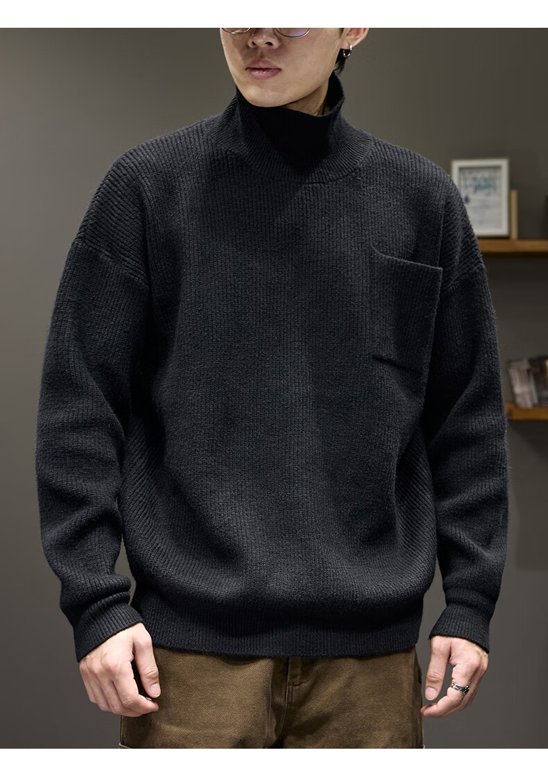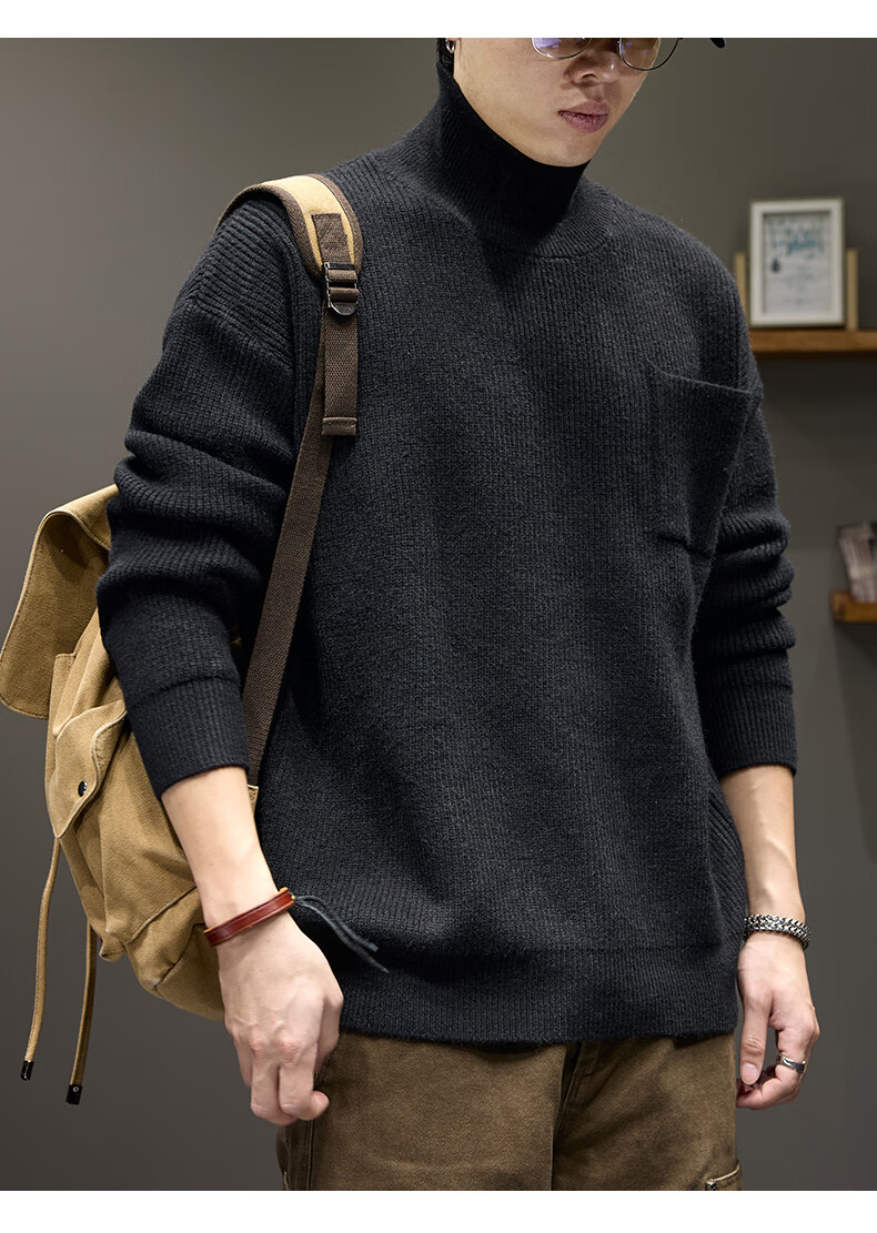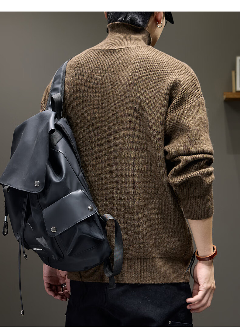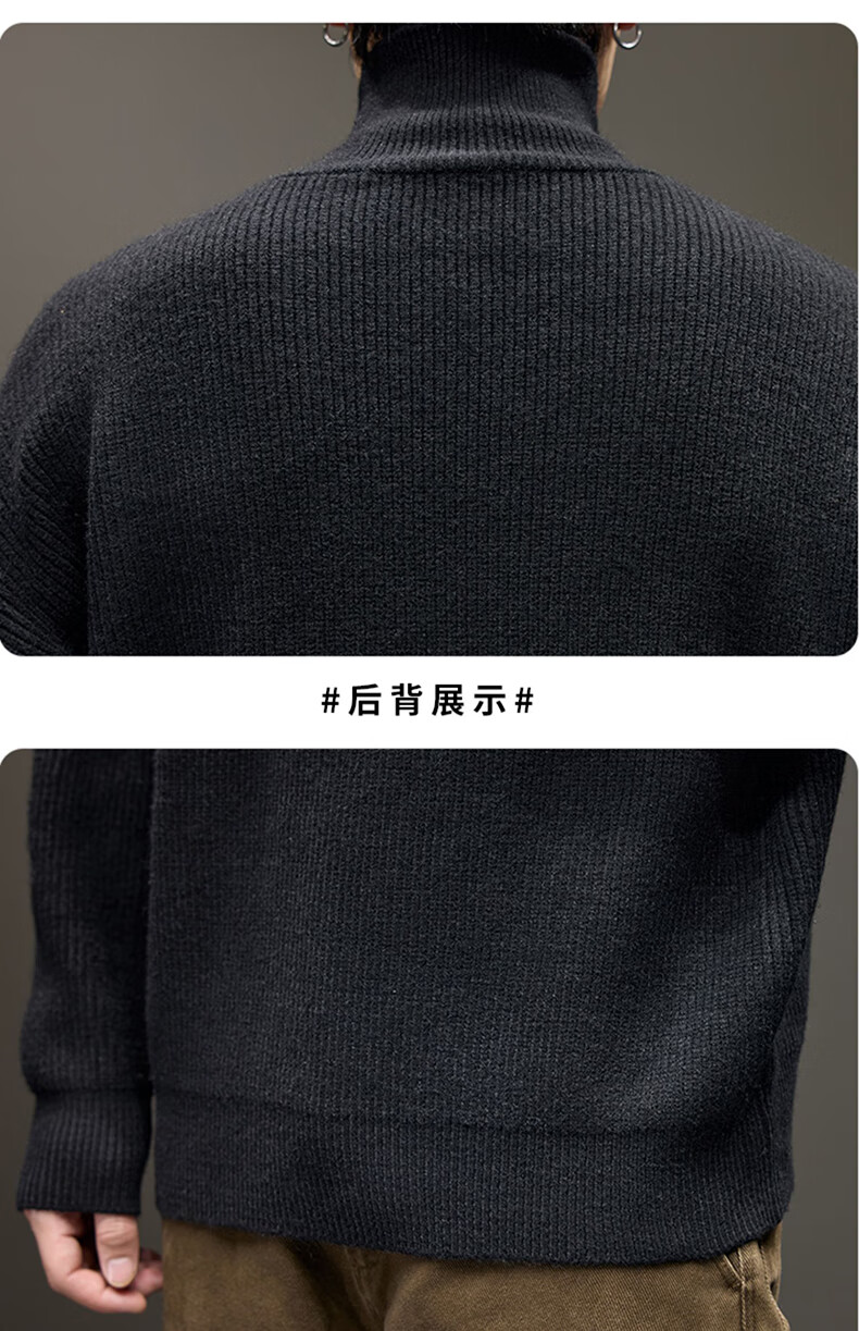 新百伦美式半高领毛衣男士秋冬季保暖针织衫宽松厚款休闲重磅外套 咖色 L 码【建议130-145斤】