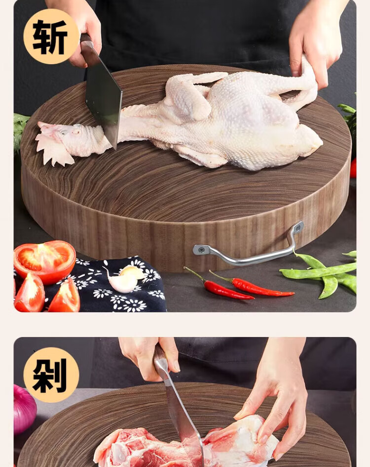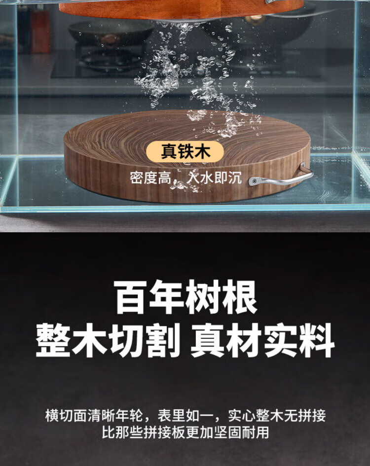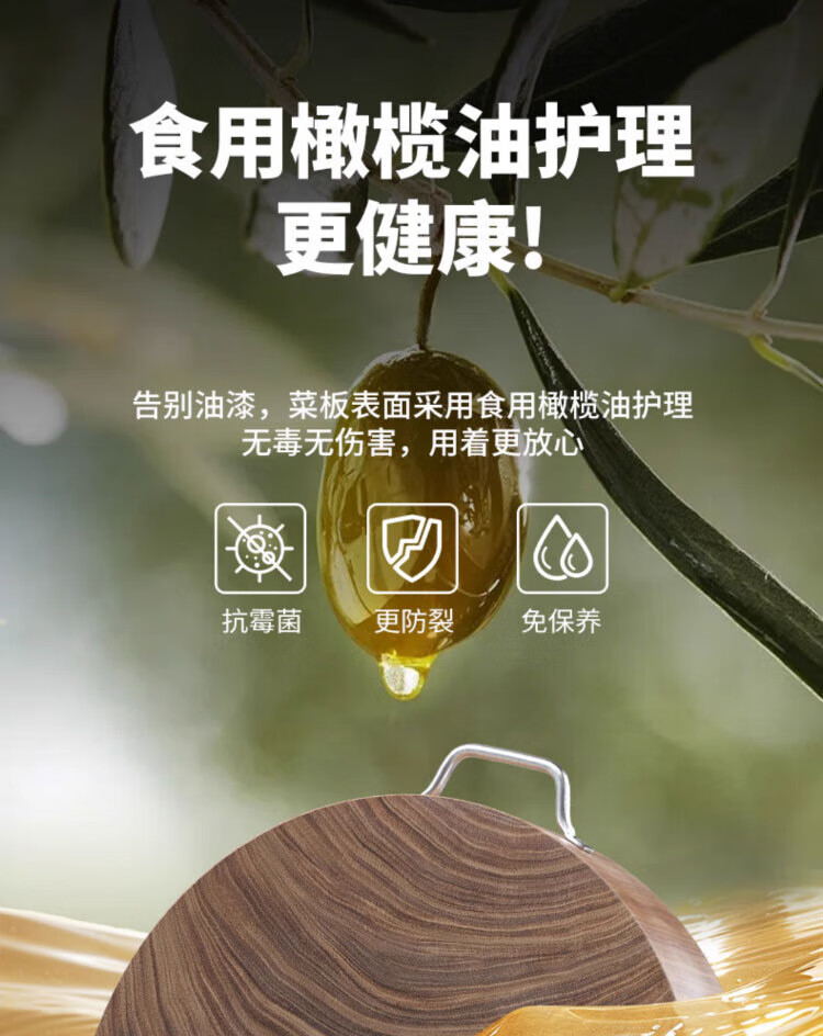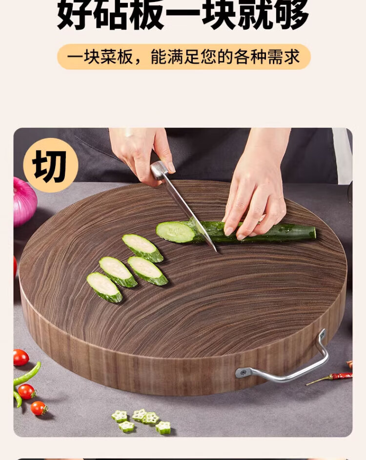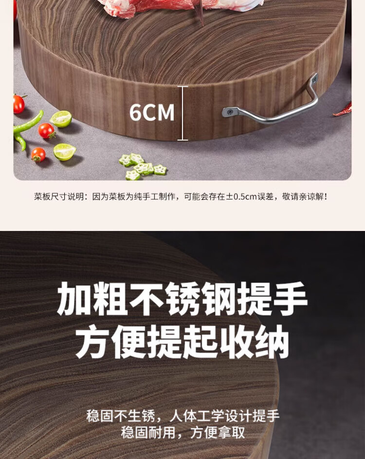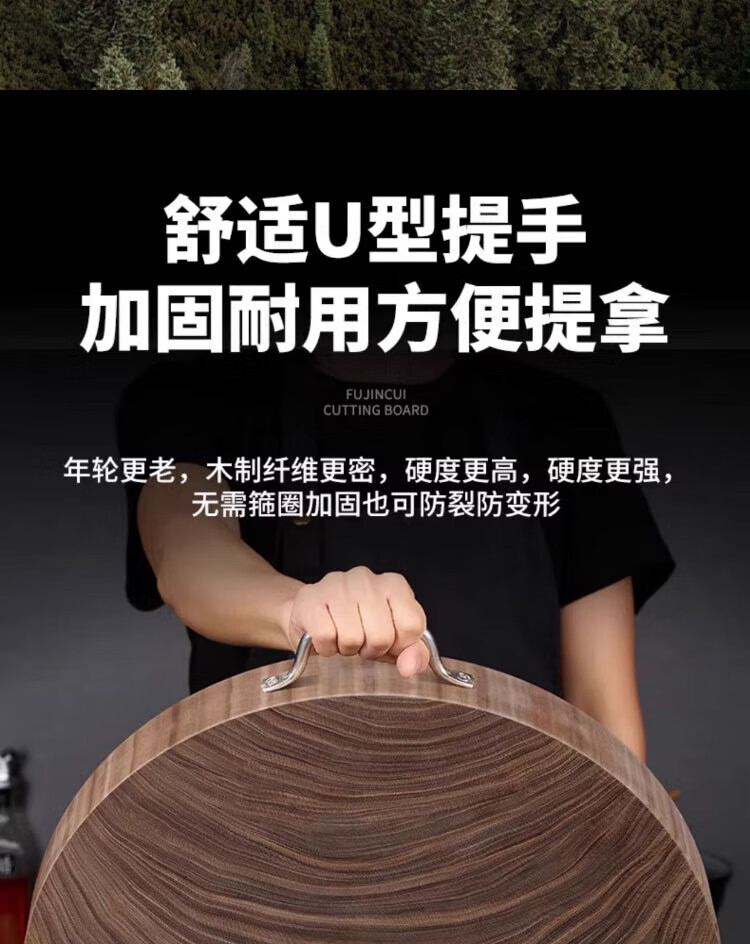 AILUKI日本整木切菜板案板防霉抗菌家用食品级实木厨房专用加厚菜墩砧板 U提手款5*36
