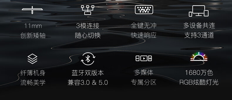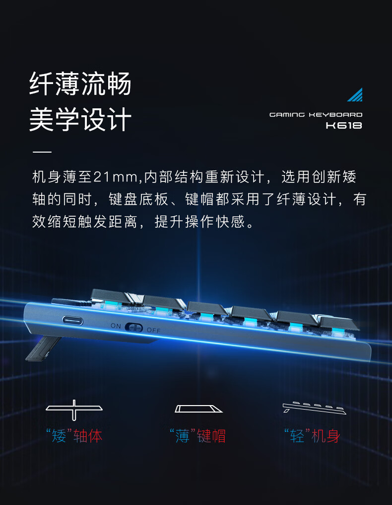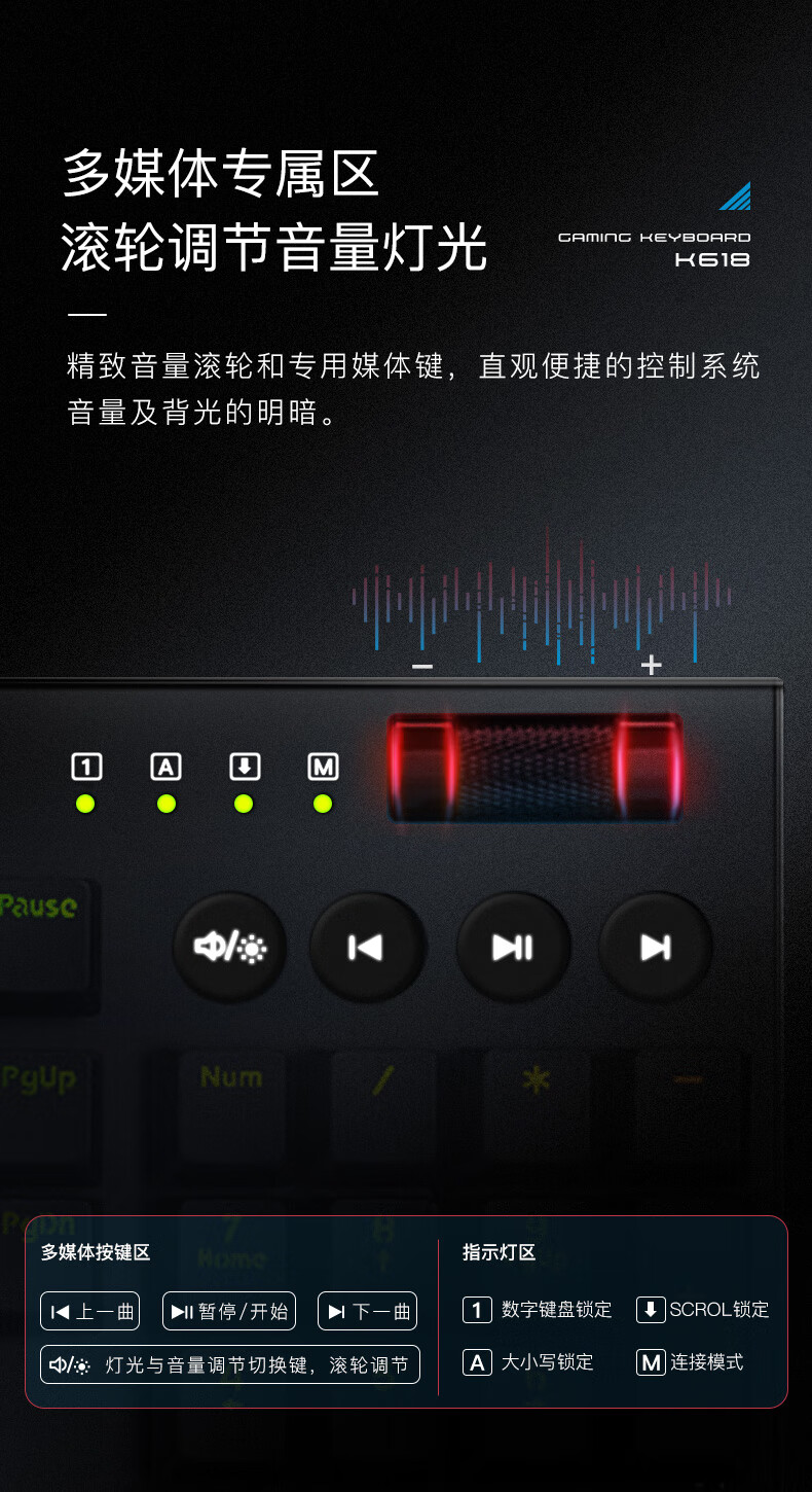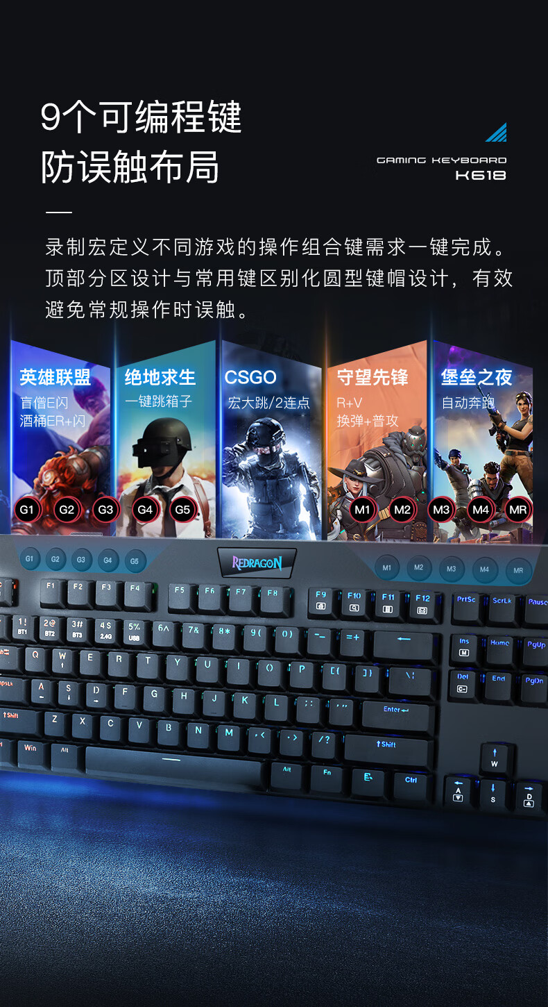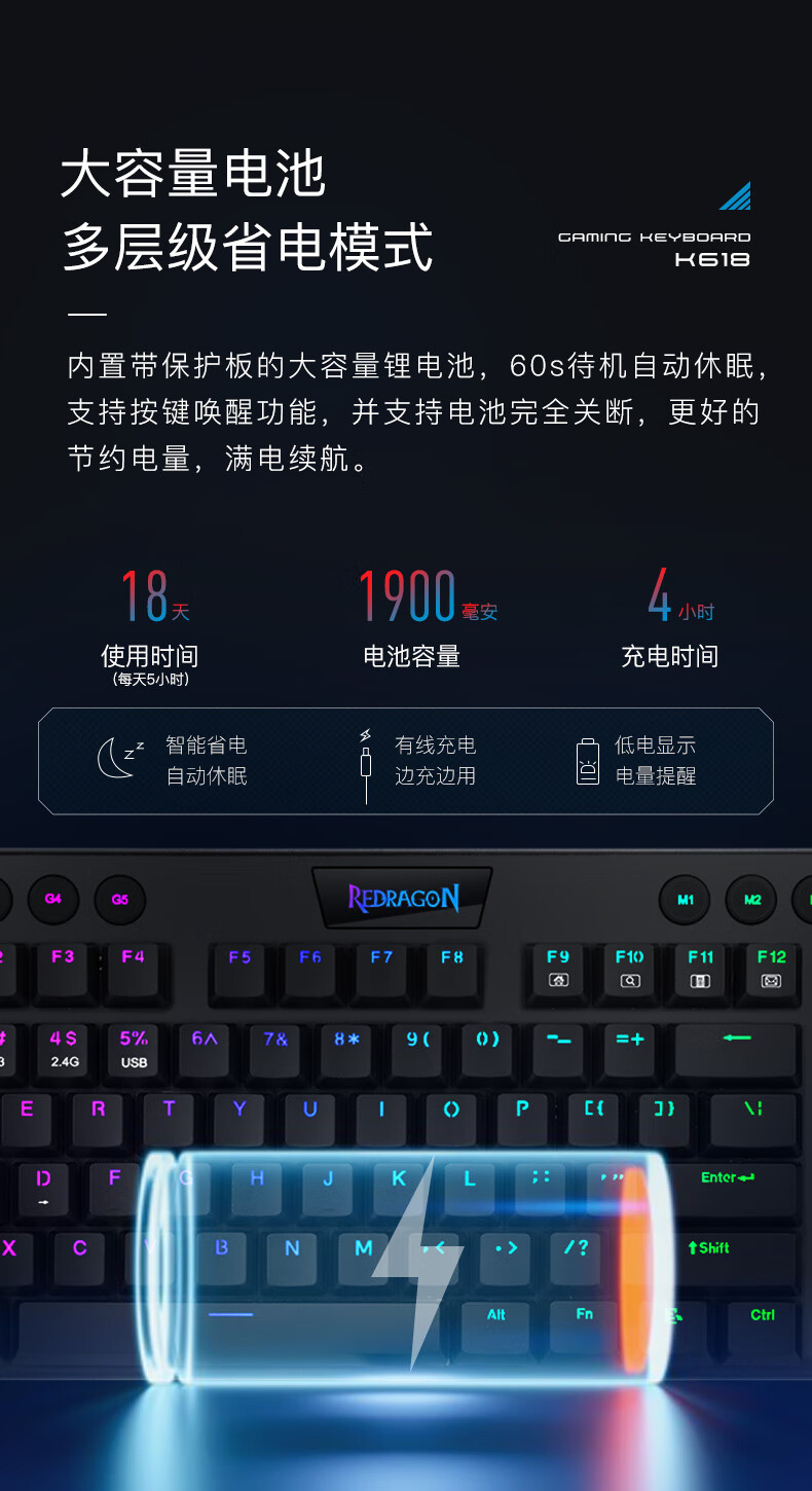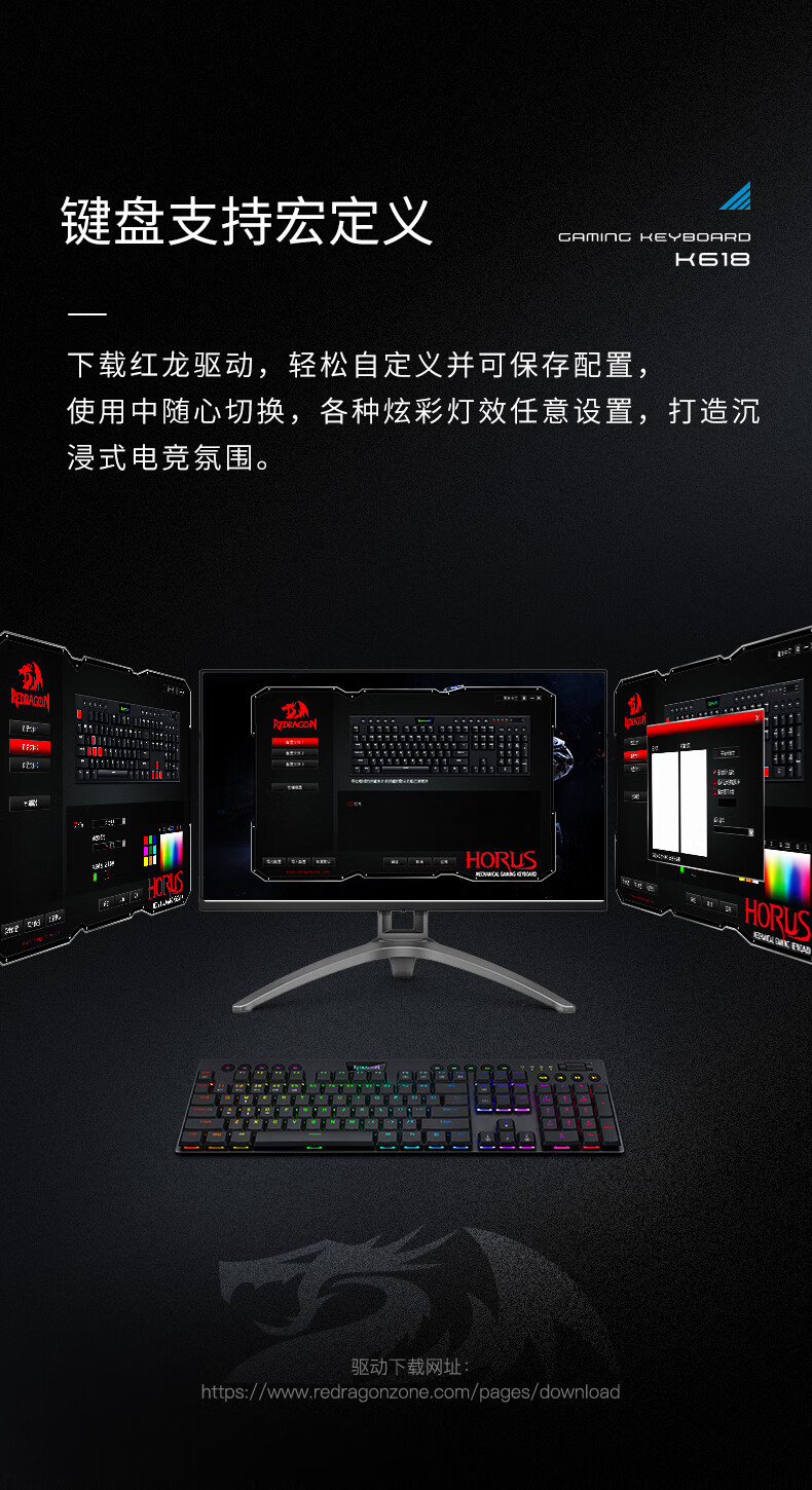 红龙(REDRAGON) 矮轴机械键盘 无线有线蓝牙三模 疾速触发全键无冲宏编辑多媒体滚轮 超薄办公游戏键盘 K621黑灰红-青轴