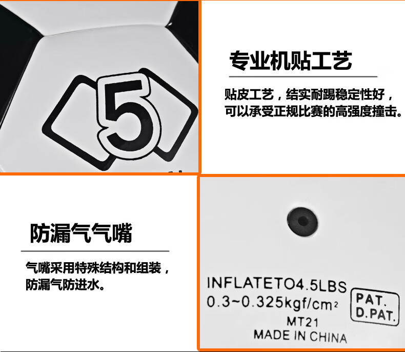 萨达 足球儿童小学生幼儿园4号专用青少年比赛训练球耐磨防滑学生5号 MBR经典黑白(4号足球)