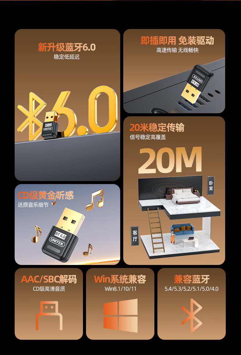 优越者 蓝牙适配器6.0 台式机usb蓝牙模块 电脑外接无线蓝牙耳机switch鼠标音响数据传输蓝牙发射接收器 【蓝牙5.4版】Win8/10/11免驱B121A