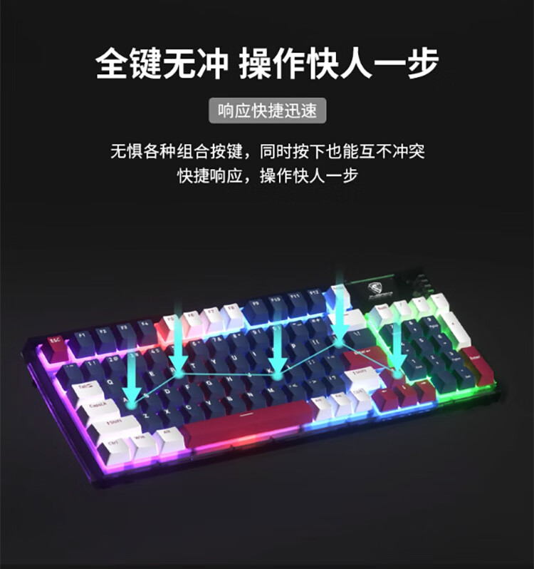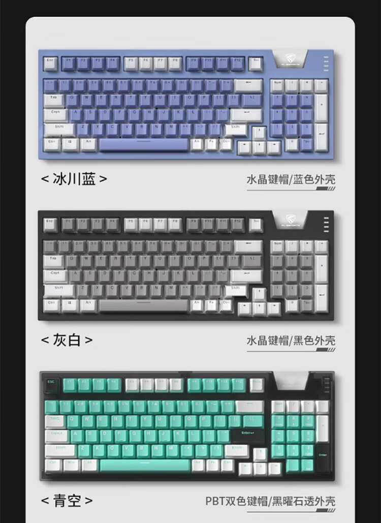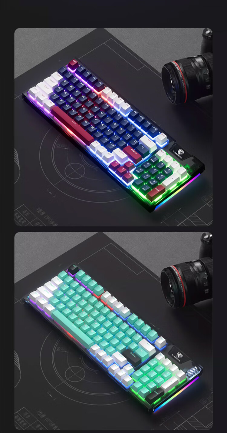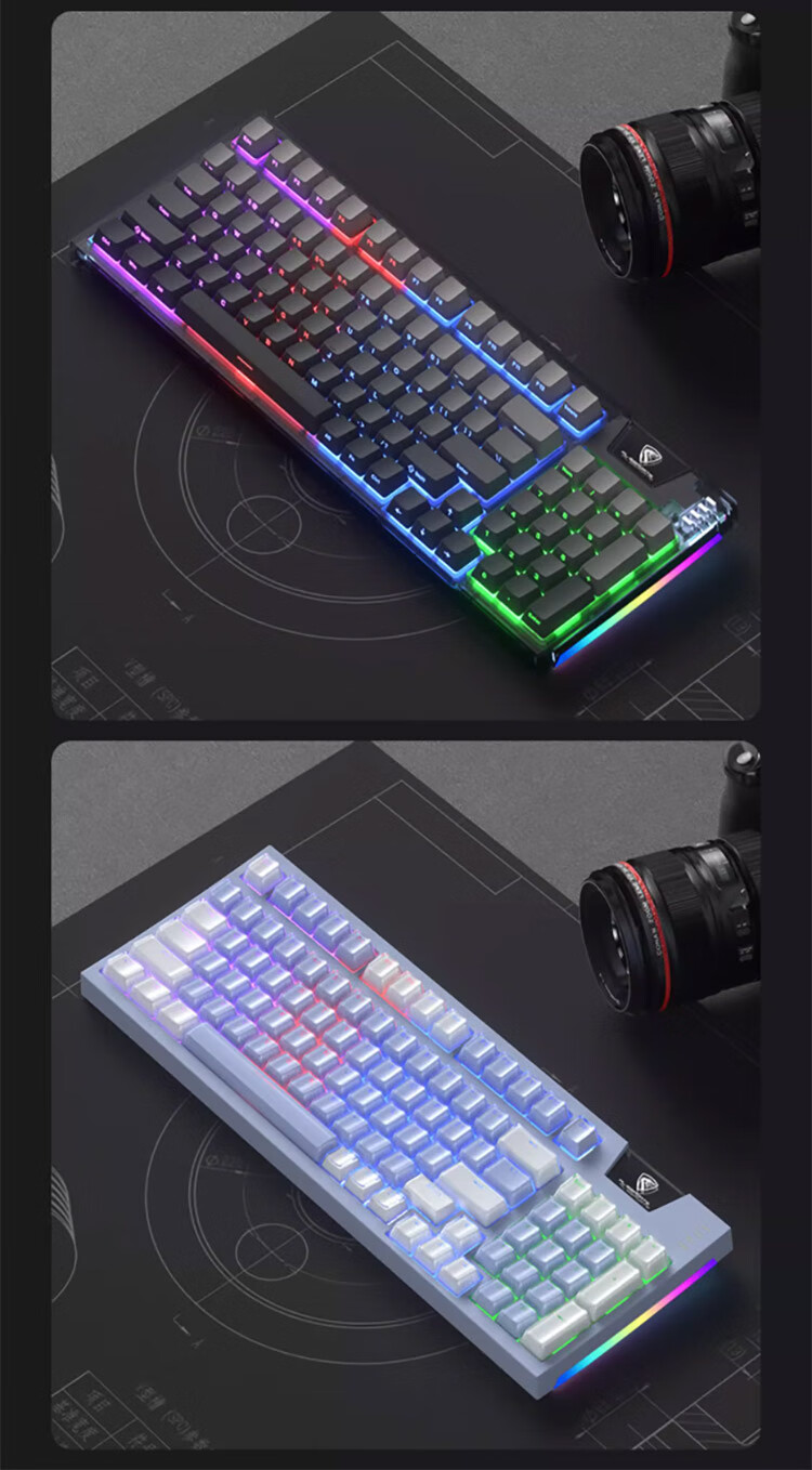 珂芝(KZZI)K98Pro无线机械键盘蓝牙有线三模游戏电竞办公键盘98键gasket客制化RGB热插拔胶坨坨麻将音 沙漠绿洲【彩虹轴】三模-游戏优选 98键