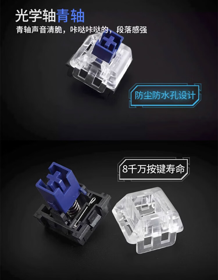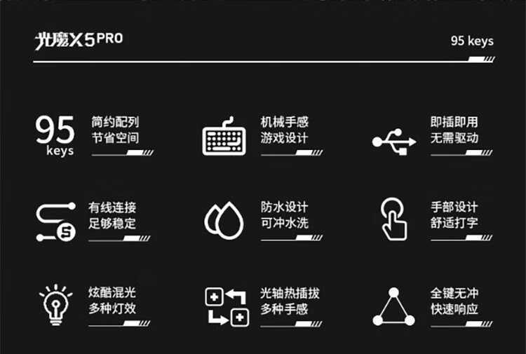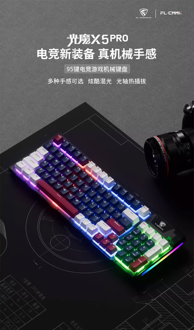 腹灵光魔X5pro机械键盘有线光轴青轴红轴防水可插拔网吧电竞游戏办公 光魔X5 PRO黑透面 机械之心 光轴青轴